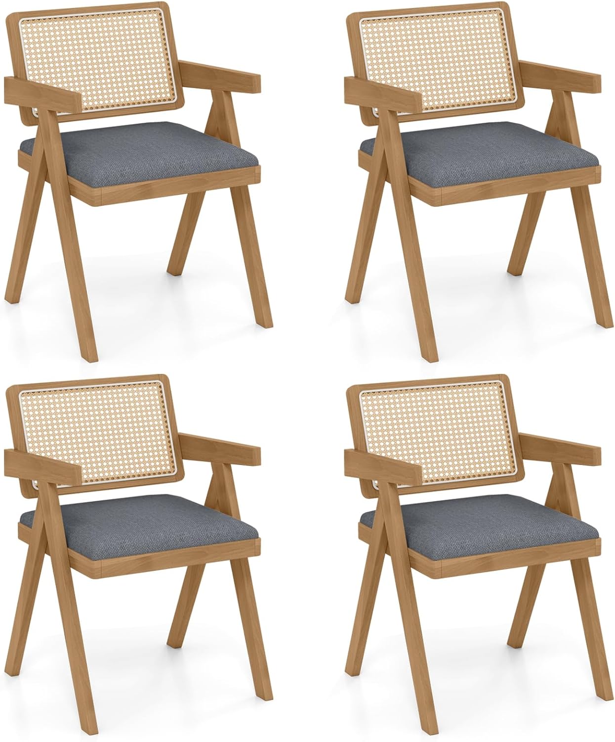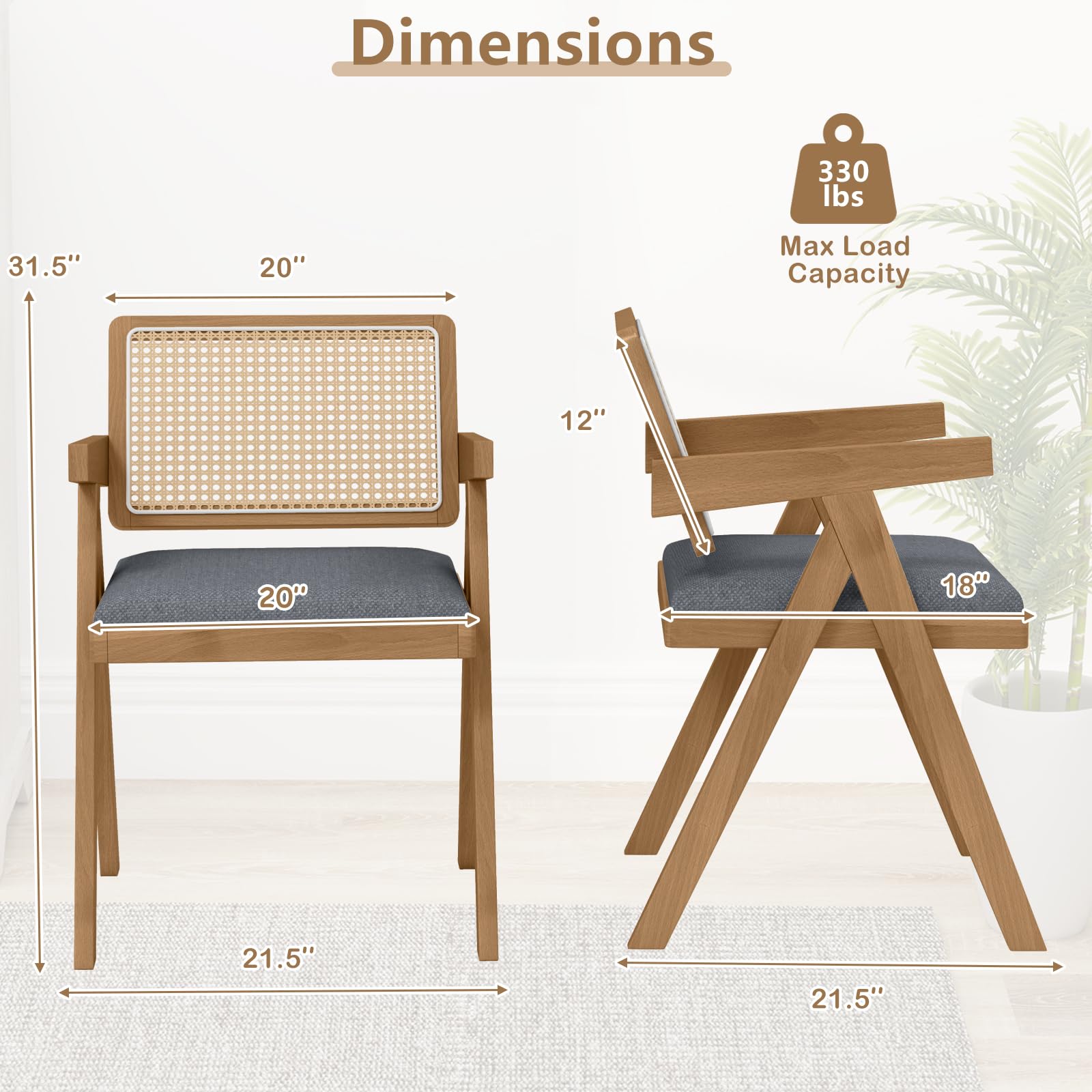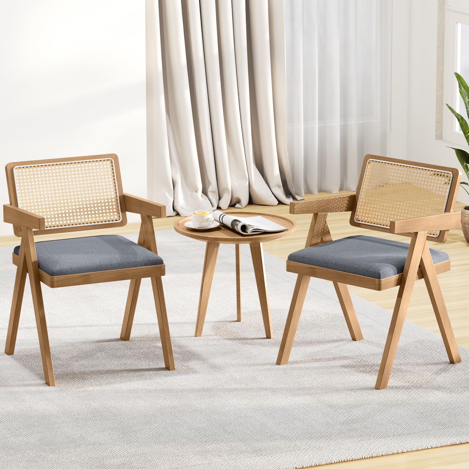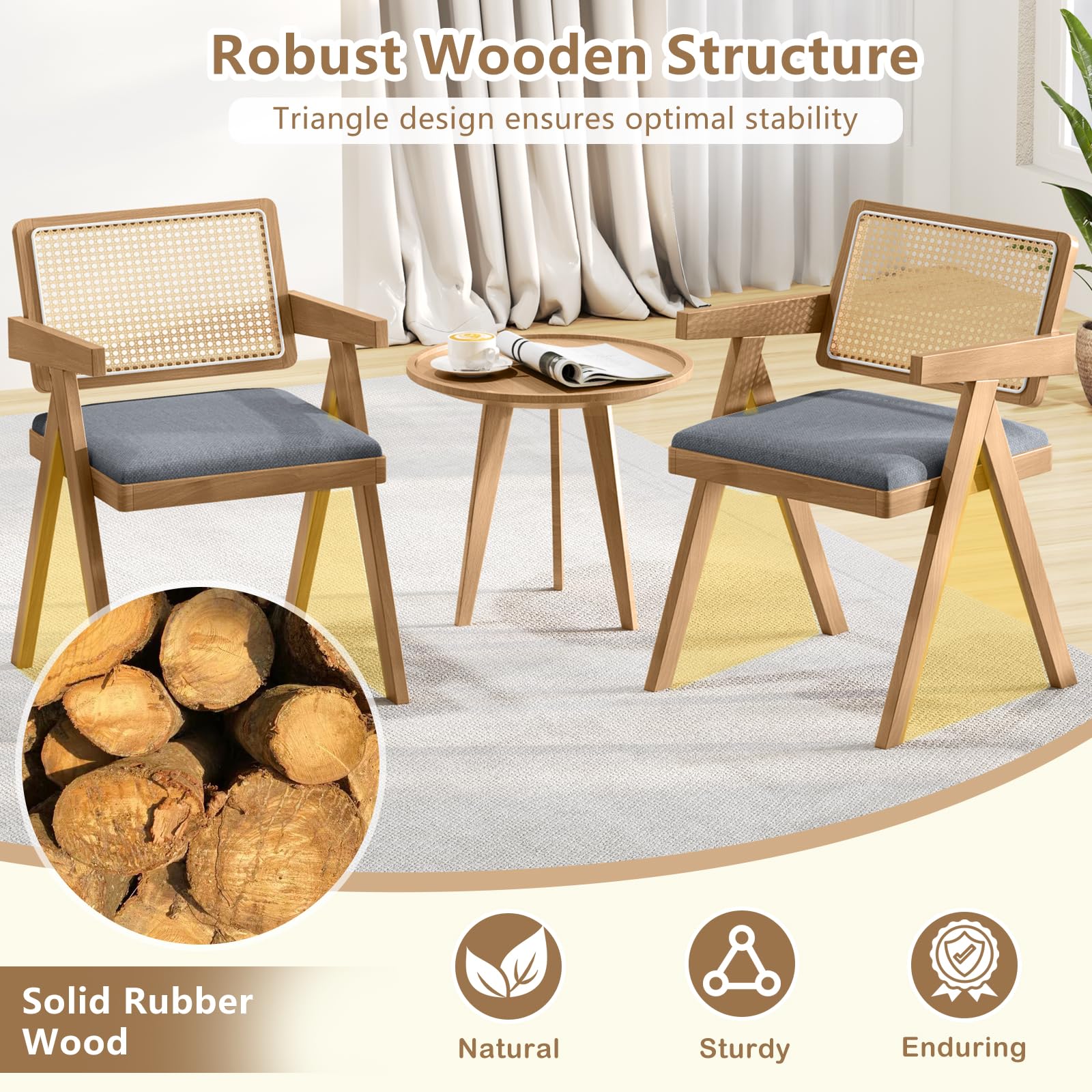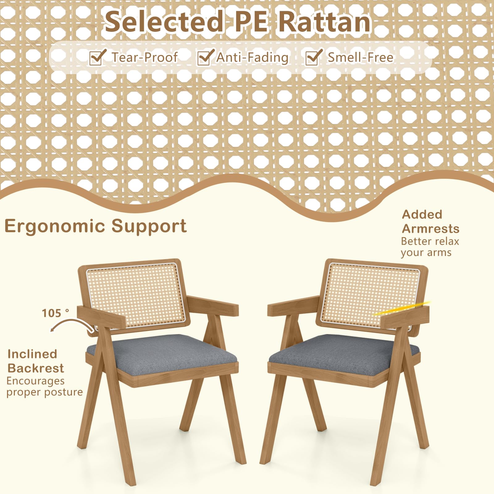 - [Refined PE Rattan]: These elegant rattan dining chairs exude a charming farmhouse vibe that effortlessly complements any decoration. Crafted from high-quality rattan, these chairs are enduring, tear-resistant, and fade-proof.