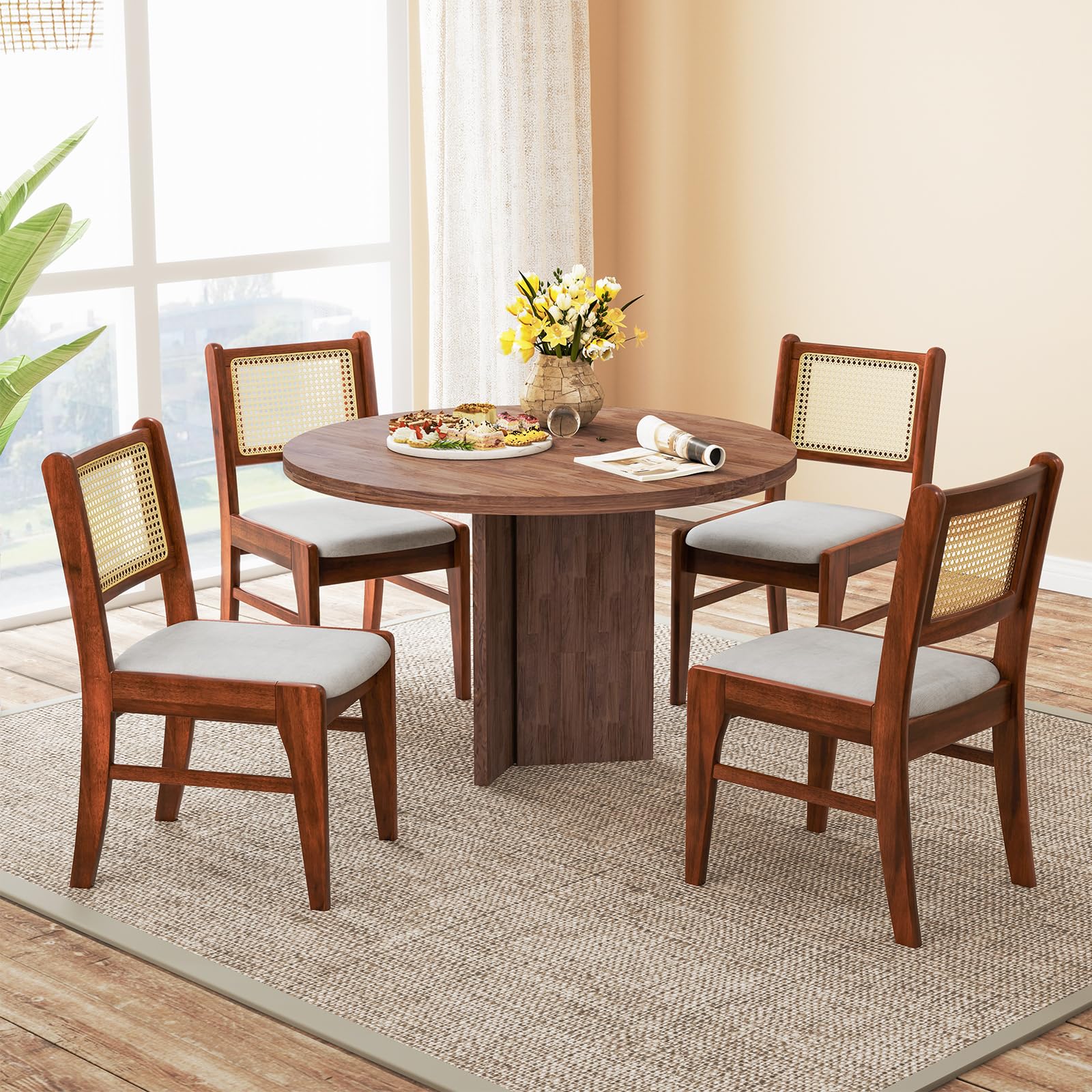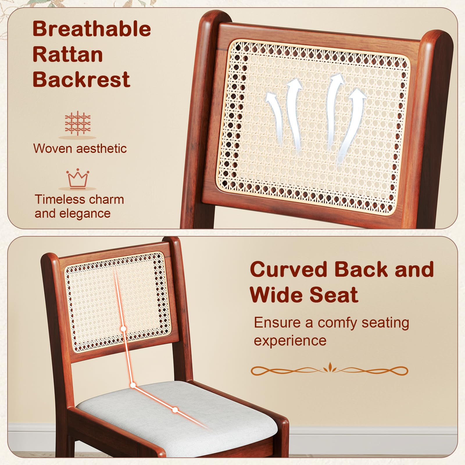 - [Exquisite Rattan Backrest]: The dining chairs boast breathable rattan backrests, keeping you comfy and cool during extended periods of sitting. And the intricate rattan pattern enhances the aesthetic appeal of the chairs, making them a stylish addition to your dining area.