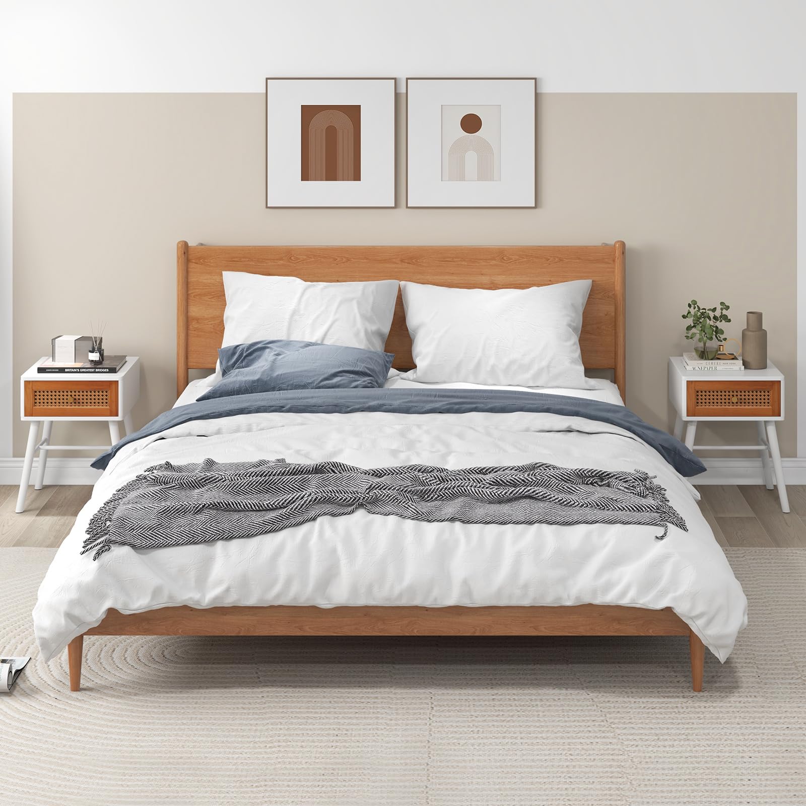 Discover the ultimate bedside companion! This rattan nightstand is here to revolutionize your sleep routine. Say goodbye to the days of searching for your remote or favorite book in the dark - our bedside table features a convenient storage drawer, bringing essentials within arm’s reach. But it doesn’t stop there! Prepare to be captivated by the natural rattan accent on the drawer front, infusing a rustic charm into the modern design. Crafted with high-quality MDF and solid pine wood, this end table is a reliable and sturdy addition to your bedroom. Its mid-century design radiates sophistication, making it a stunning focal point in any room. Embrace elegance with our nightstand!