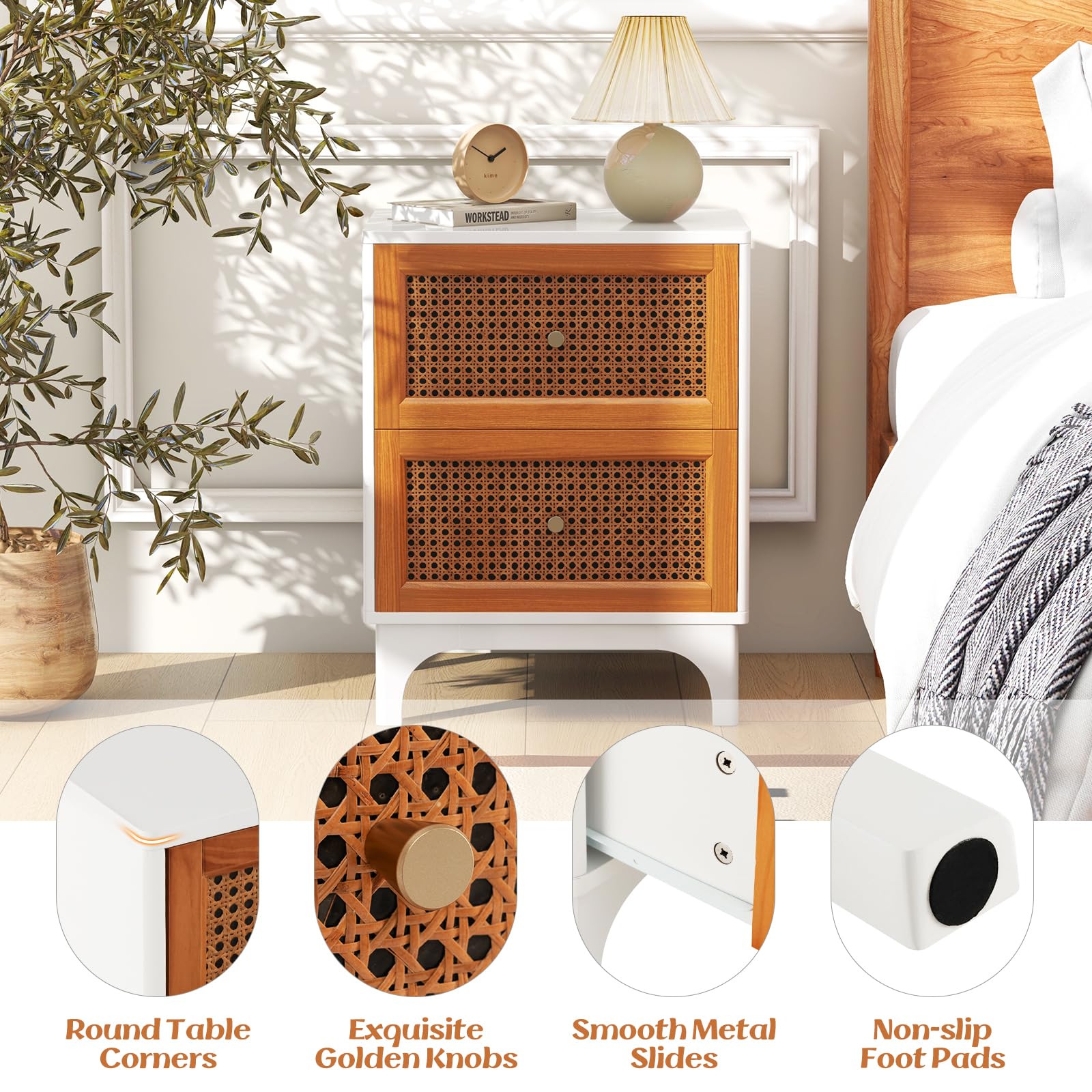 - Stylish Boho Design: Enhance your bedroom decoration with the nightstand, the unique blend of a Boho design and exquisite craftsmanship. Handcrafted natural rattan panels decorate the drawer fronts, combined with gold-tone knobs for an elegant touch.
