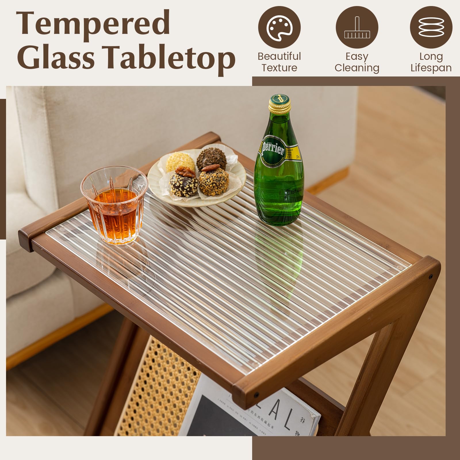 • Sturdy & Durable Construction: Constructed with a tempered glass tabletop and a Z-shaped high-strength bamboo frame, this end table is built to withstand everyday use and provide a stable surface for your items.