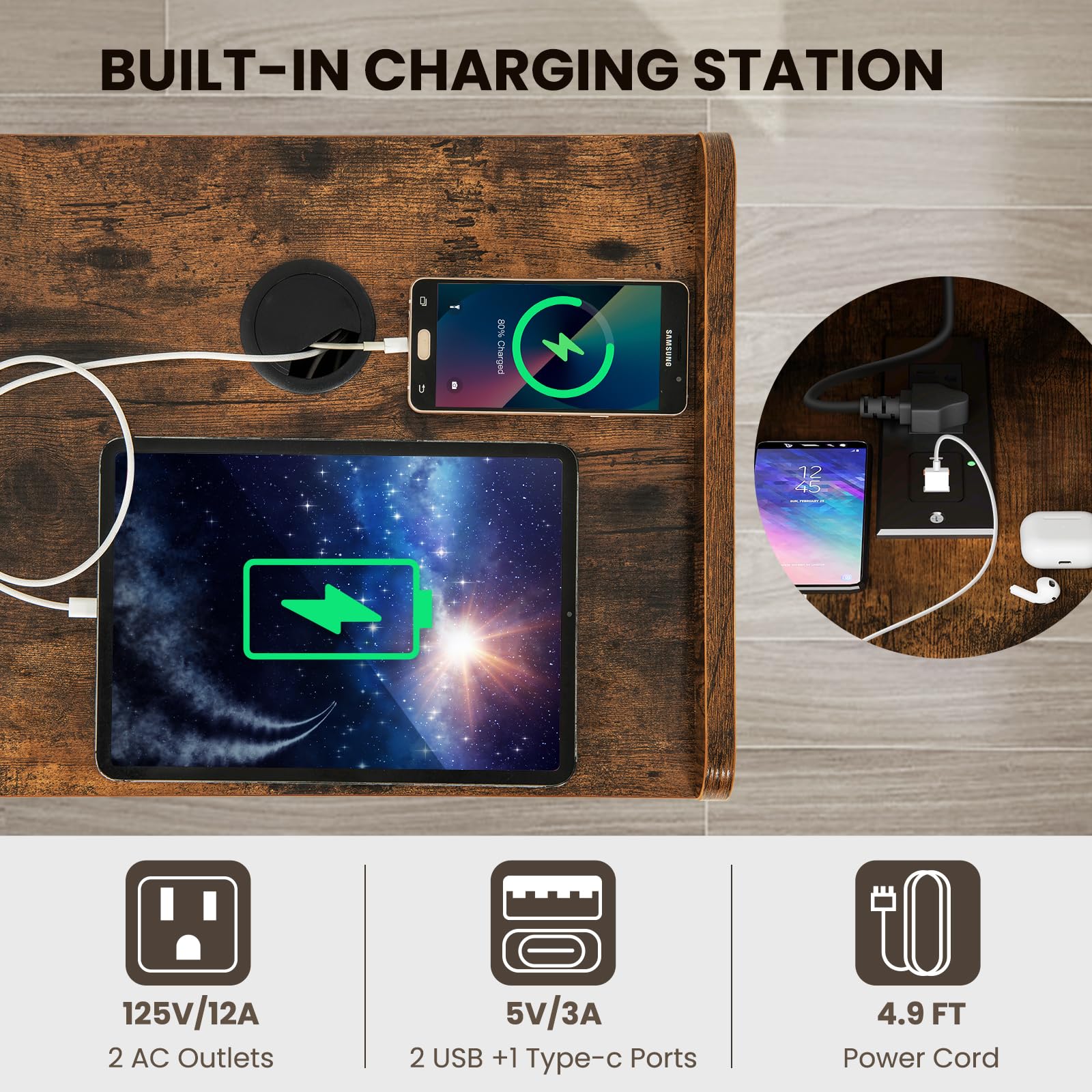 • Convenient Charging: Enjoy your music time at home conveniently with our built-in charging station. Easily power up your electronic devices, including your record player and other music equipment, using the 2 AC outlets, 2 USB ports, Type-C port, and power cord provided. With cable management holes included, you can keep your cables organized, ensuring a hassle-free charging experience.