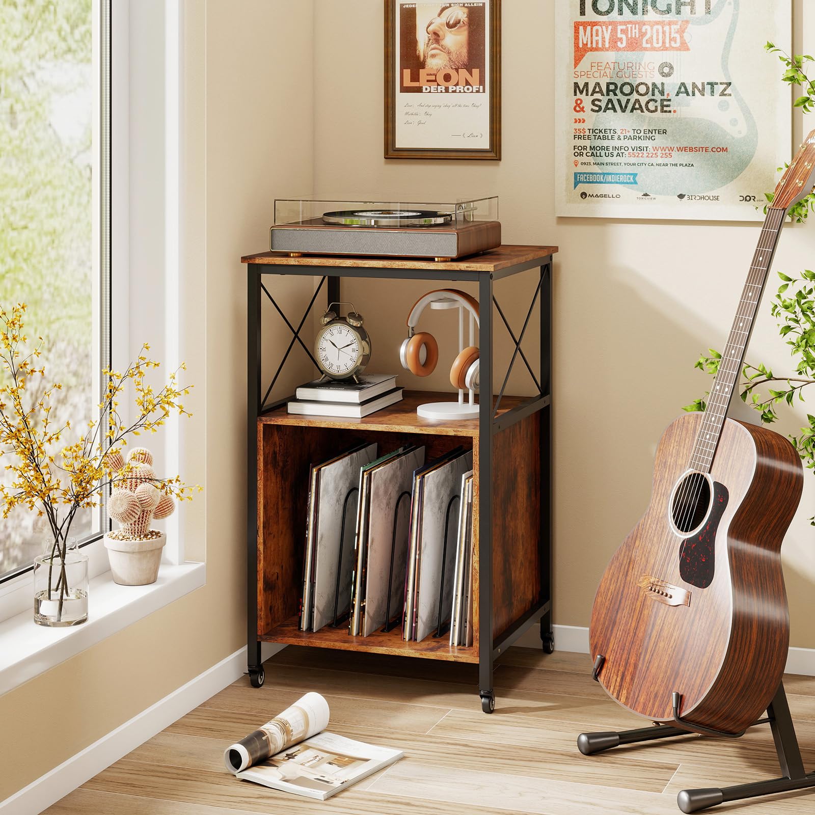 Serves as a turntable stand or 3-tier side table in the living room, bedroom