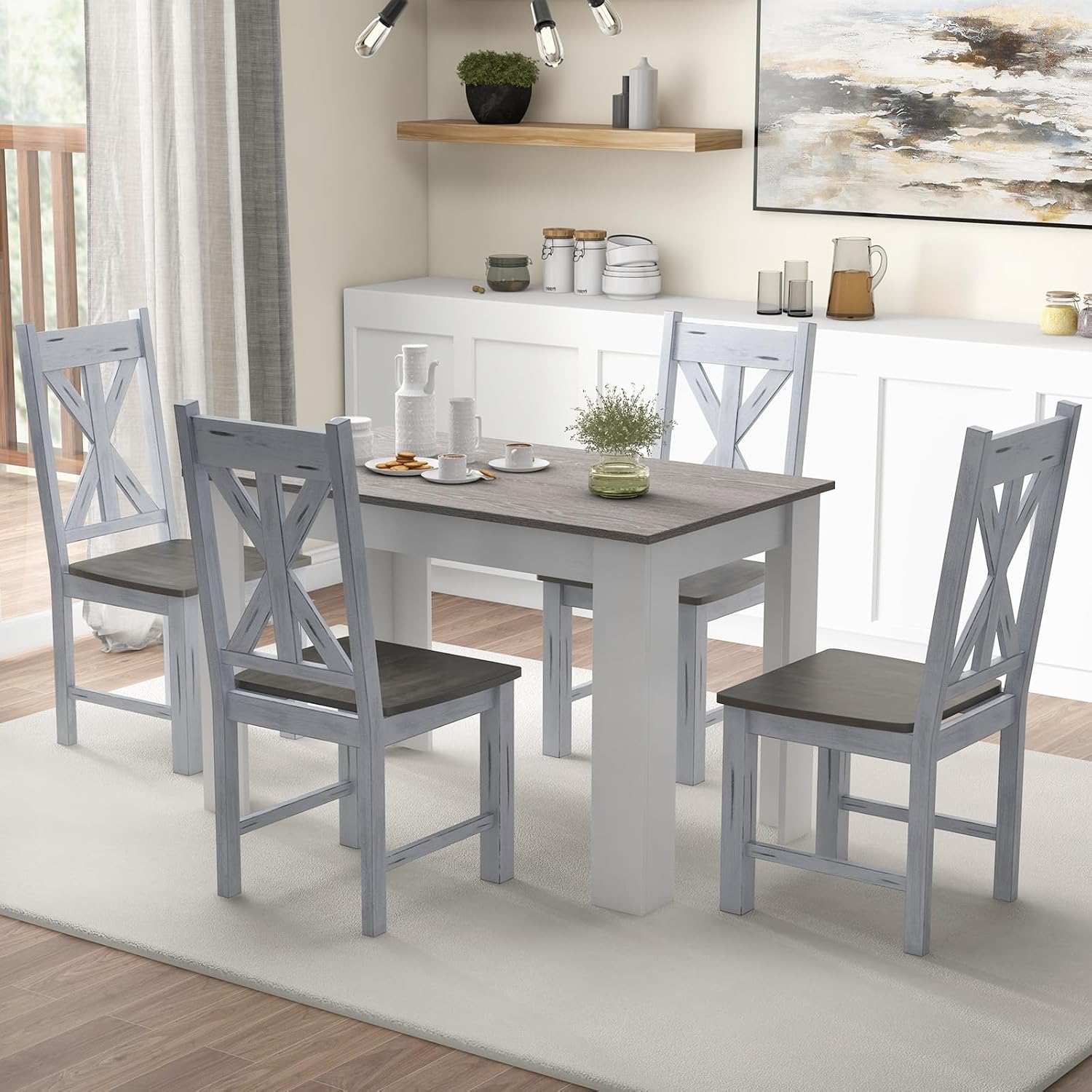 [Natural Rubber Wood Frame: Crafted from natural rubber wood, these dining chairs boast a sturdy construction for long-lasting quality. The elegant wooden frame adds a touch of sophistication to your space while providing dependable support.