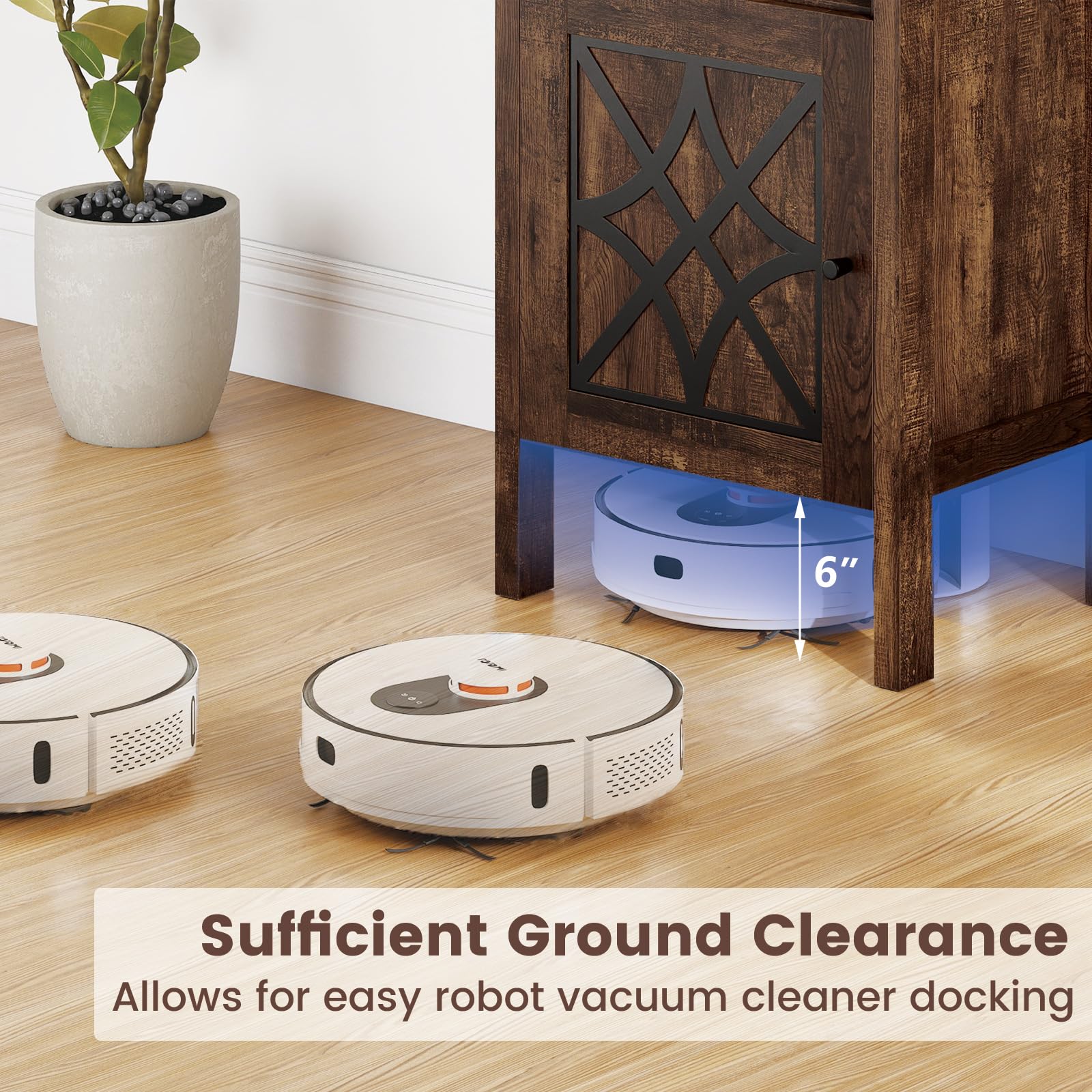 This smart storage cabinet welcomes your robot vacuum into its own hidden garage, where it can charge out of sight yet always be ready to clean. On top and below, you’ll find plenty of room for books, throws, remotes, or decorative items, so everything has its place. We made it flexible, too. The door can be set to open from the left or right, fitting perfectly into your space—no matter the layout. And with a sturdy build that holds up to 165 lbs, plus anti-tip and anti-scratch features, it’s as safe as it is solid. Wrapped in a soft, farmhouse-inspired design, this cabinet easily blends into your living room, bedroom, or home office.
