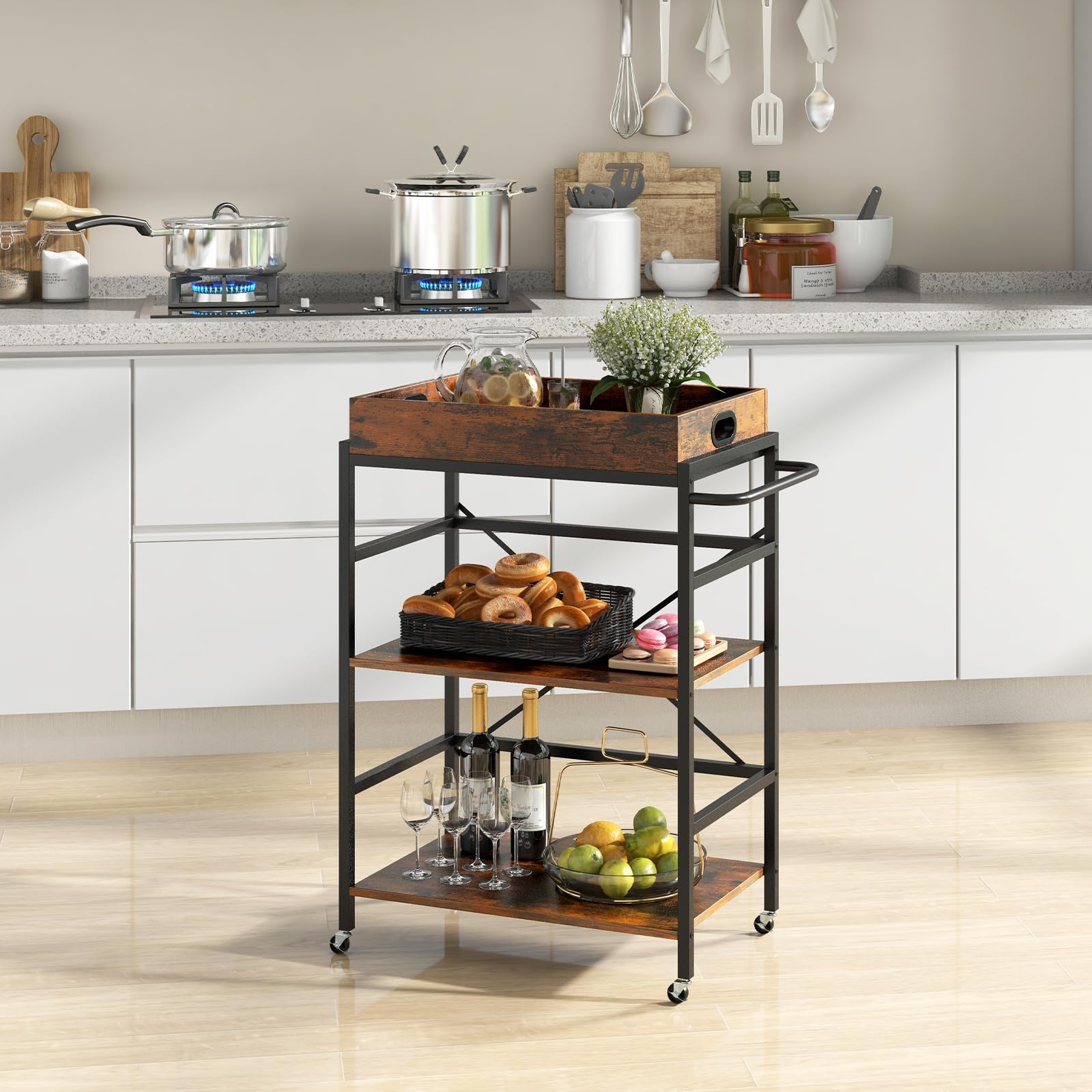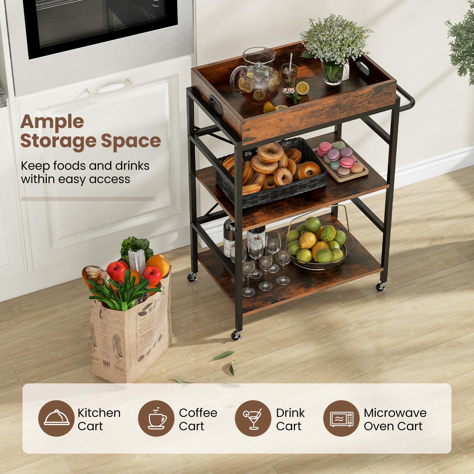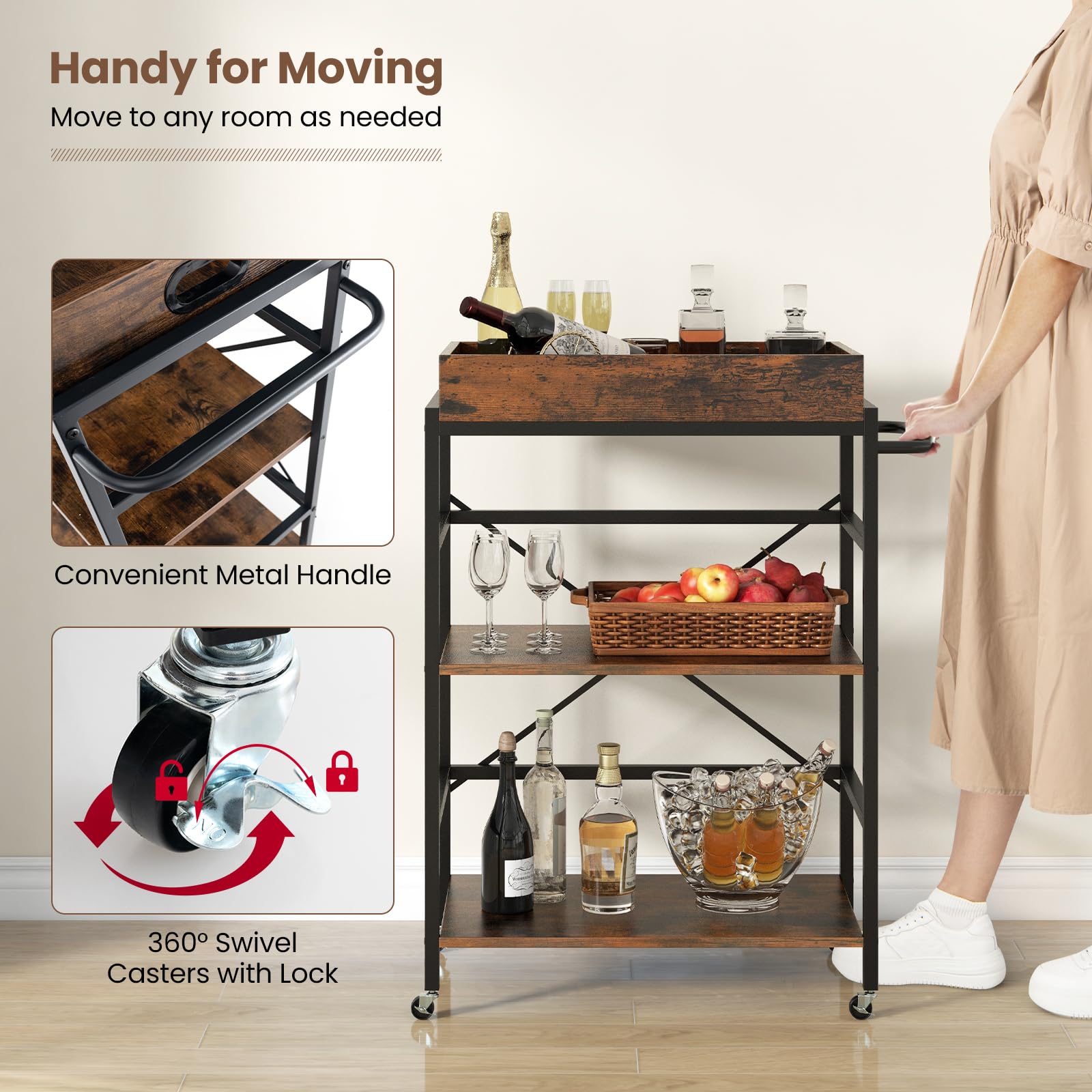 - [Versatile Storage Solutions]: With 3-tier open storage, our bar serving cart provides ample storage space for various items and allows you to keep foods and drinks within easy access. It is an ideal choice for use as a kitchen cart, coffee cart, drink cart, or microwave oven cart.