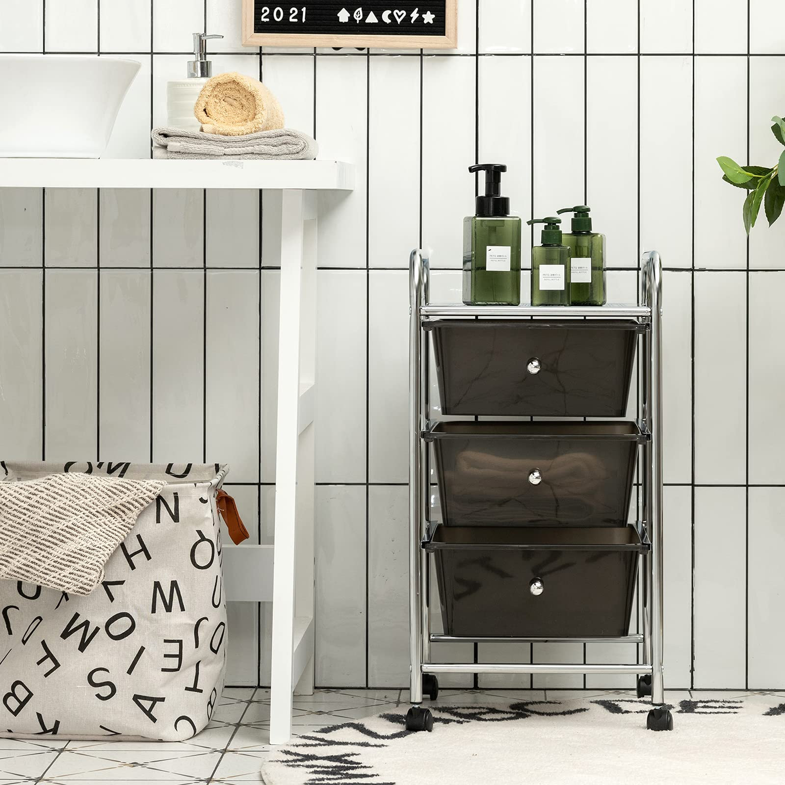 - Home, Office or School Use : This practical drawer trolley offers you a great solution to organize your stuff better. It can be used to arrange stationery in your study, cosmetics in bedroom or supplies in kitchen, office, living room or barbershop.