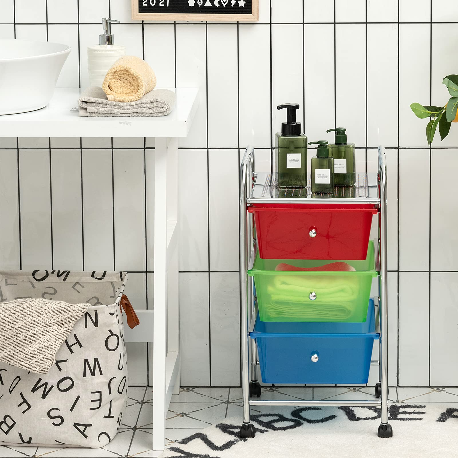 - Spacious Storage Room : The size of each drawer is 11.3" x 14.2" x 4.7"(W x L x D). 3 drawers in one or more colors provide you with much more room for organizing papers, kitchen tools, toys and home office supplies. Compact size also makes it suitable for corners, which helps you save room space.