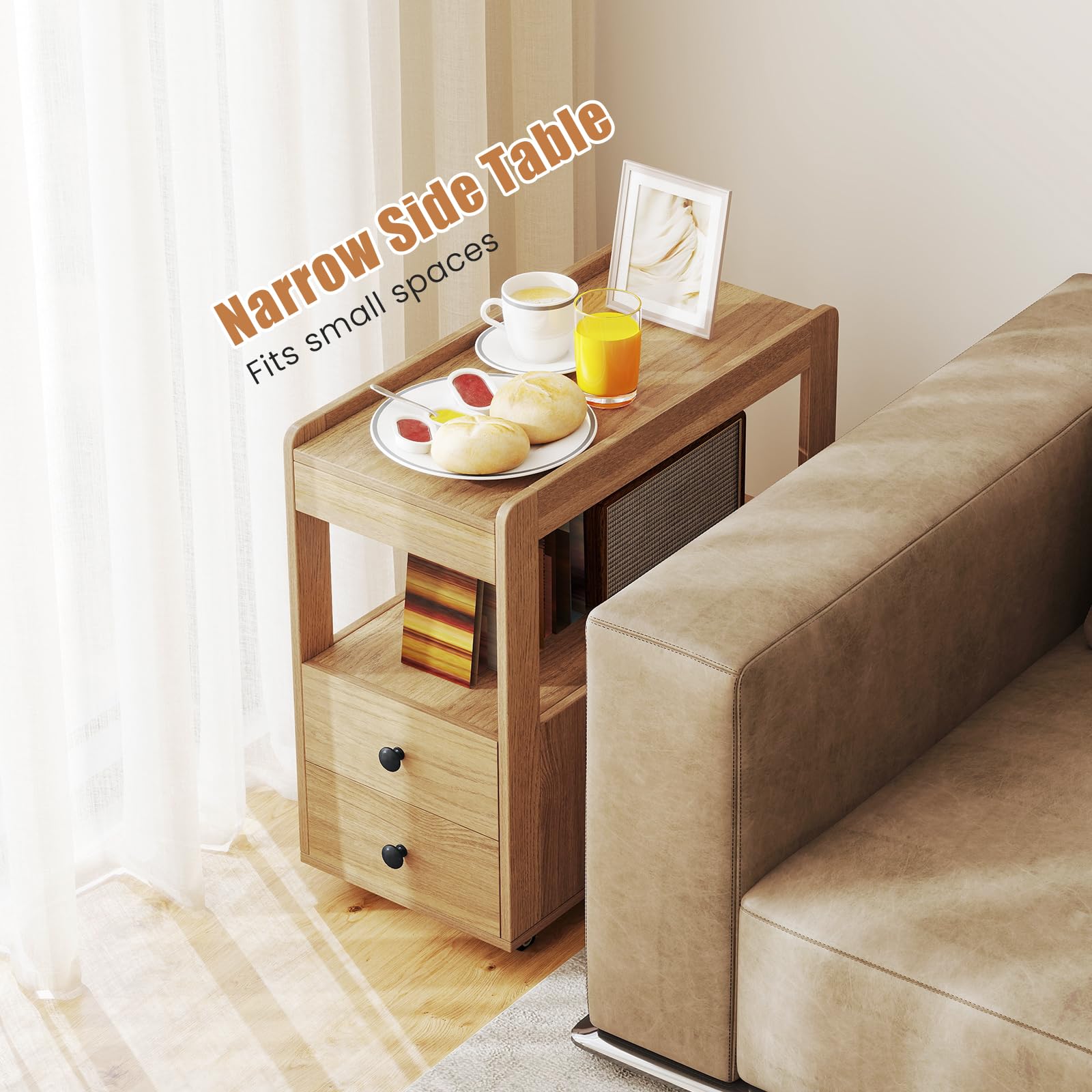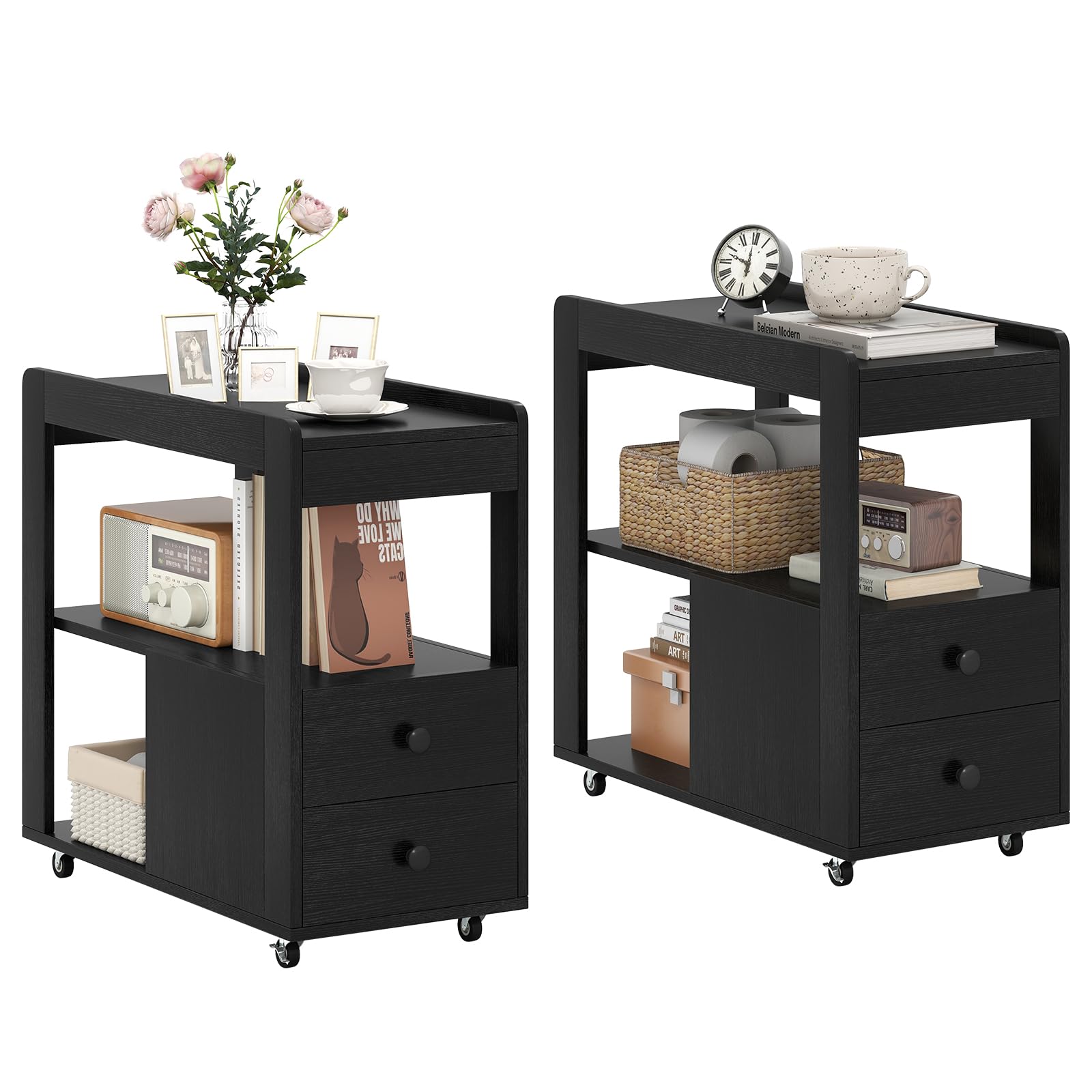 Revolutionize your space with our sleek, lockable end table on wheels! Maximize storage with this stylish 3-tier, 2-drawer table, designed to glide effortlessly into tight corners or alongside your sofa. Lock it in place for a sturdy, spill-free setup. This piece isn't just functional - its strong build and easy-clean finish ensure enduring beauty, making it a smart addition to any busy home. With raised edges and round corners, it's as safe as it is chic. Perfect for small spaces but spacious enough for all your essentials—upgrade your living room, bedroom, or office today with this must-have mobile solution!