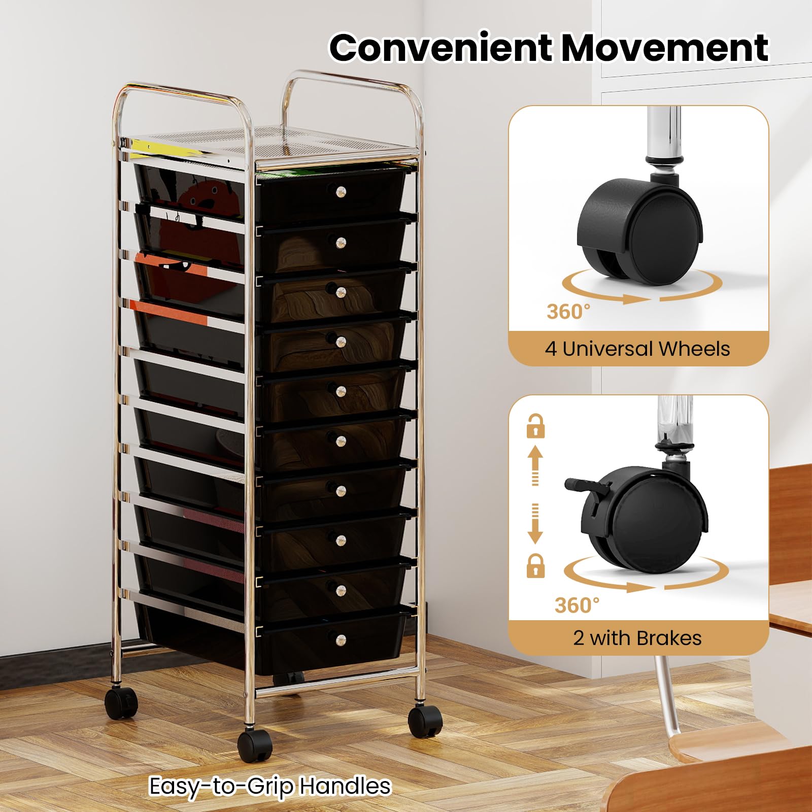 Elevate your storage and organization with this sleek 10-drawer rolling cart.