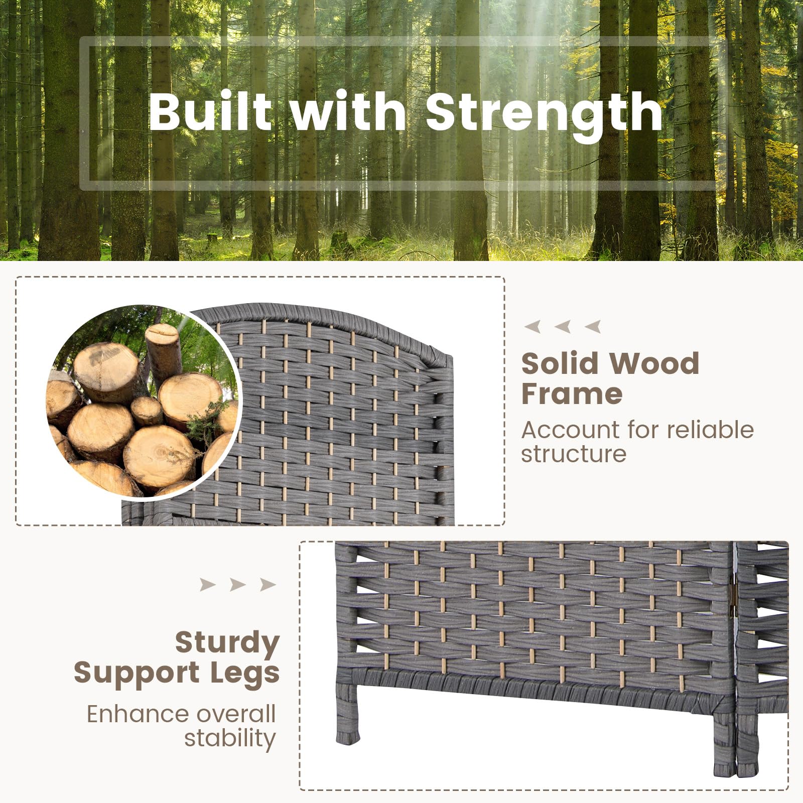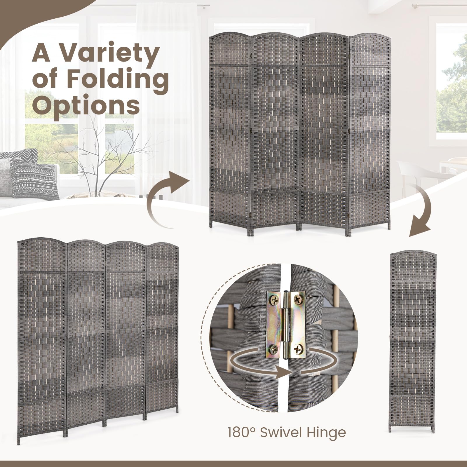 The intricate hand-woven texture lends a natural and earthy vibe to any room. Whether you want to create a designated area in your living room, bedroom, office, or even patio, this tall partition screen is a versatile solution. Crafted of solid wood frame, this privacy screen exudes durability and long-lasting use. Besides, the swivel hinges are flexible to fold the panels to any direction or shape. Its lightweight and foldable design allows for easy storage. Fully assembled and ready to use, this room divider offers much convenience.