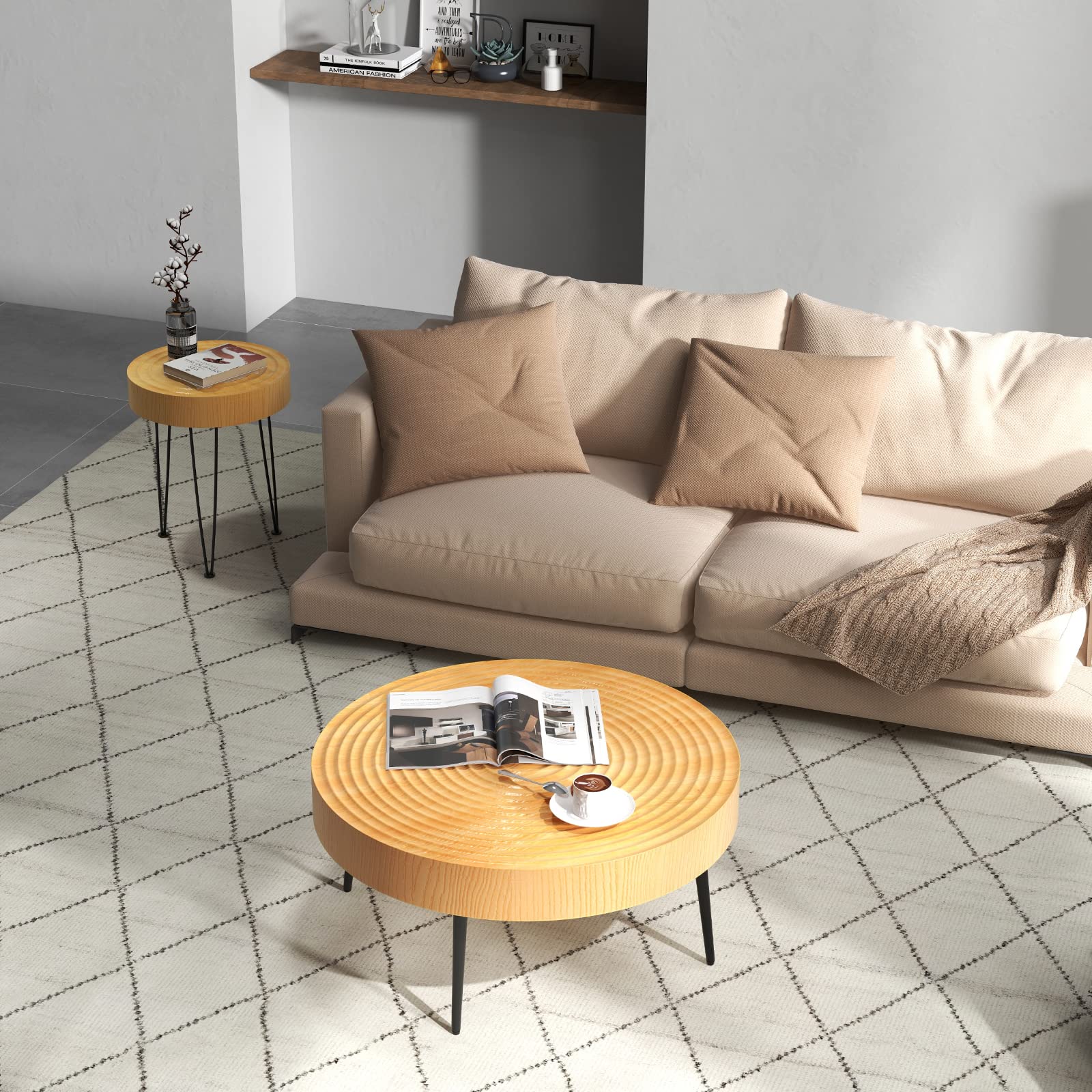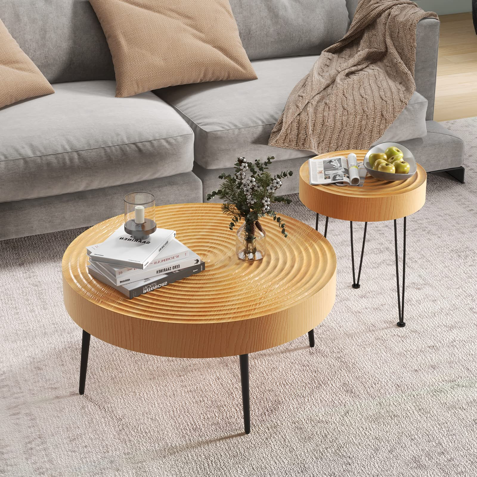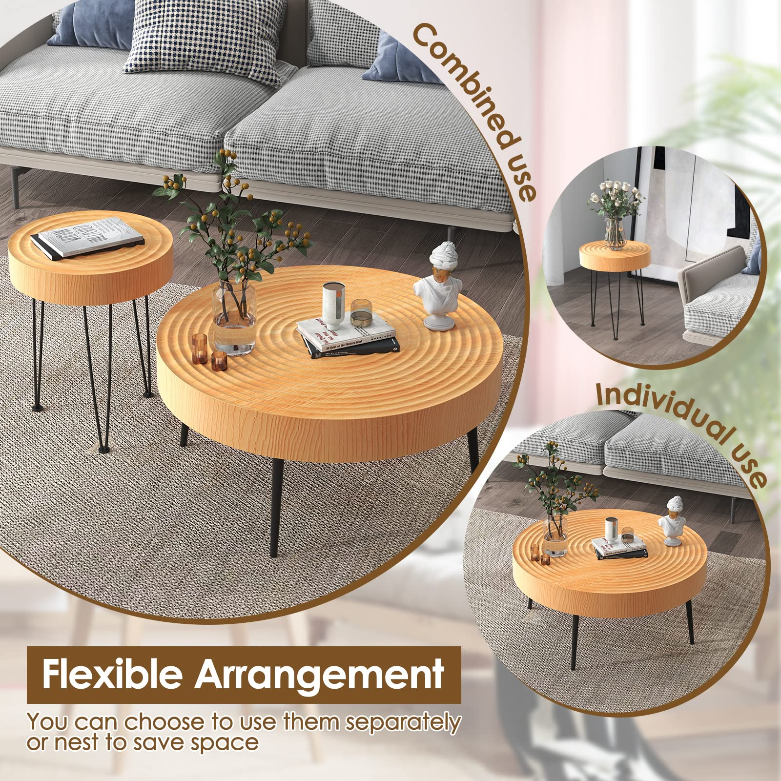 - Practical Nesting Coffee Table Set: Our 2-piece coffee table set includes 1 large round coffee table and 1 small side table, which you can place together or separately. The versatile combination allows for a flexible furniture arrangement: you get not only a coffee table but also a side table or a bedside table.