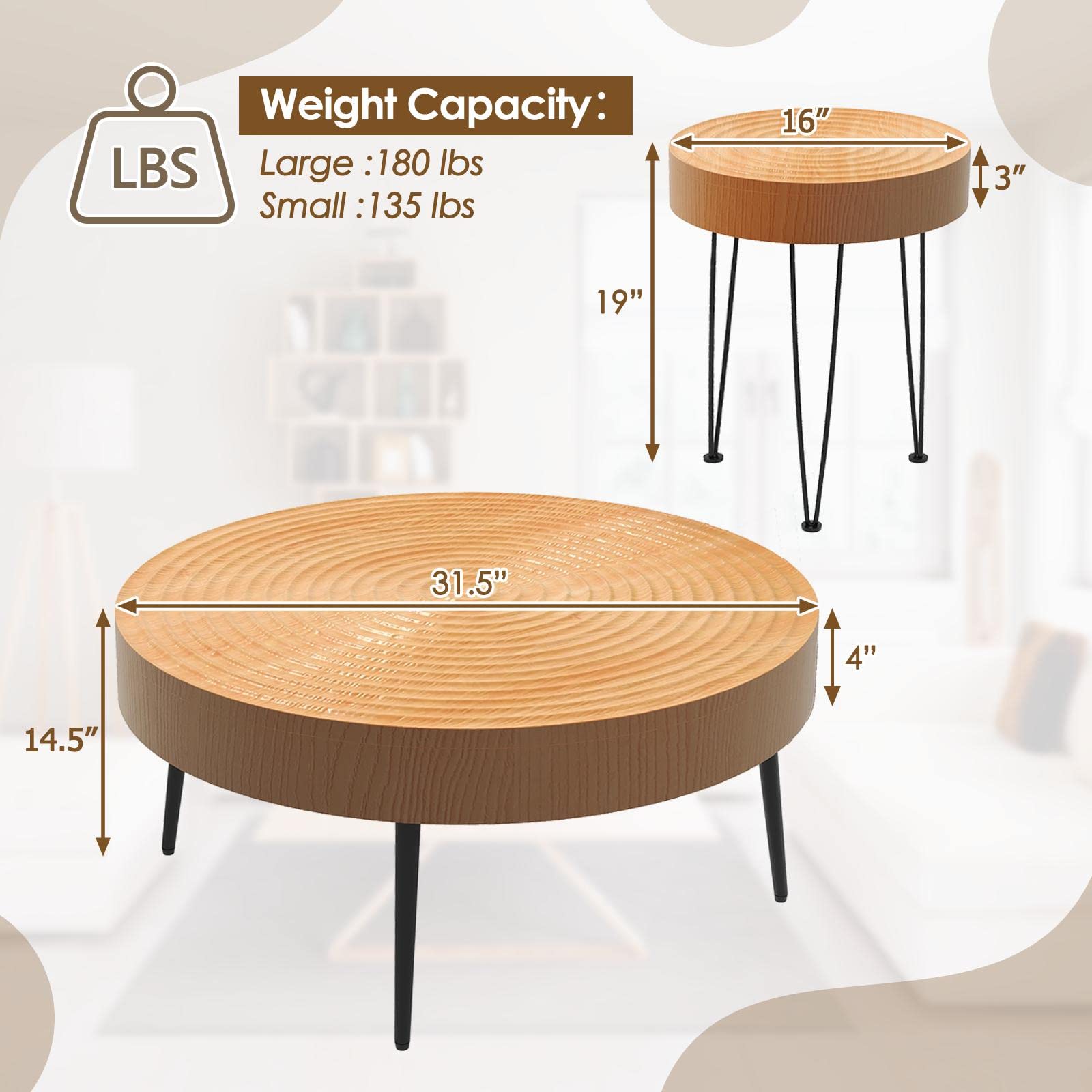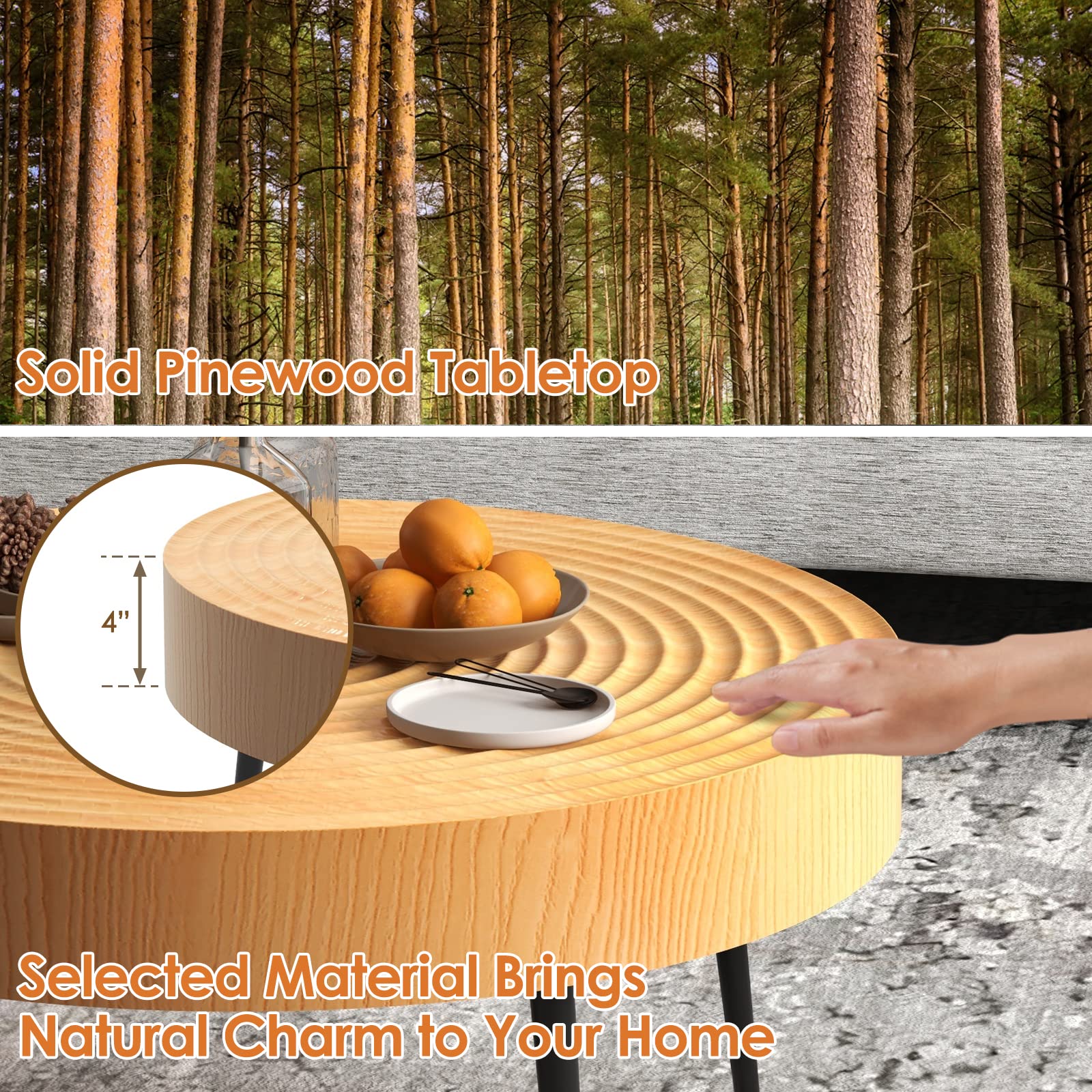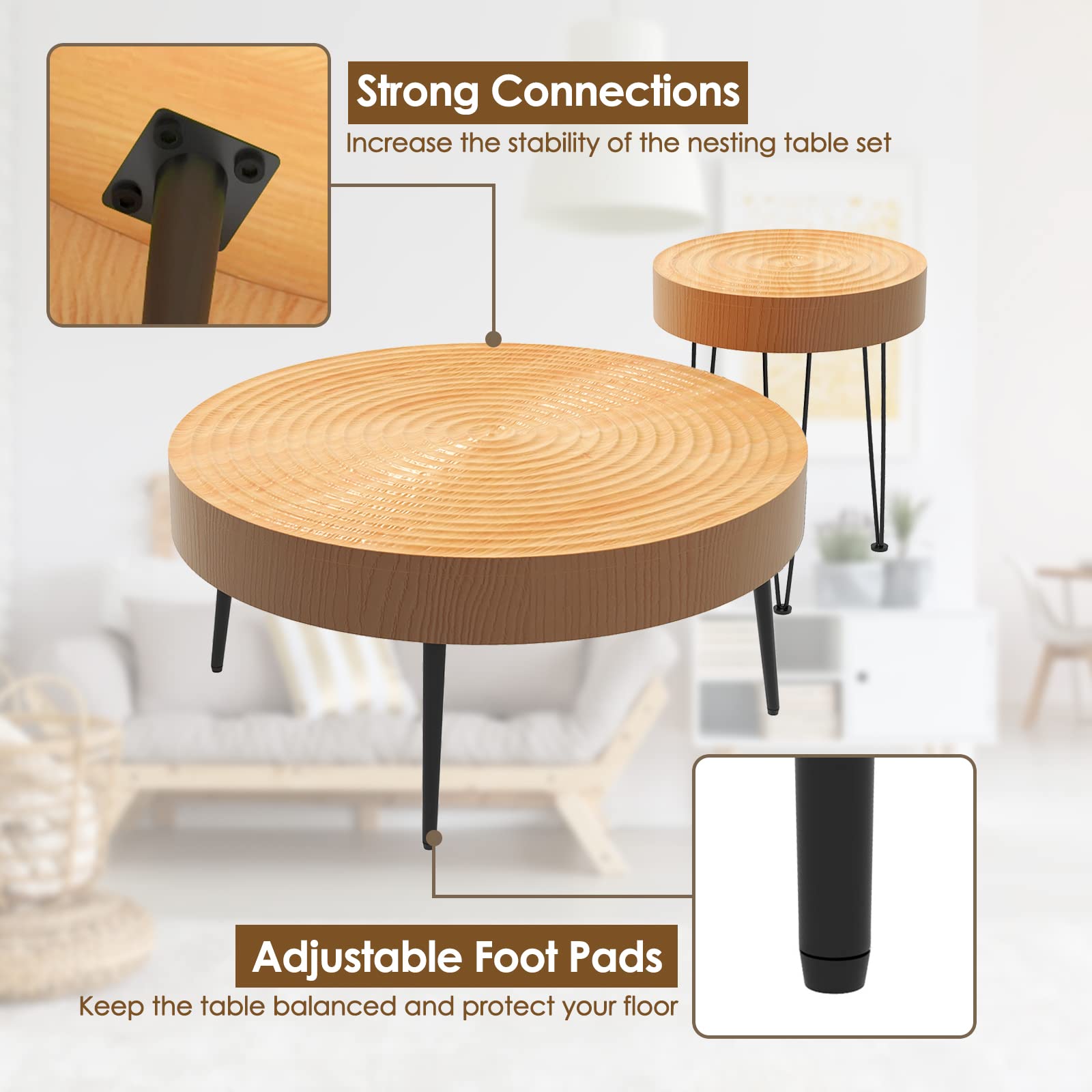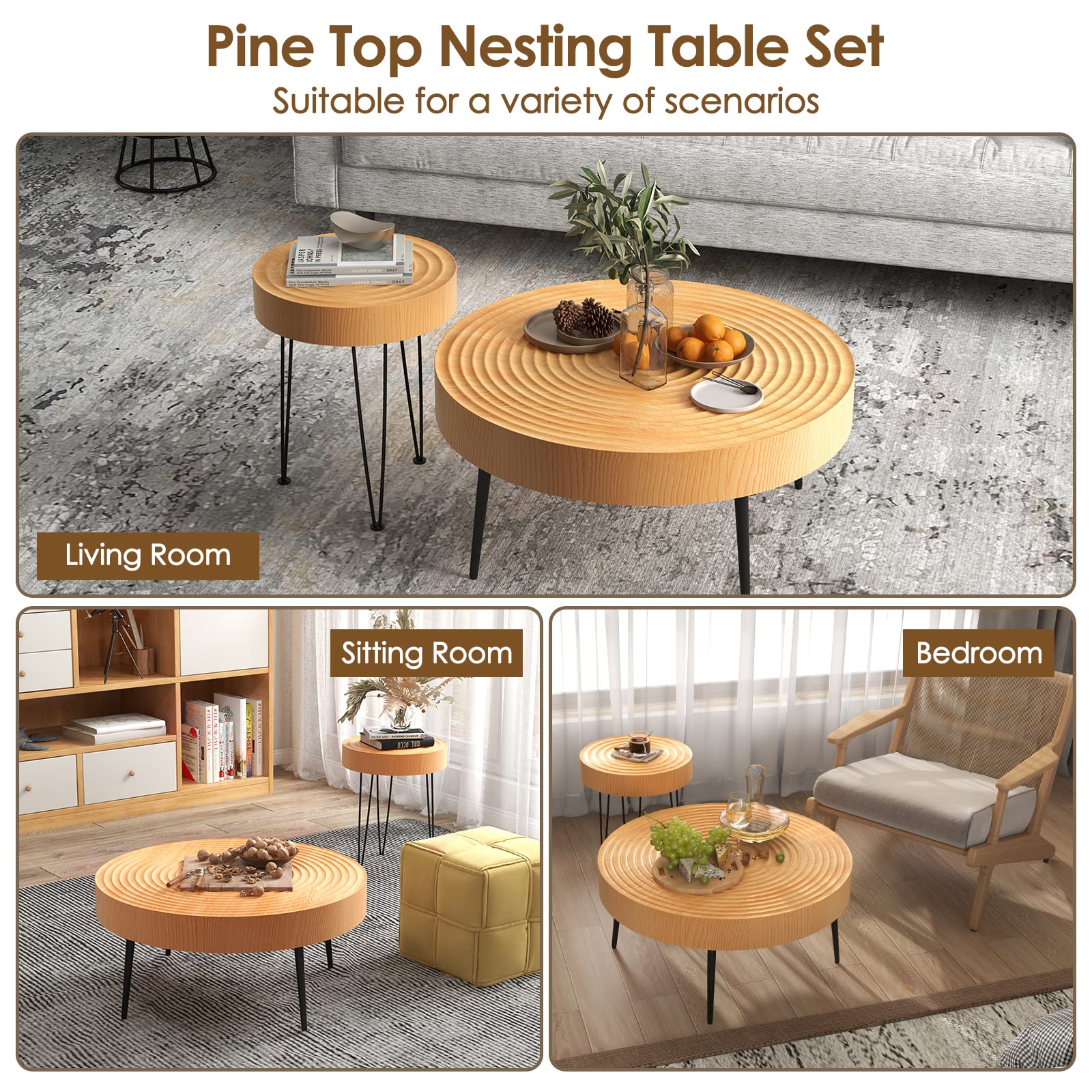- 31.5"D Large Pine Wood Table Top: The tops of our nesting tables are made entirely of natural pine wood, which not only has an elegant color and pattern but also exudes natural charm. Moreover, the 31.5"D large table top is large enough to accommodate drinks and snacks for multi-person gatherings.