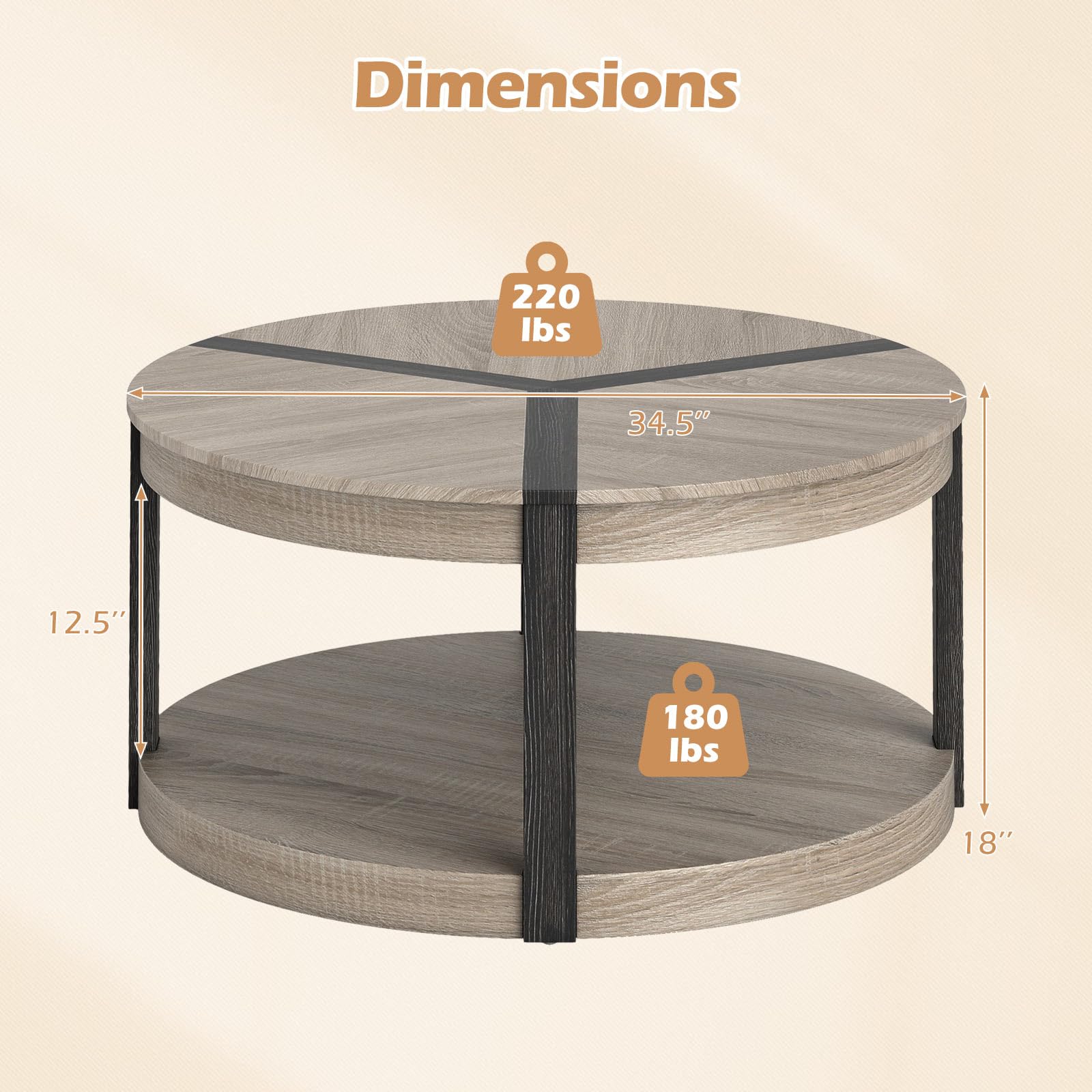 Bring warmth, function, and style to your space with this mid-century modern round coffee table. Featuring a 2-tier design and solid rubber wood frame, it provides ample room for storage and display—whether it’s your morning coffee, a stack of books, or decorative accents. Rounded corners and non-slip foot pads ensure safety and stability, while the smooth, easy-to-clean surface keeps maintenance simple. Whether you place it in a cozy living room or a professional reception space, this table adds instant charm and lasting reliability. Assembly is quick and hassle-free, so you can enjoy your new centerpiece right away.