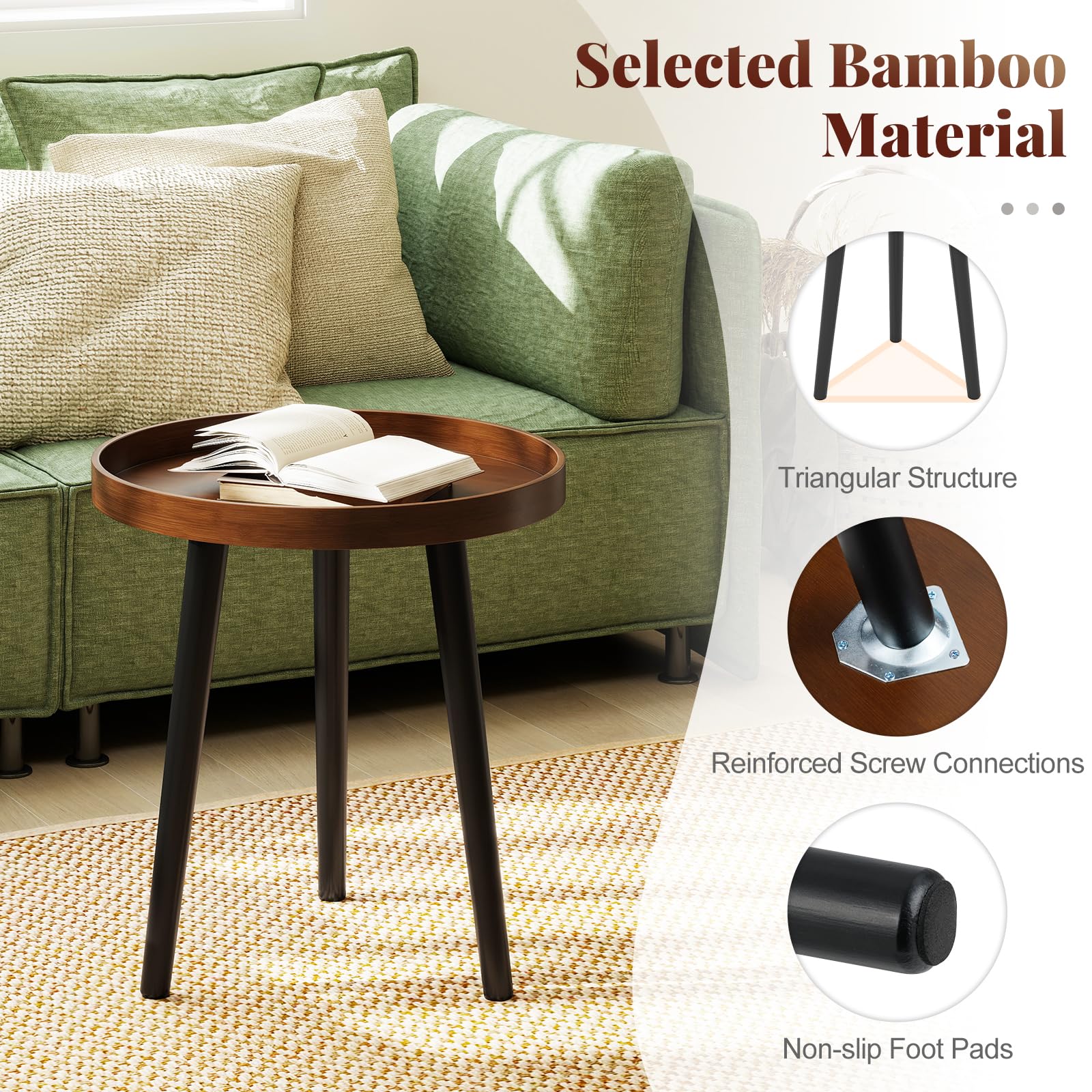 Simple, stylish, and surprisingly sturdy—this round side table combines a natural wood tray with three bamboo legs for a clean, balanced look. The raised edge keeps your essentials in place, while smooth corners add a soft touch. Lightweight and easy to move, it’s perfect beside the sofa, bed, or even your favorite reading nook. No tools needed—just screw on the legs and wipe clean when needed. Effortless charm in every corner.
