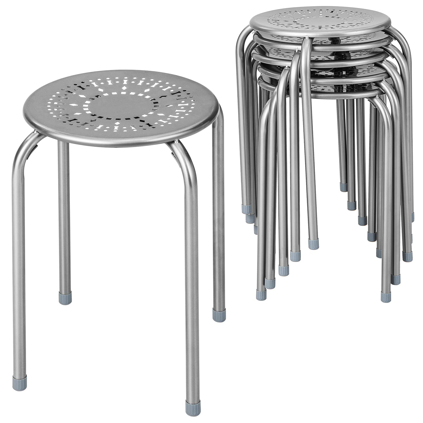 Giantex Round Metal Stool Set of 6-17.5" Height Stackable Stool with Anti-Slip Foot Pads