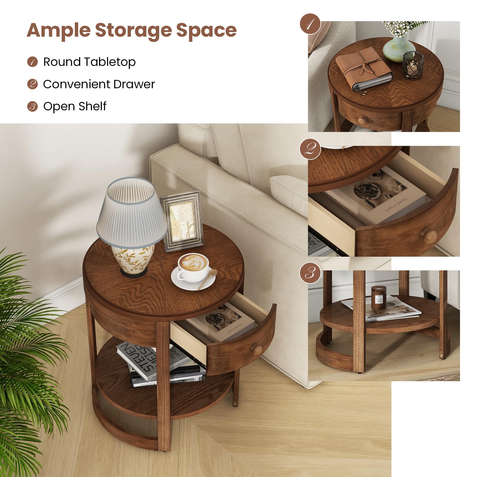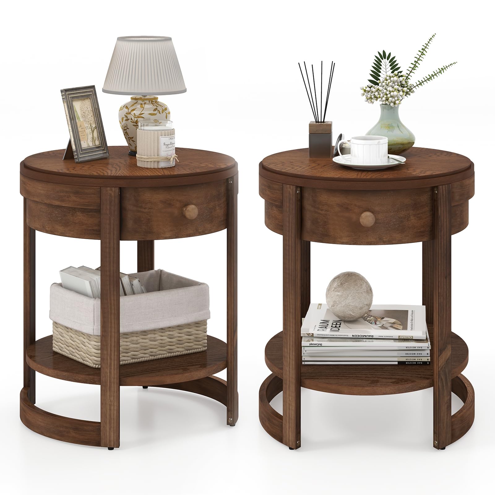 - Vintage Meets Modern: The round end table expertly combines a classic antique wood grain finish with sleek, mid-century modern design elements. Perfect for various furnishing styles, this side table imbues your space with a touch of nostalgia.