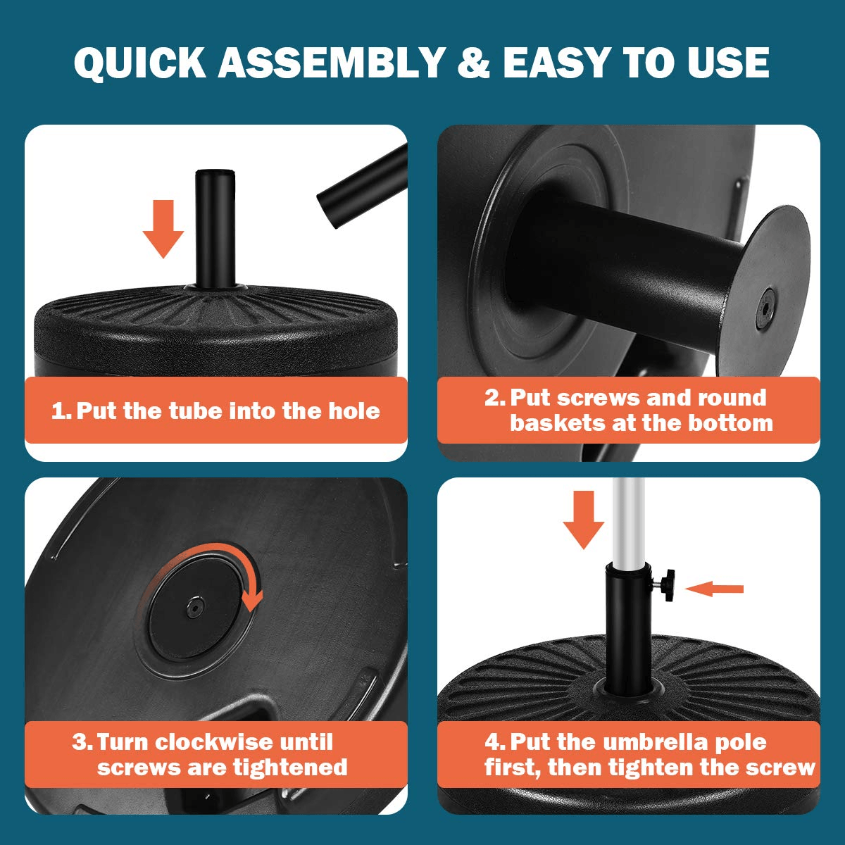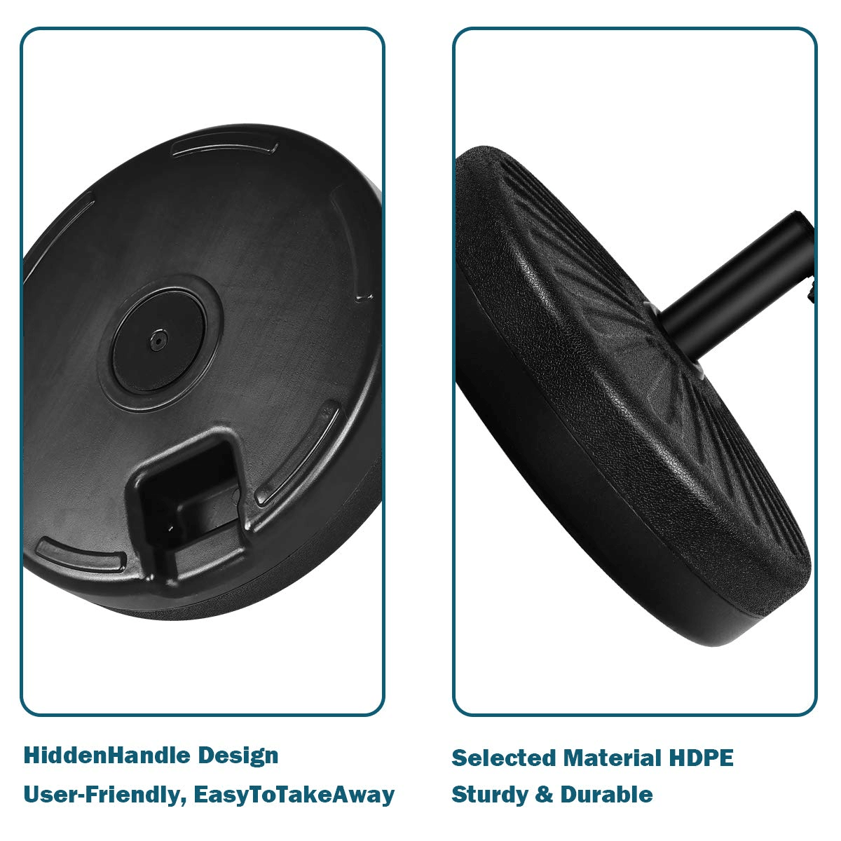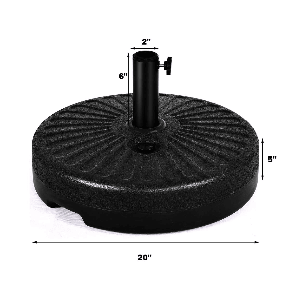 Our20" round 23L water filled umbrella base is designed to keep your patioumbrella base stable and You don't need to worry any puff of wind whichdisturbing your summer relax in the shade.