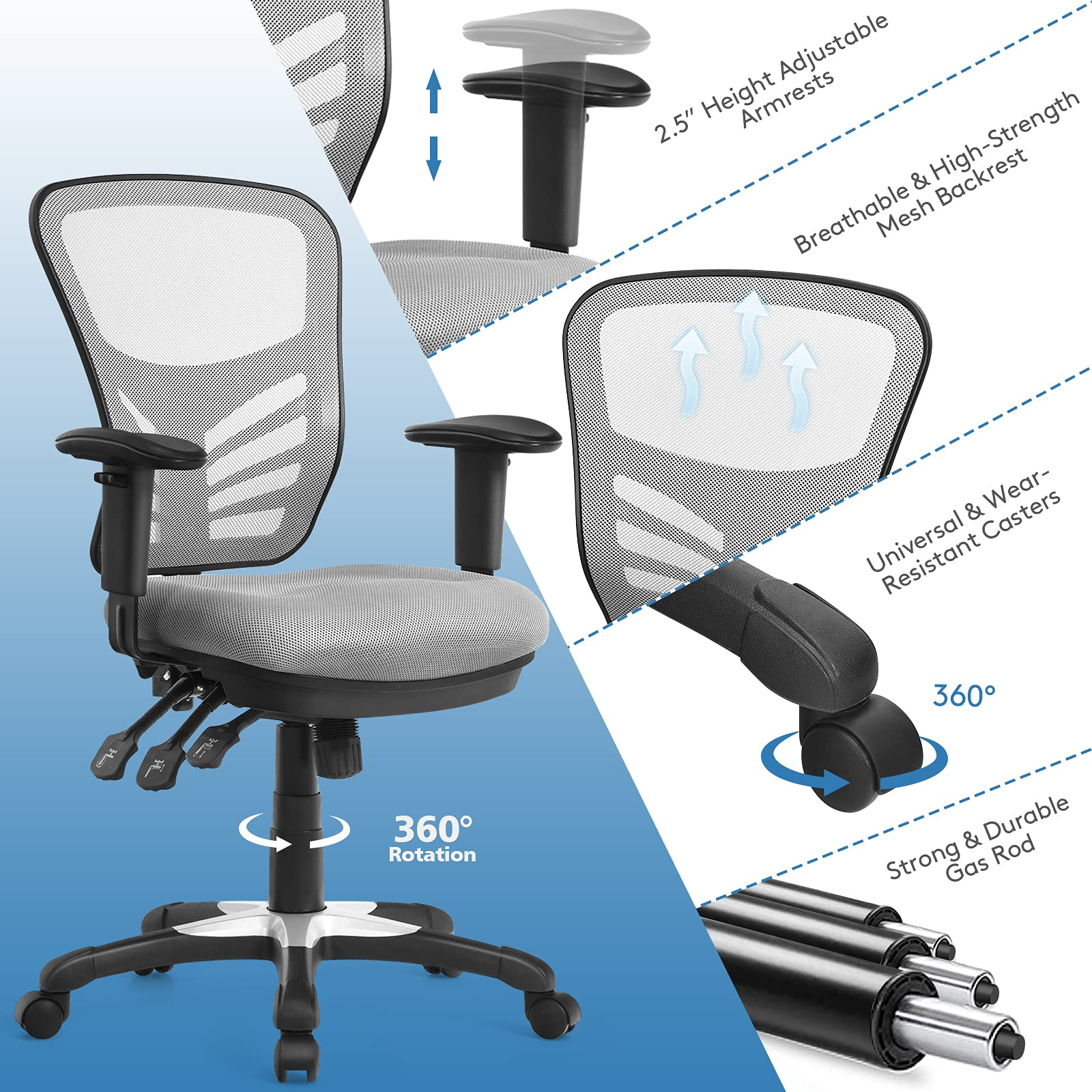 Adjustable armrests within the 2.5" height range offer more choices to meet your needs