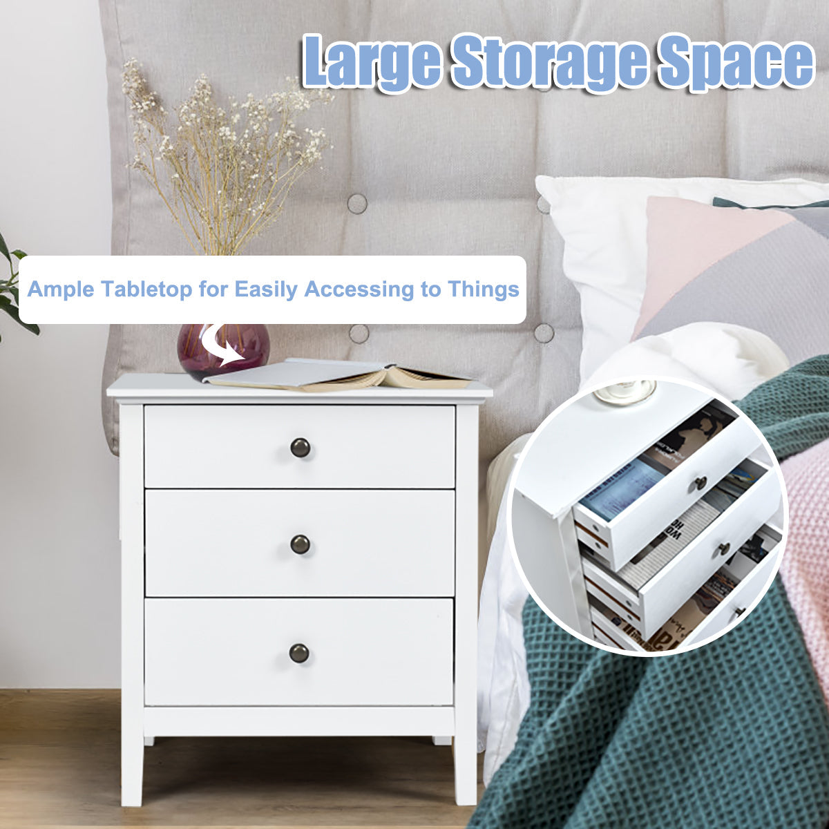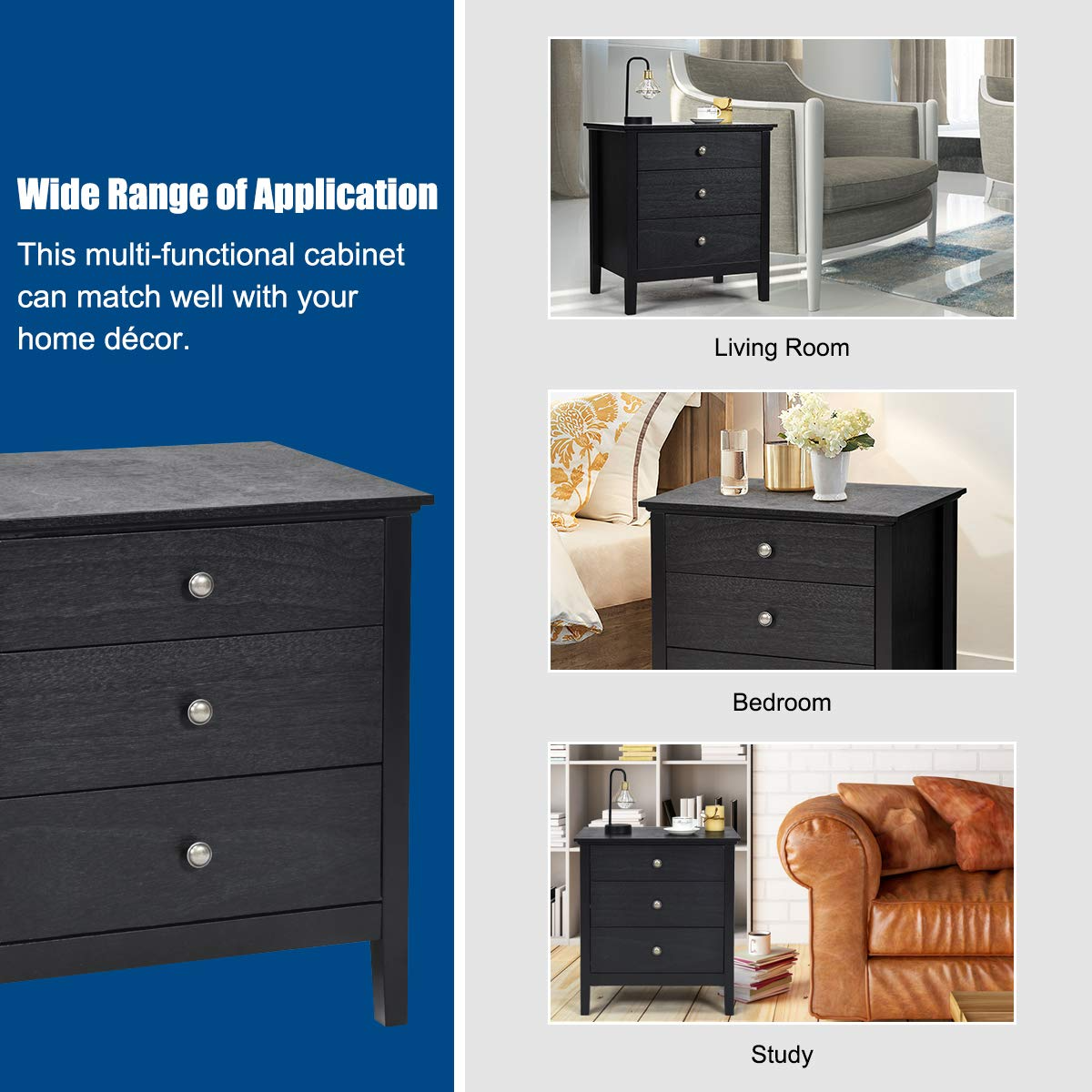 - 3 Large Drawers for Efficient Storage: This large-capacity bedside table provides plenty of storage for your books, lamps, glasses, and photo frames. Three spacious and deep drawers is easy to access and easy to keep the room tidy.