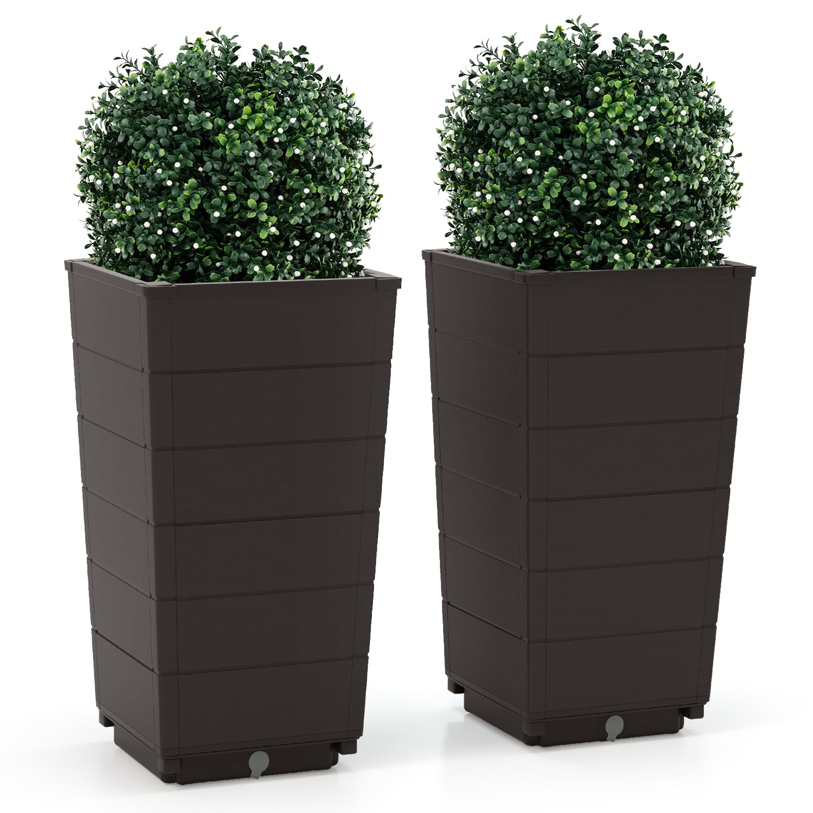 Giantex Set of 2 Outdoor Flower Pot, 23" Tall Planters with Drainage Hole, Self-Watering Tray