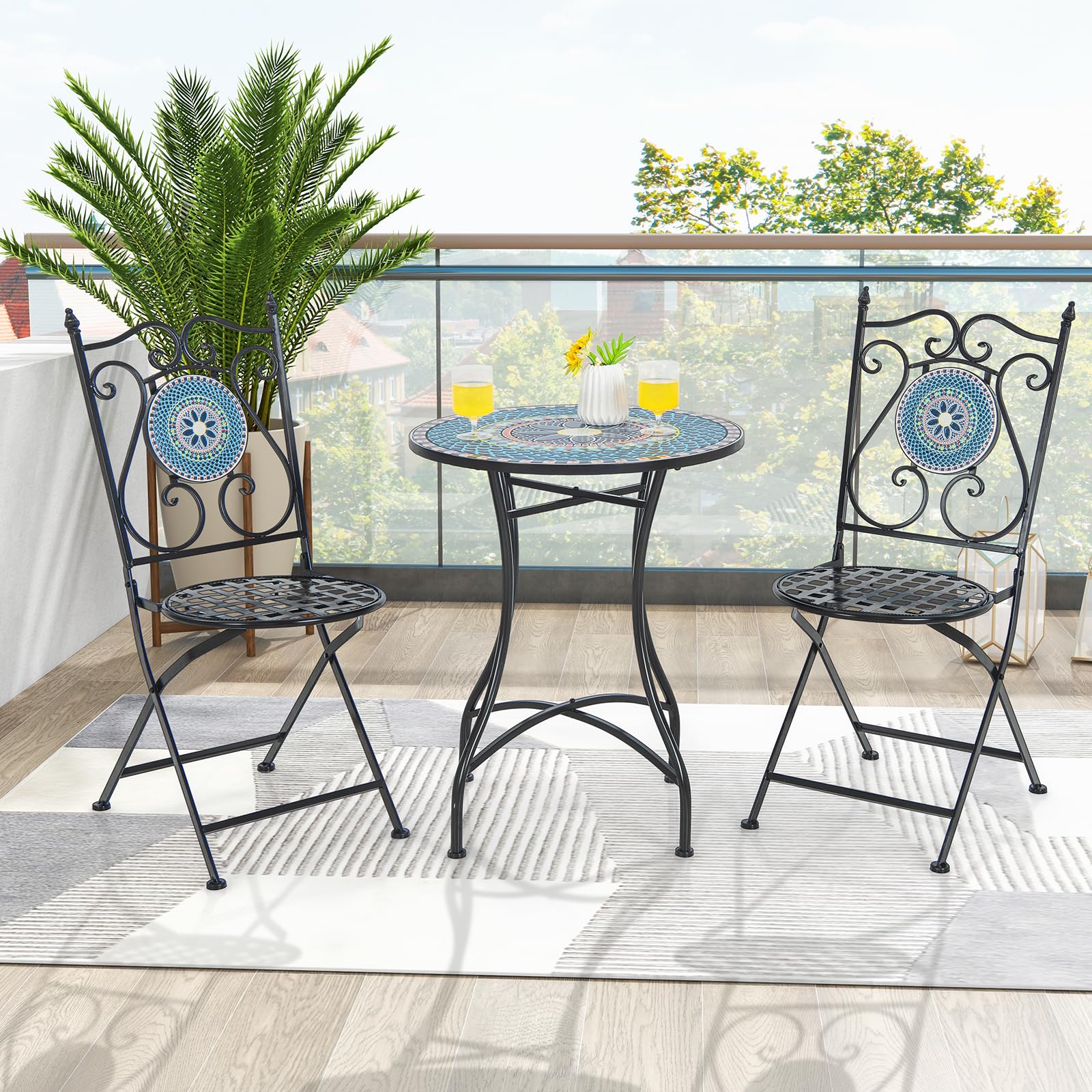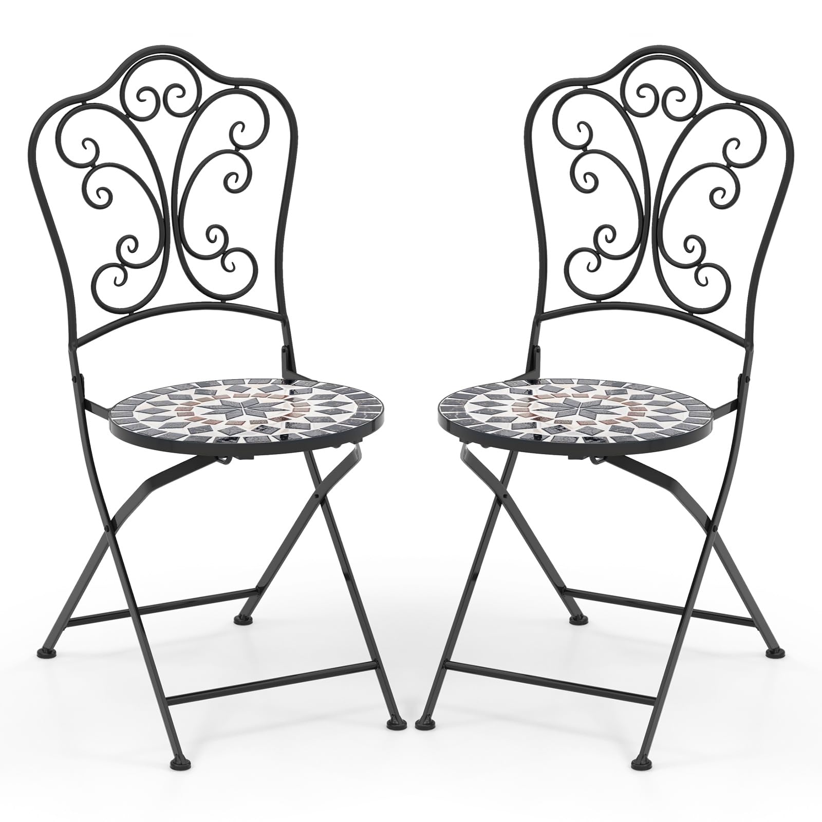 - [Quick-Folding Chairs]: Effortlessly fold and store this mosaic chairs in compact spaces. The foldable design not only saves valuable storage space but also enables easy portability. No assembly is required for the chairs, simplifying your setup process.