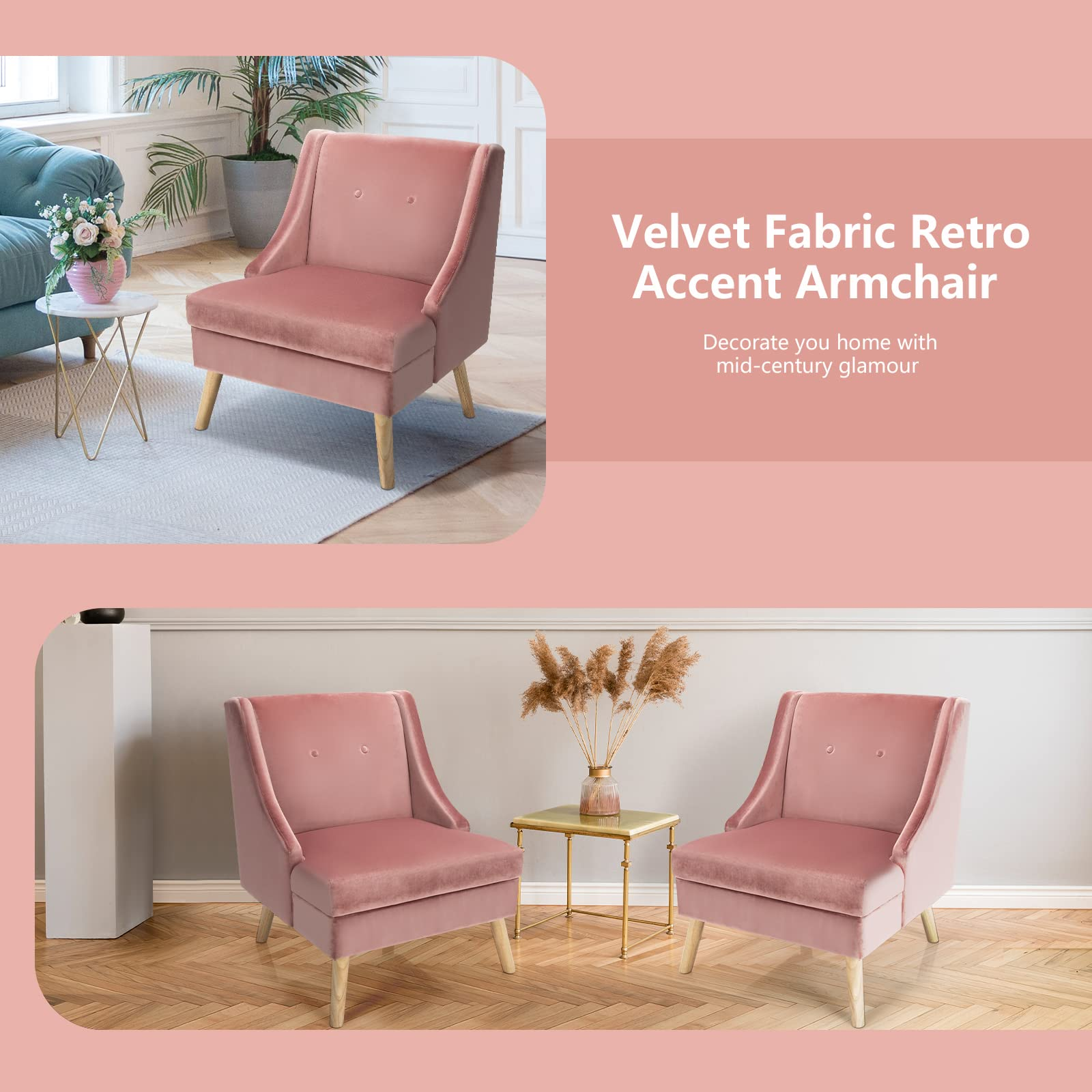 This accent chair is beautifully designed with a high wingback and armrests without sacrificing any comfort. The cushion is plush to sit and is filled with high-density sponge and springs to ensure lasting plumpness. And this living room chair uses luxury yet low-profile velvet fabric, making the vintage-style accent chair even more dashing for most of the home decorations. Framed with a plywood wood structure supported by 4 rubber wood legs, this single sofa can stand 265 lbs of maximum weight. Ideal for staying in your living room, bedroom, office, coffee shop.