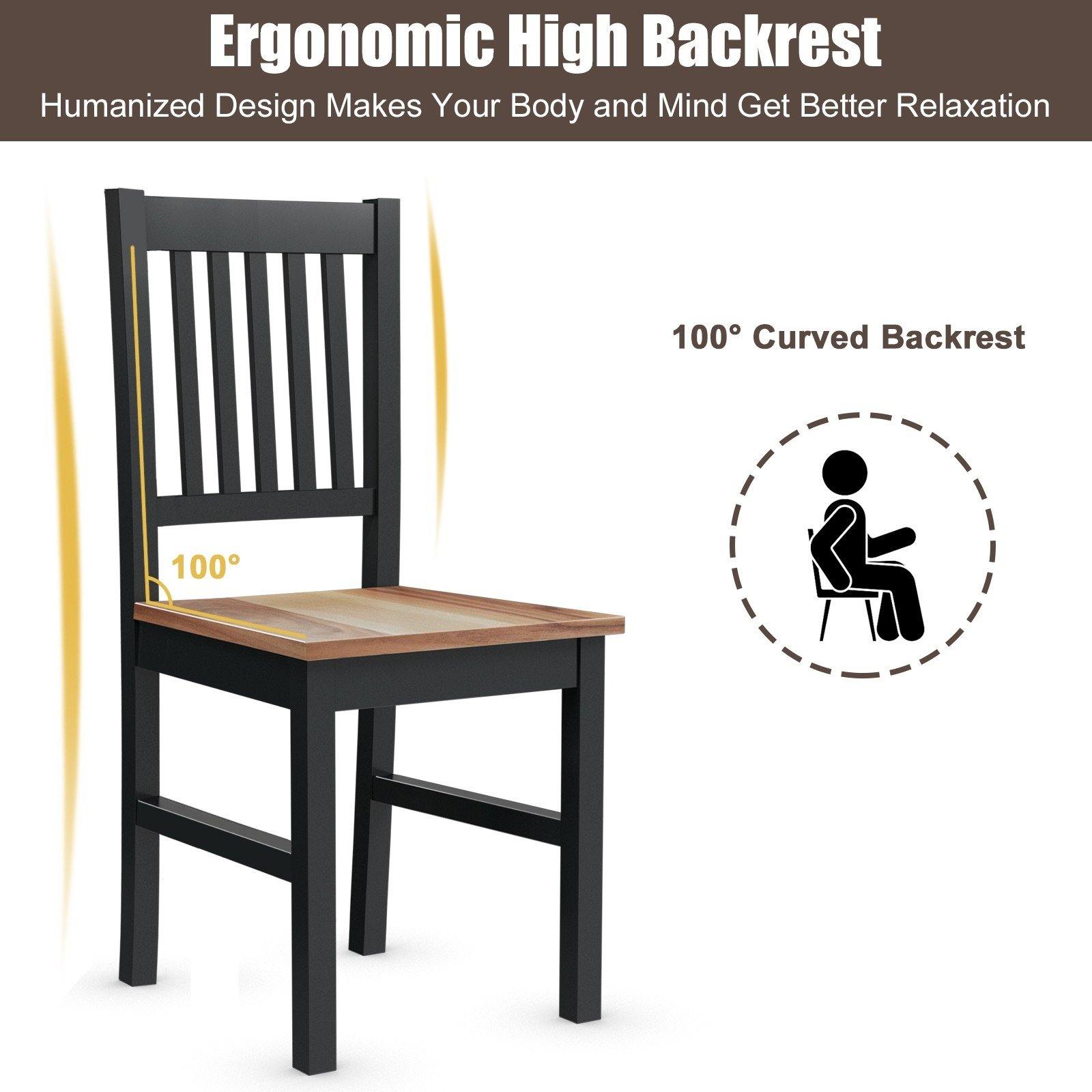 Our dining chairs will give you a wonderful dining experience! High-quality rubber wood and solid connection ensure the structure is sturdy enough for long time use. Besides, the curved backrest is ergonomically designed to offer strong support and relieve your back fatigue. Widened seats effectively distribute the pressure to provide a more comfortable seating feeling. You can sit down and enjoy afternoon tea at leisure. With a simple and elegant style, this versatile dining chair set will be a great addition to your home, which is perfect for the bedroom, kitchen, office, restaurant, living room, or any other place.