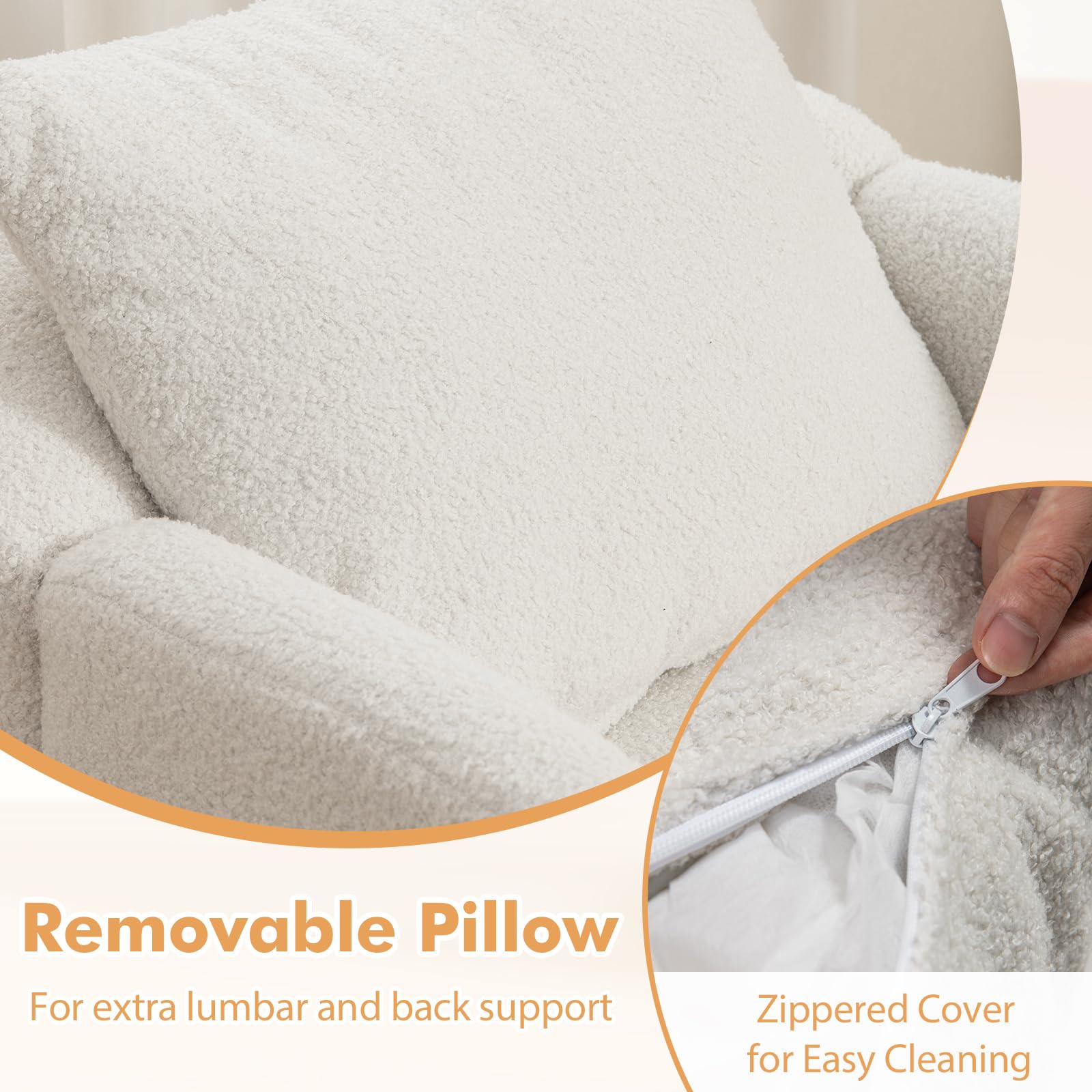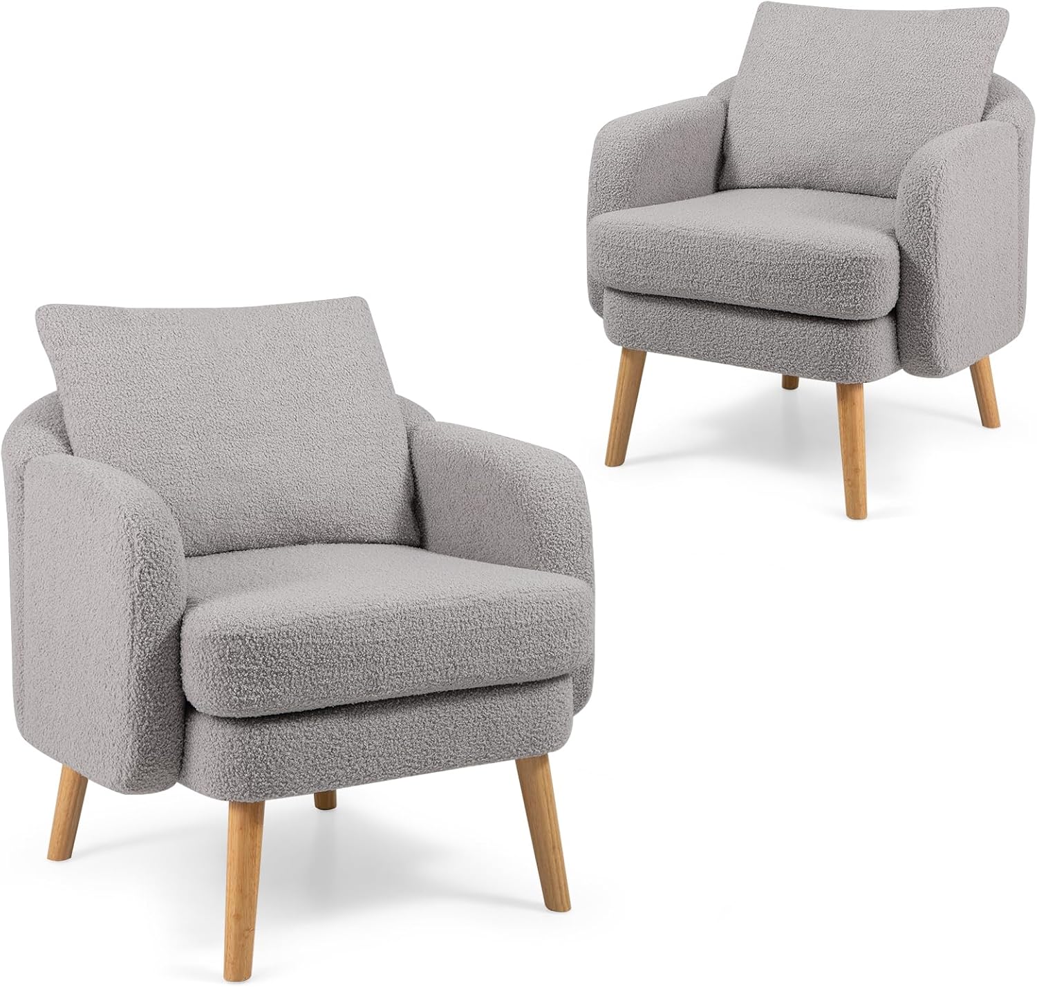 Giantex Sherpa Accent Chair, Modern Upholstered Single Sofa Chair with Back Pillow & Solid Rubber Wood Legs