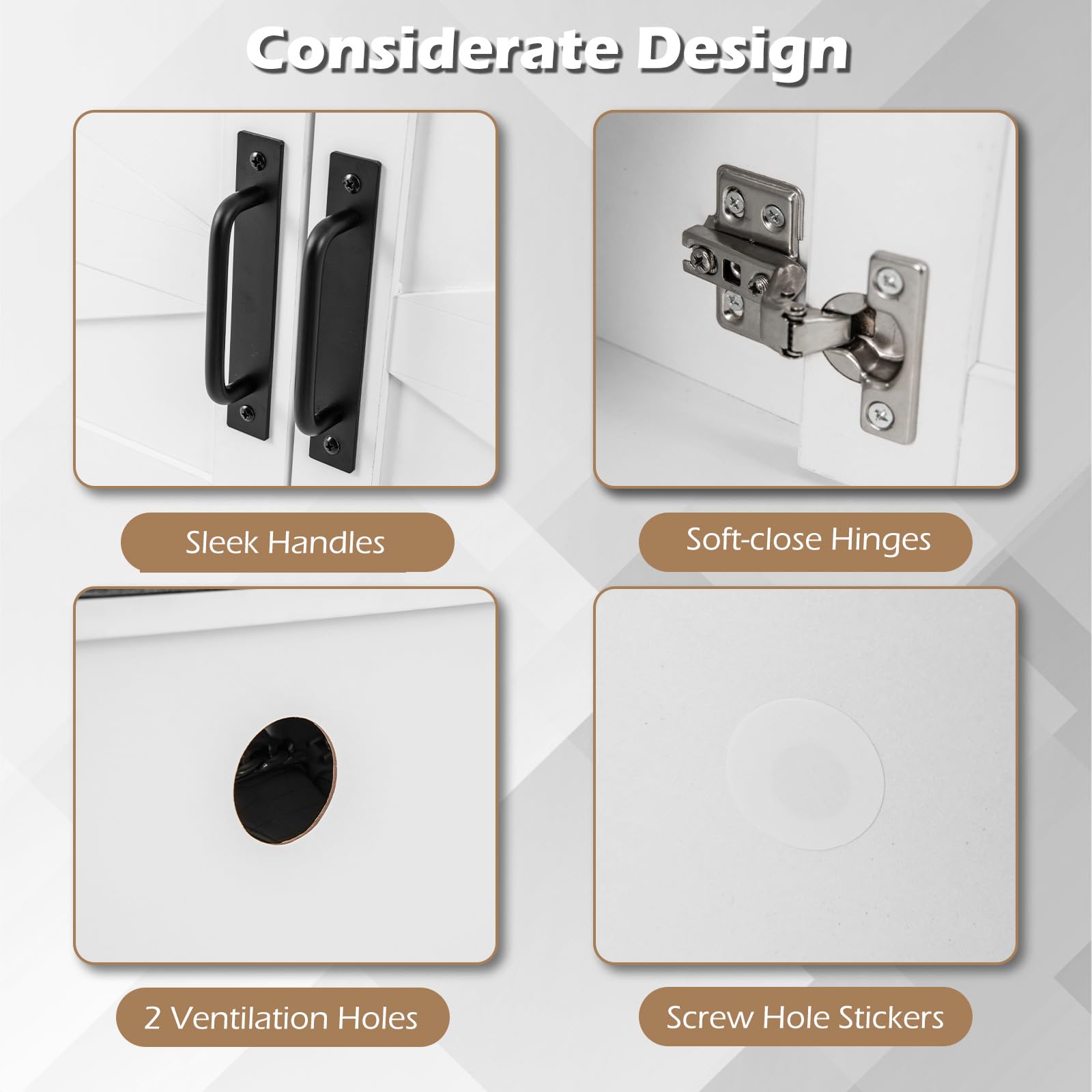 Soft-close metal hinges help reduce noise