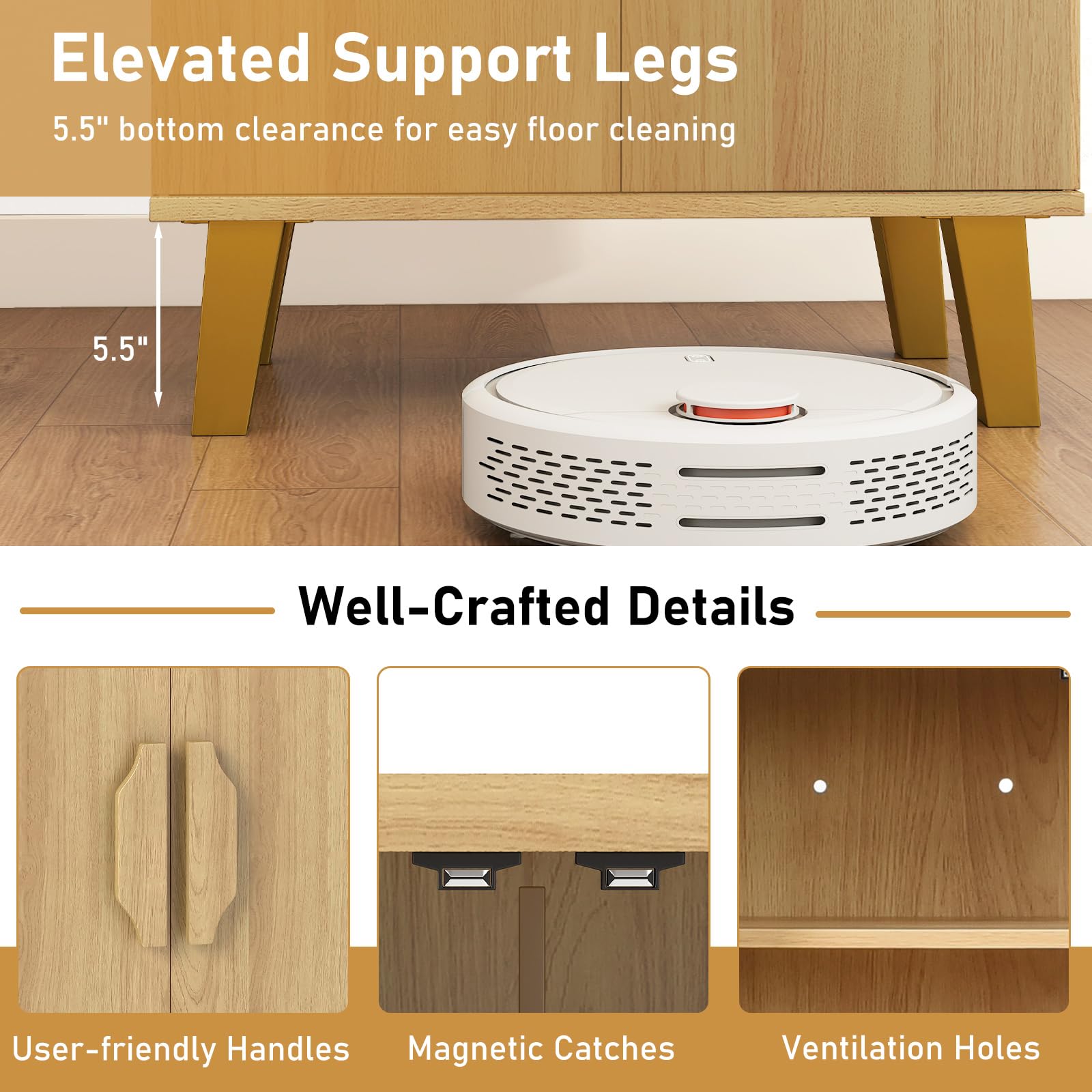 Organize in style with this versatile sideboard, featuring generous storage space with a spacious countertop and 4 compartments concealed behind doors. Tailor your space with removable shelves to accommodate items of various sizes, enabling a clutter-free environment. Designed for safety and stability, it is equipped with robust stable legs and the anti-toppling device. Well-crafted details, including user-friendly handles and magnetic catches, ensure an effortless experience. Elevate your space with this elegant and practical storage solution.