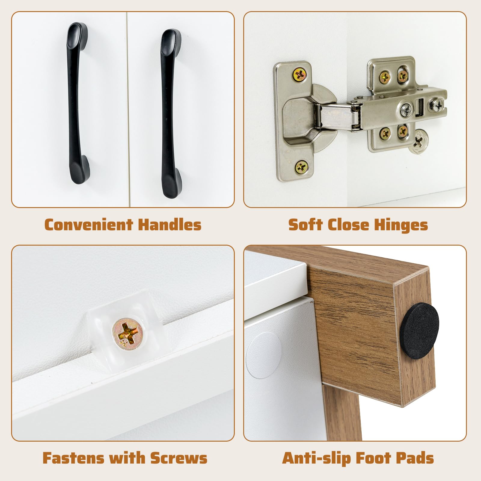 This stylish sideboards beautifully blends a wood-like surface with sleek lines, achieving a modern yet farmhouse aesthetic. Enjoy ample storage with its wide countertop, drawer, pull-out shelf, open compartment and a 2-door cabinet offered by the kitchen buffet cabinet. For added safety and stability, it includes anti-toppling devices and anti-slip foot pads, making the sideboards and buffets with storage a reliable choice.