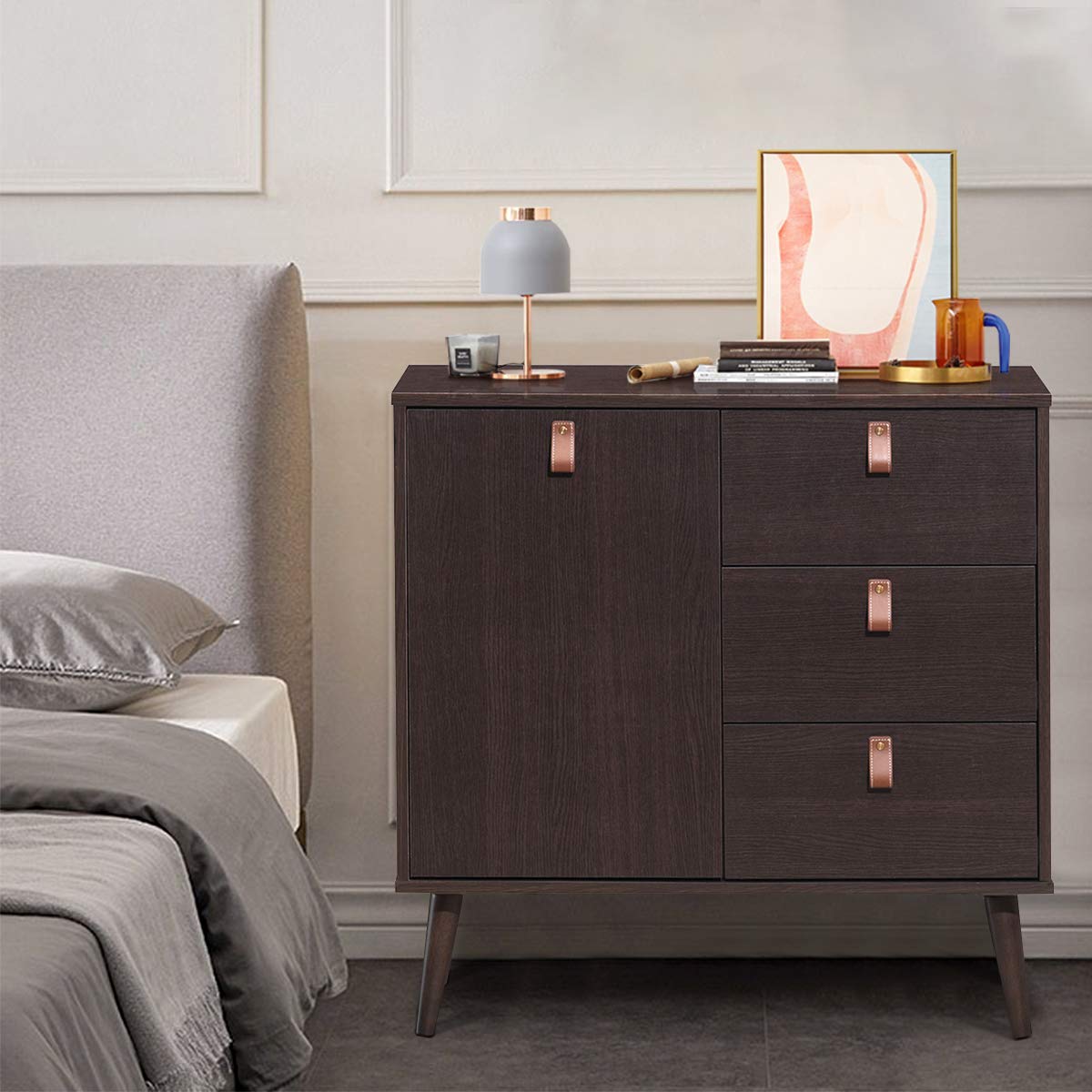 - Concise and Modern Appearance- Combining simple lines and generous color, the mid-century drawer chest could make your room be more elegant and match various decoration style. Besides, the chic leather handle is unique and refined.
