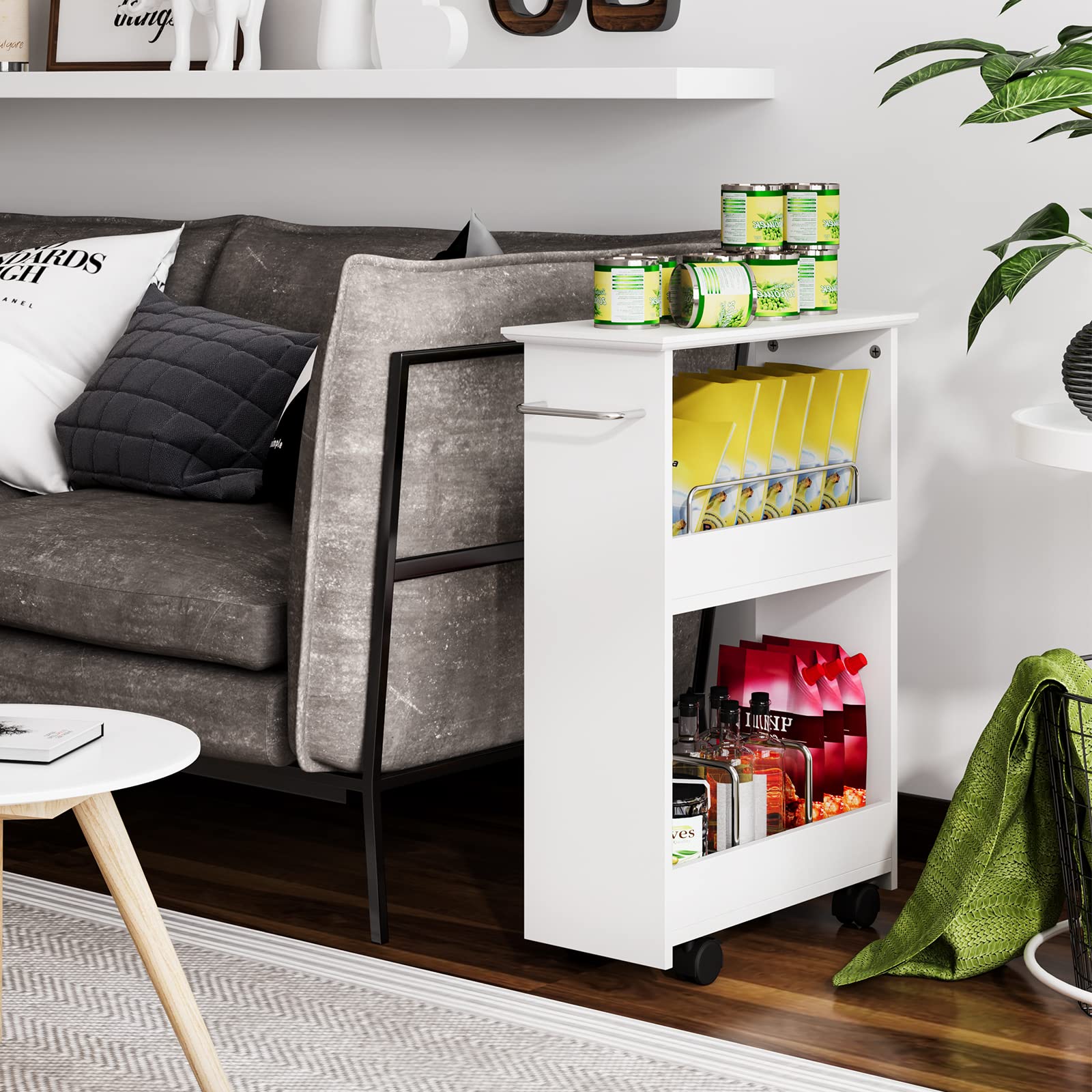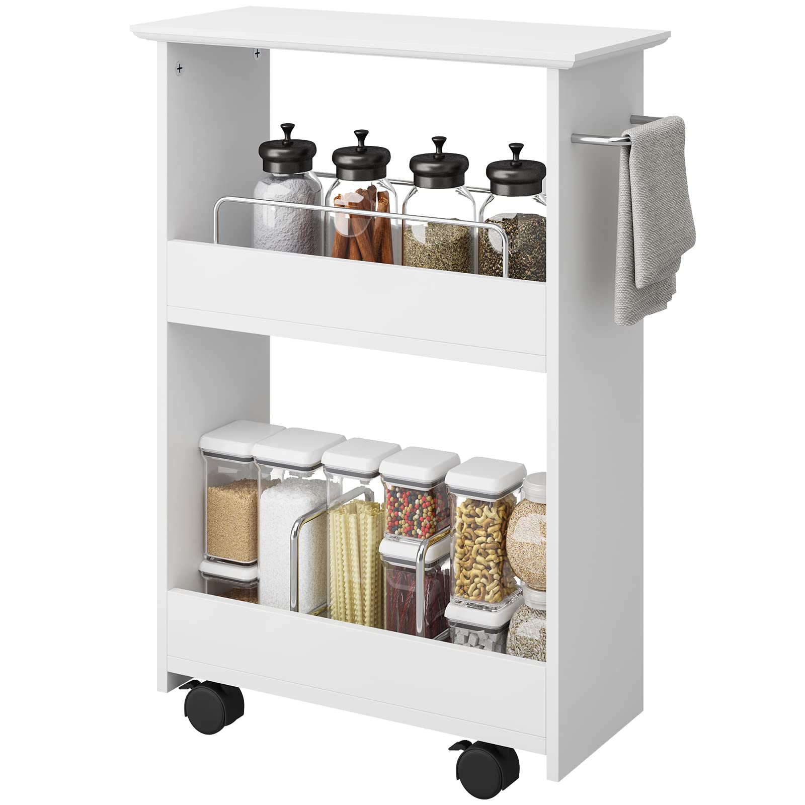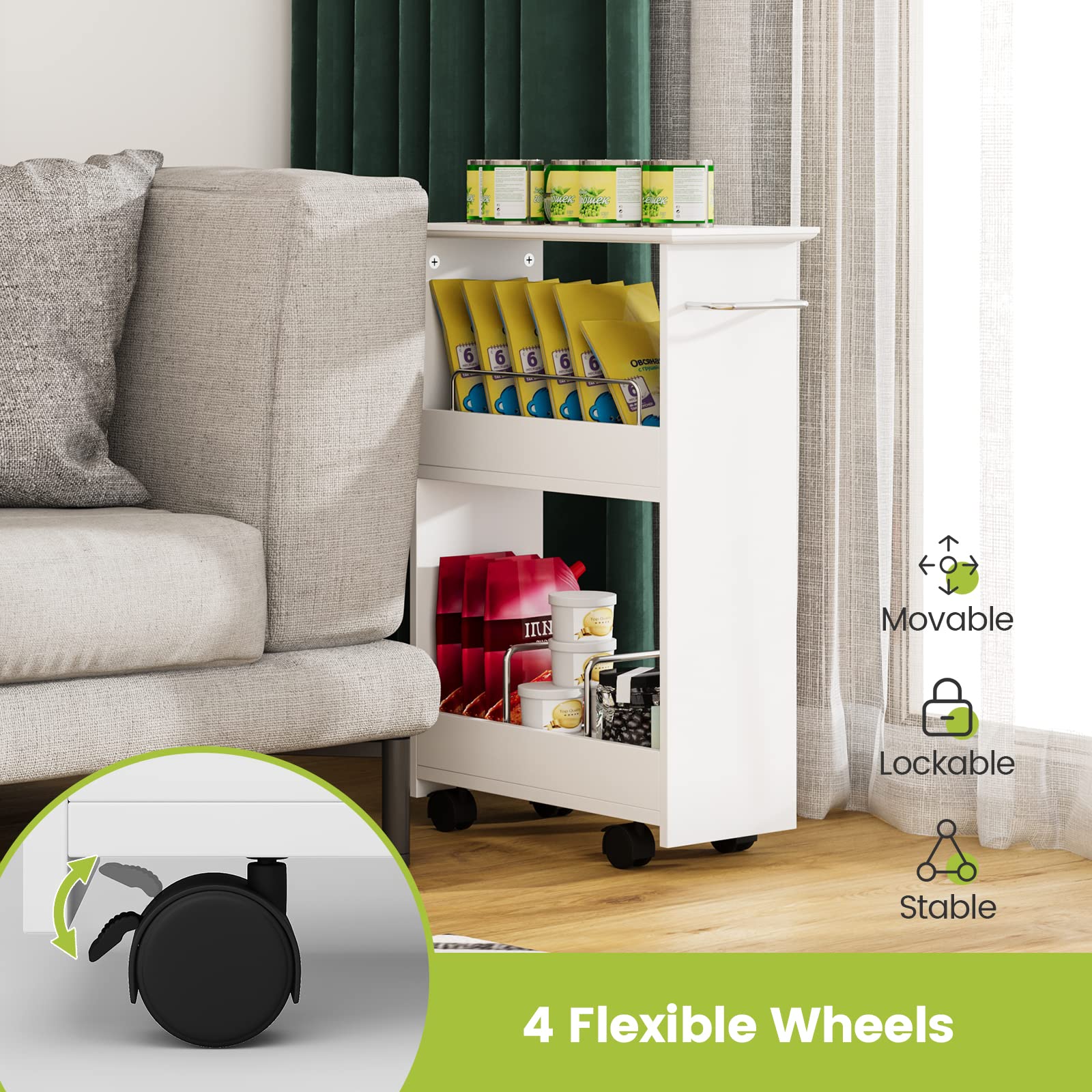 [Slide-out Design to Save Space]: Our slim storage cart with 8” width won’t occupy too much floor space and is suitable for different places, such as kitchen, dining room, bathroom or laundry room. Therefore, you can place it in any narrow corner to save space and effortlessly slide out the cart to acquire what you need.