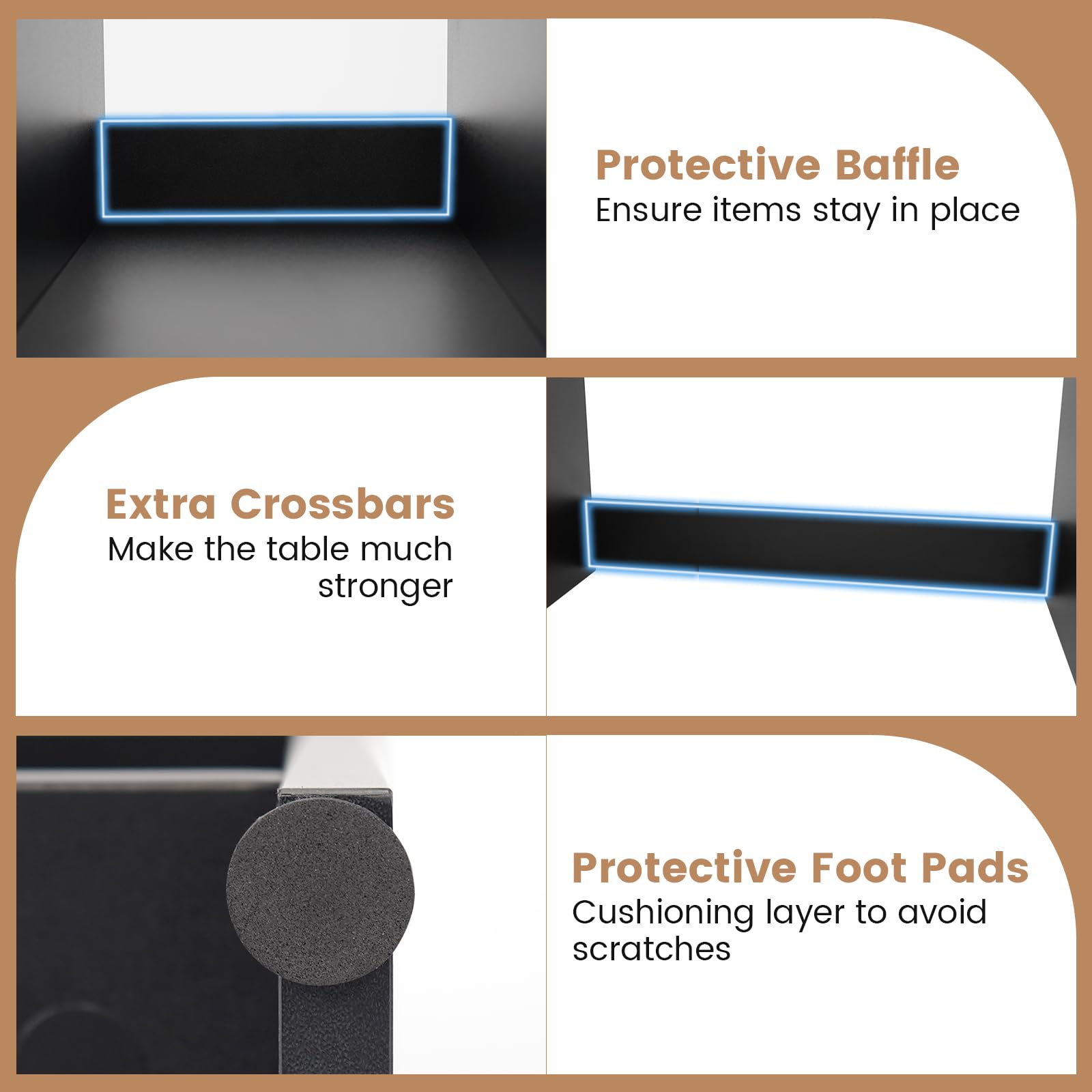 Unlike others without storage, ours comes with 2-tier shelf for storage addition