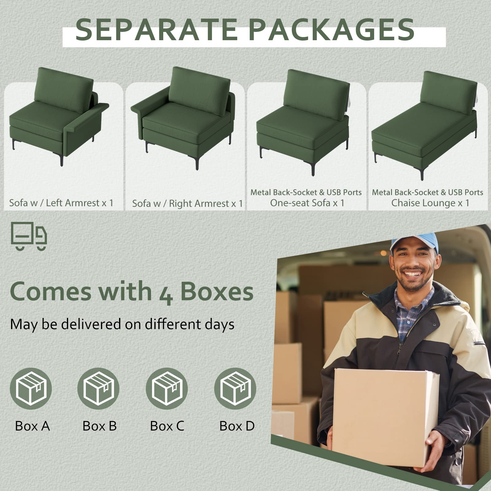 - 〖4 Boxes & Easy Assemble〗: 4 boxes may be shipped at different times. The detailed instructions will tell you how to assemble the sofa set easily.
