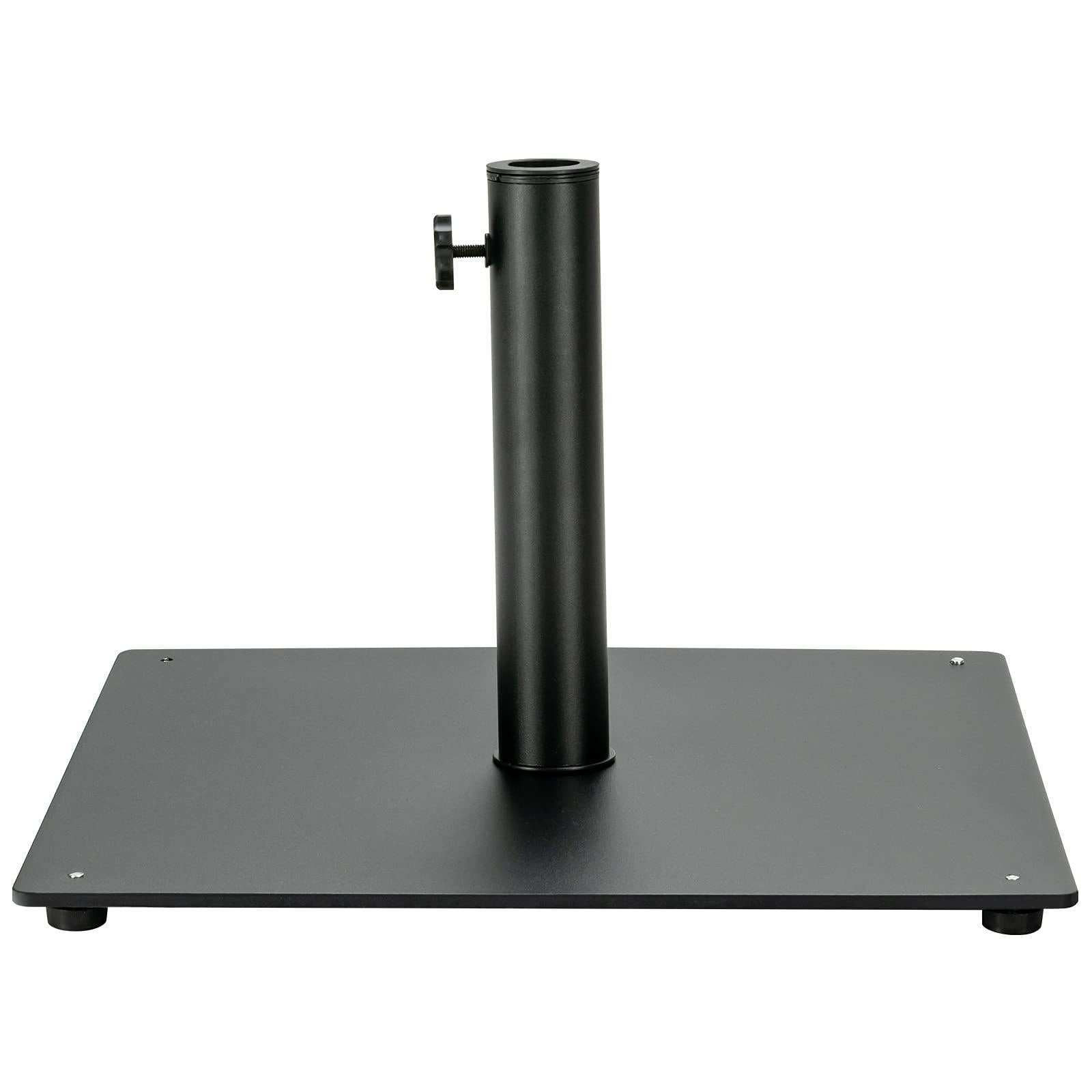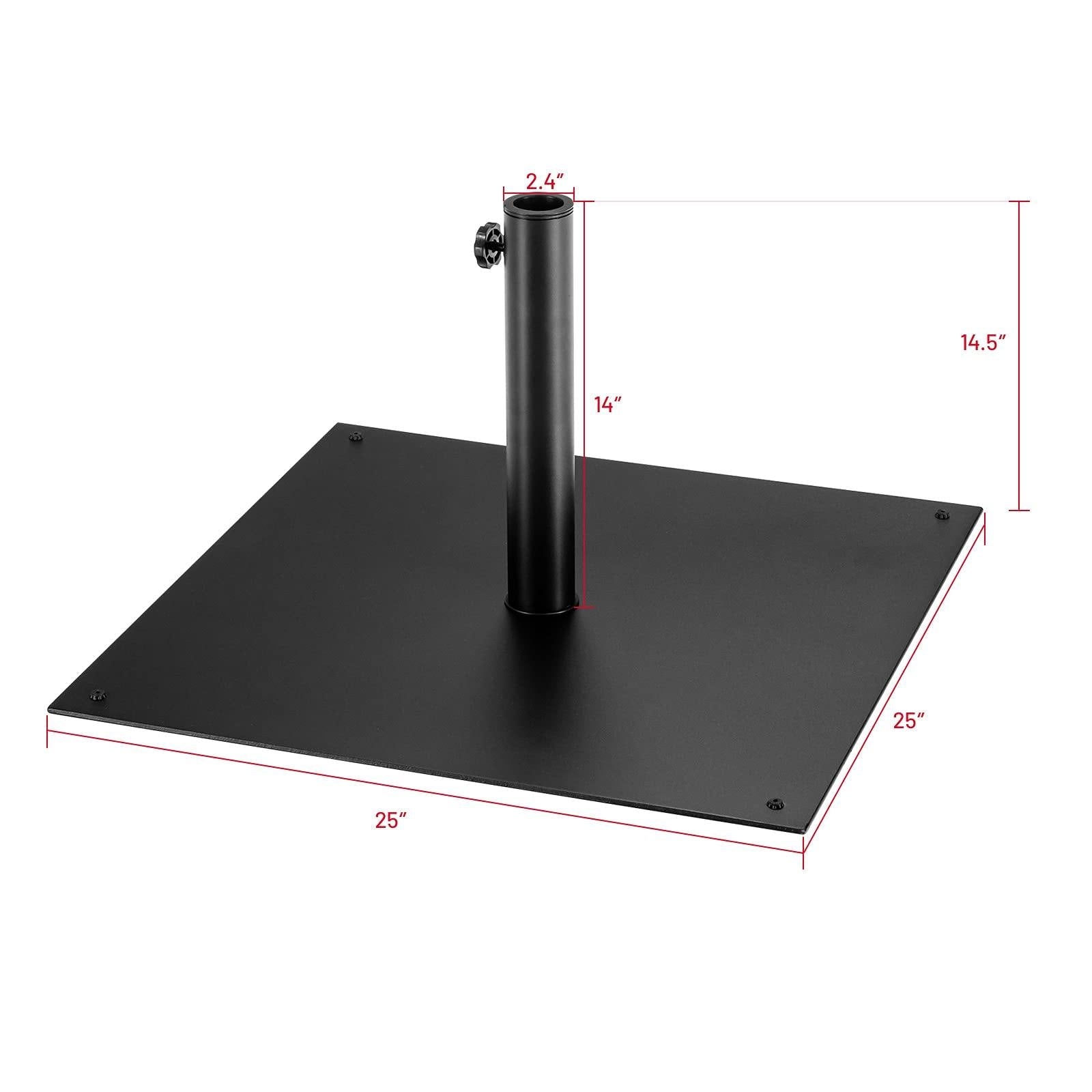 This practical umbrella base is ideal for your backyard, poolside and other outdoor places. Premium steel with powder coated framework improves the strength and durability of this umbrella stand, which is stable enough to withstand windy conditions. Besides, the hand tightening knob allows you to tightly set the position of the umbrella pole for stability. With its concise flat design, this outdoor patio umbrella stand not only adds charm and elegance to your decor, but can also be placed underneath the table. Moreover, this square base includes 3 adapters to fit 1.4inch 1.5inch 1.9inch diameter umbrella poles, which is perfect for your daily needs. Just enjoy your outdoor leisure time with this versatile umbrella base.