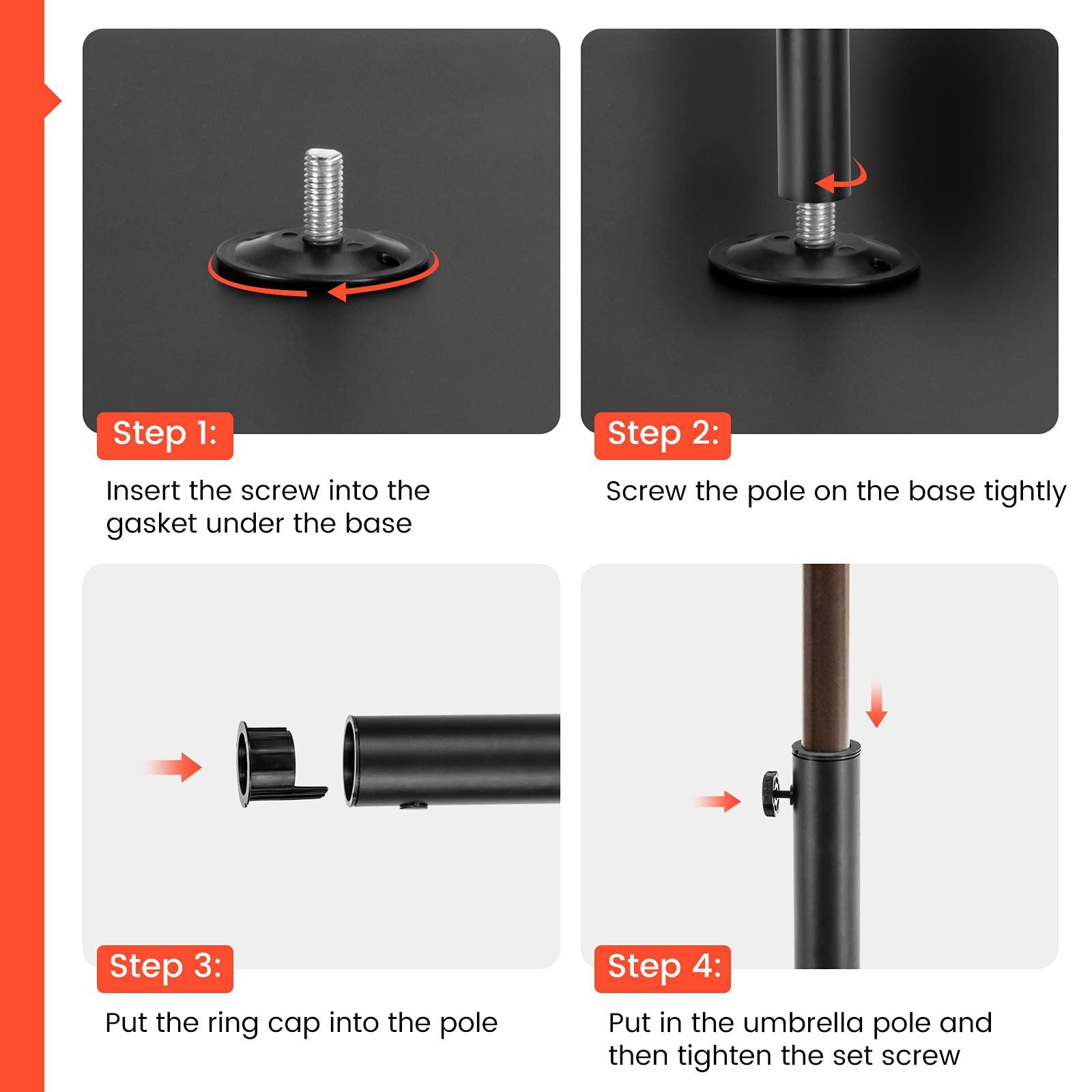 Accommodate to 1.4''/1.5''/1.9'' diameter umbrella poles