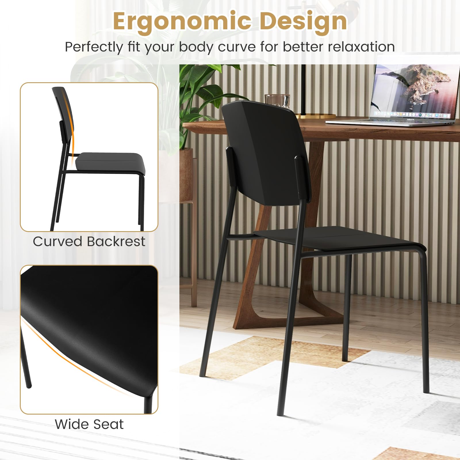 Giantex Stackable Dining Chairs Set, Modern Kitchen Chairs w/Metal Legs & Curved Back, Load up to 350 LBS