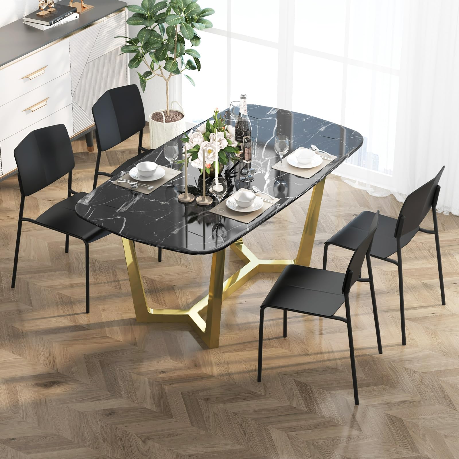 • Modern Aesthetics: The modern design of these side chairs, featuring matte textures on PP seats and a matching metal frame, adds a sophisticated touch to any dining space – whether in kitchens, dining rooms, living rooms, restaurants, etc.