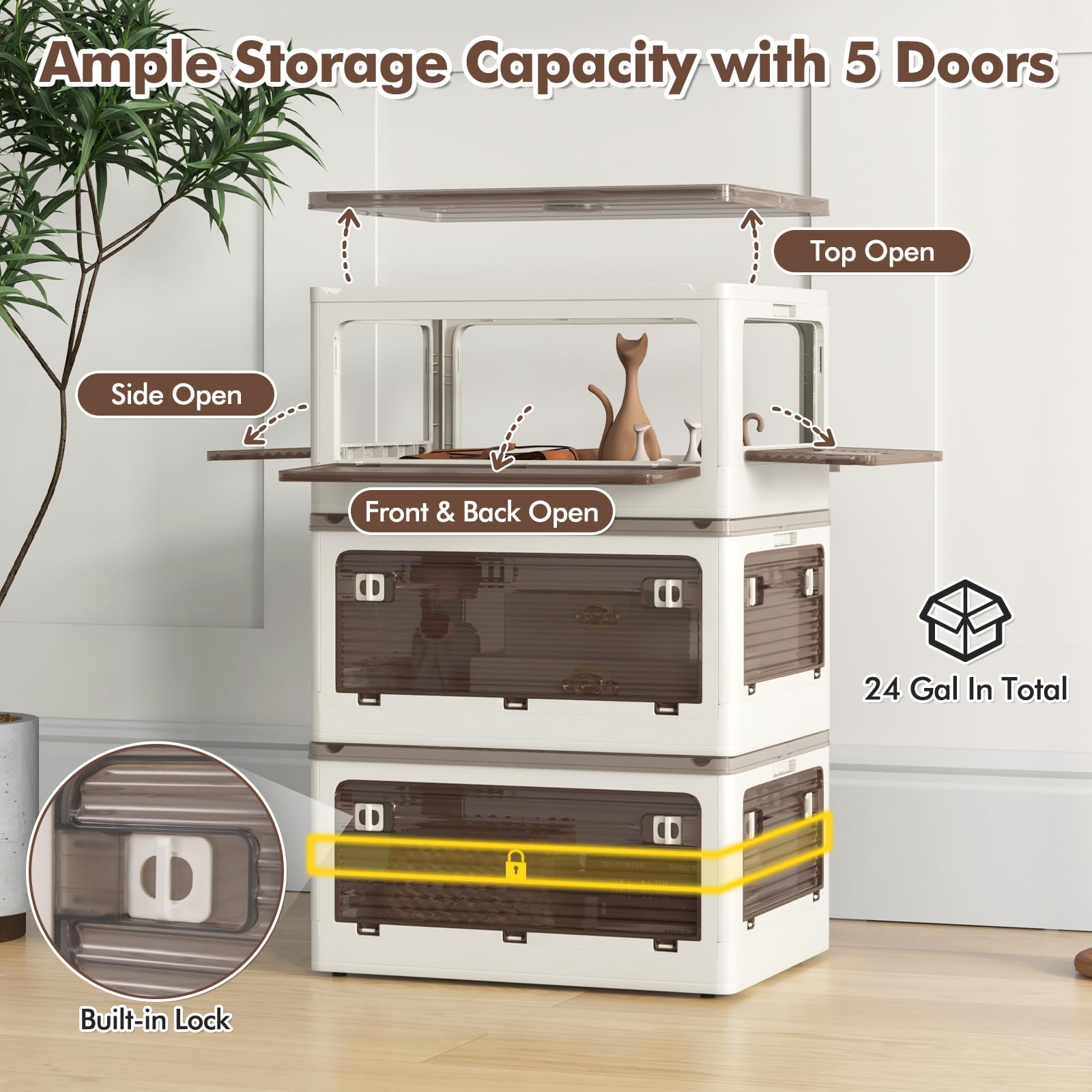 Enhanced Storage Organizers with 5 Doors: In addition to a basic front door and top lid, our storage organizer features 5 versatile doors that can be accessed from both sides and the rear. Each door is fitted with secure locks for added safety and improved sealing.