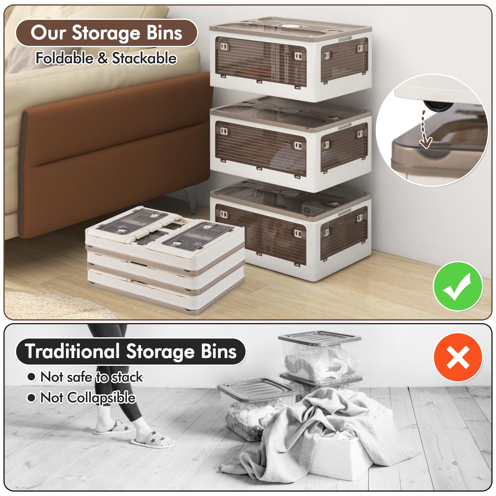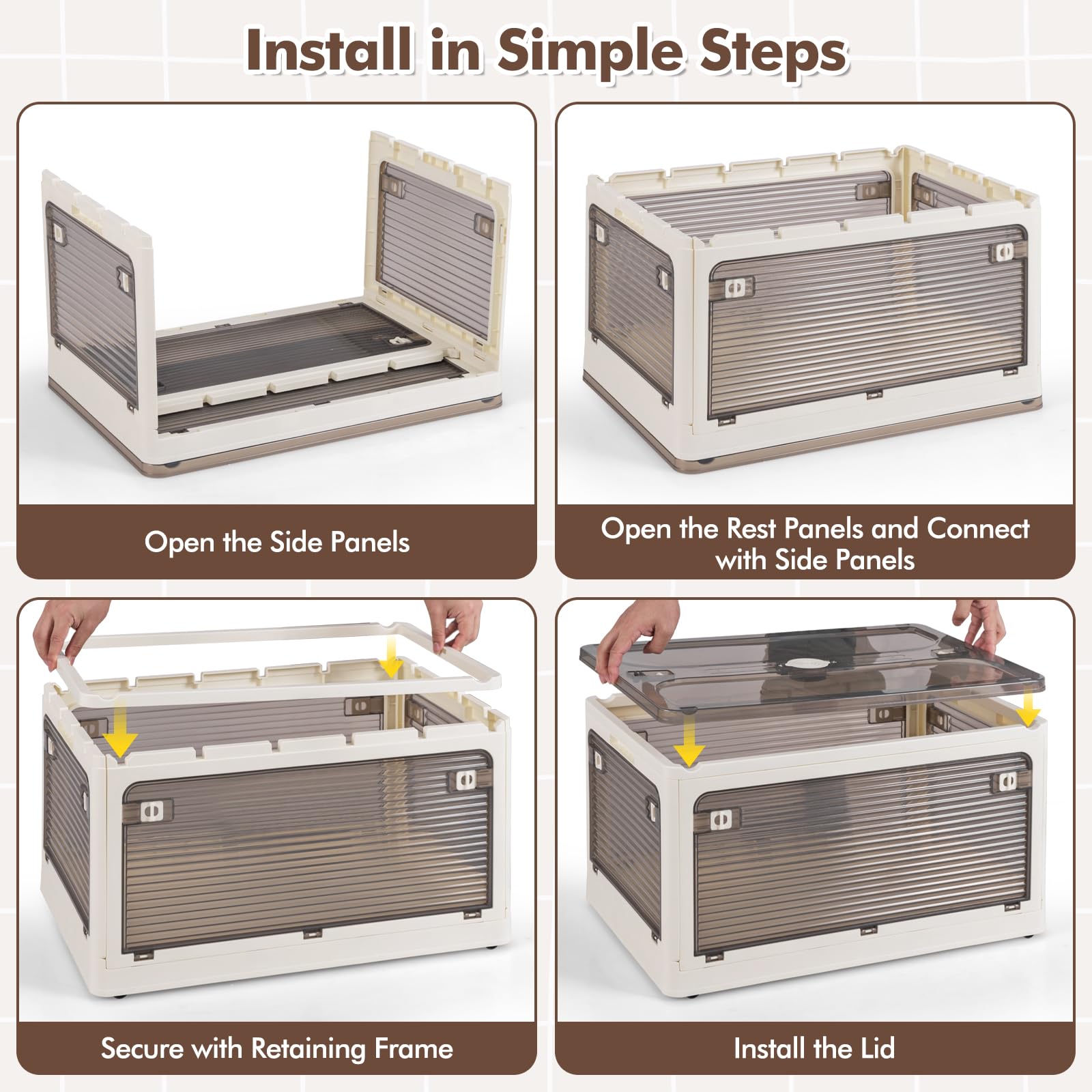 Each bin boasts a generous storage capacity, confident to handle a wide array of items, from your clothes to kitchen or office supplies. Designed for 5-way access, these cube bins keep your items within easy reach. You can choose to stack them for a sleek, organized look or spread them out as needed. And when it's time to reclaim your space, you can collapse them with ease. Enjoy seamless portability with the wheels and the added convenience of practical handles. Bid farewell to complicated assembly – our bins come ready for instant use, no tools needed.