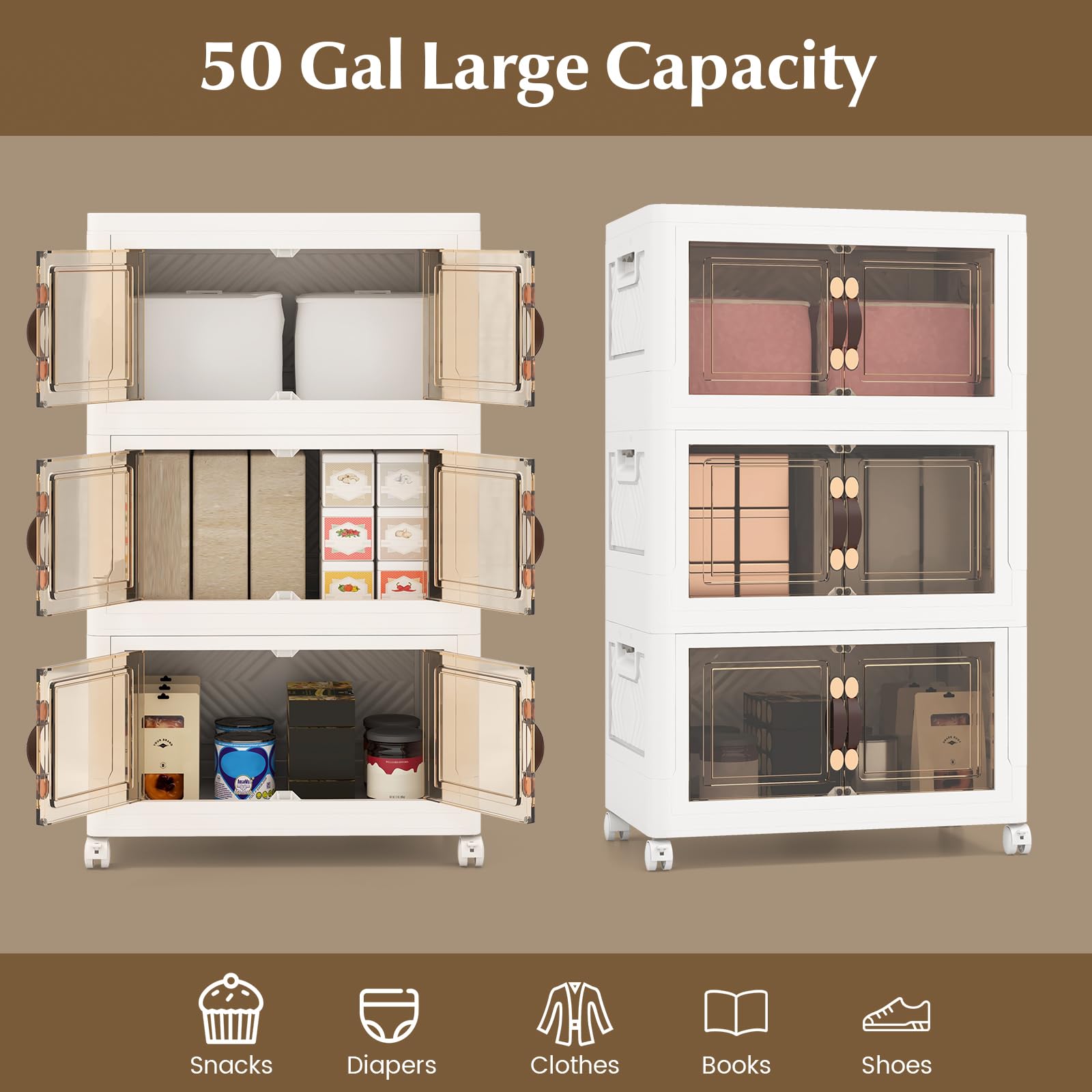 - 【50 Gal Large Capacity】: With a total capacity of 50 gallons, these 3 storage bins are perfect for organizing and decluttering any space. They provide ample storage for seasonal clothes, books, diapers, snacks, shoes, and more.