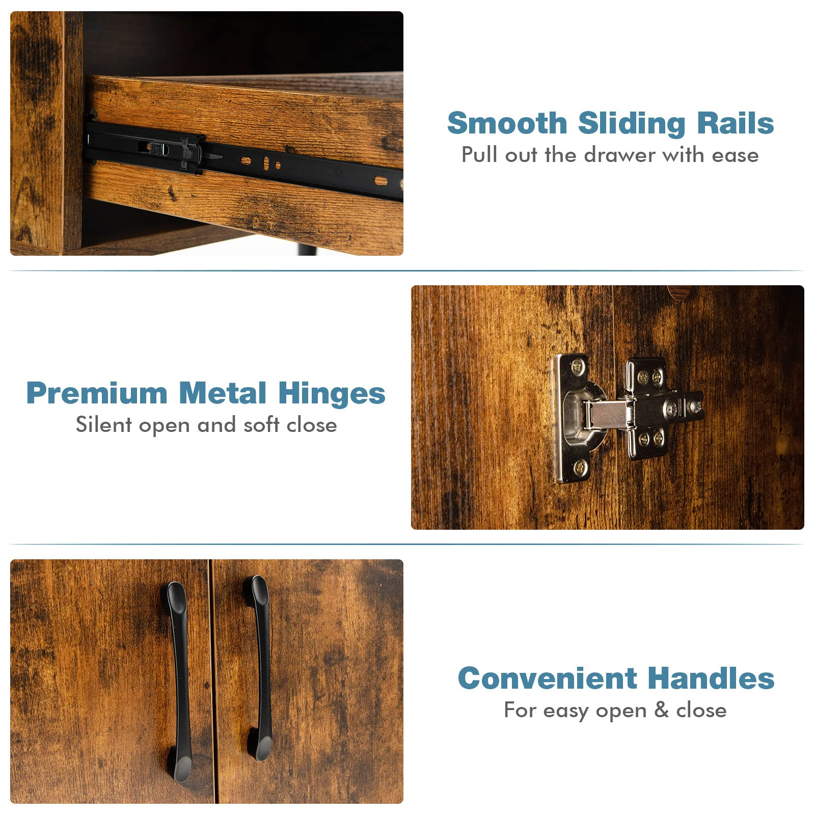 - User-friendly Details: Fitted with convenient handles and metal hinges, it's soft and quiet to open and close the accent cabinet. Besides, the smooth sliding rails allow you to pull out the drawer with ease. And the fully-enclosed storage space not only protects your privacy, but also saves your efforts on daily cleaning.