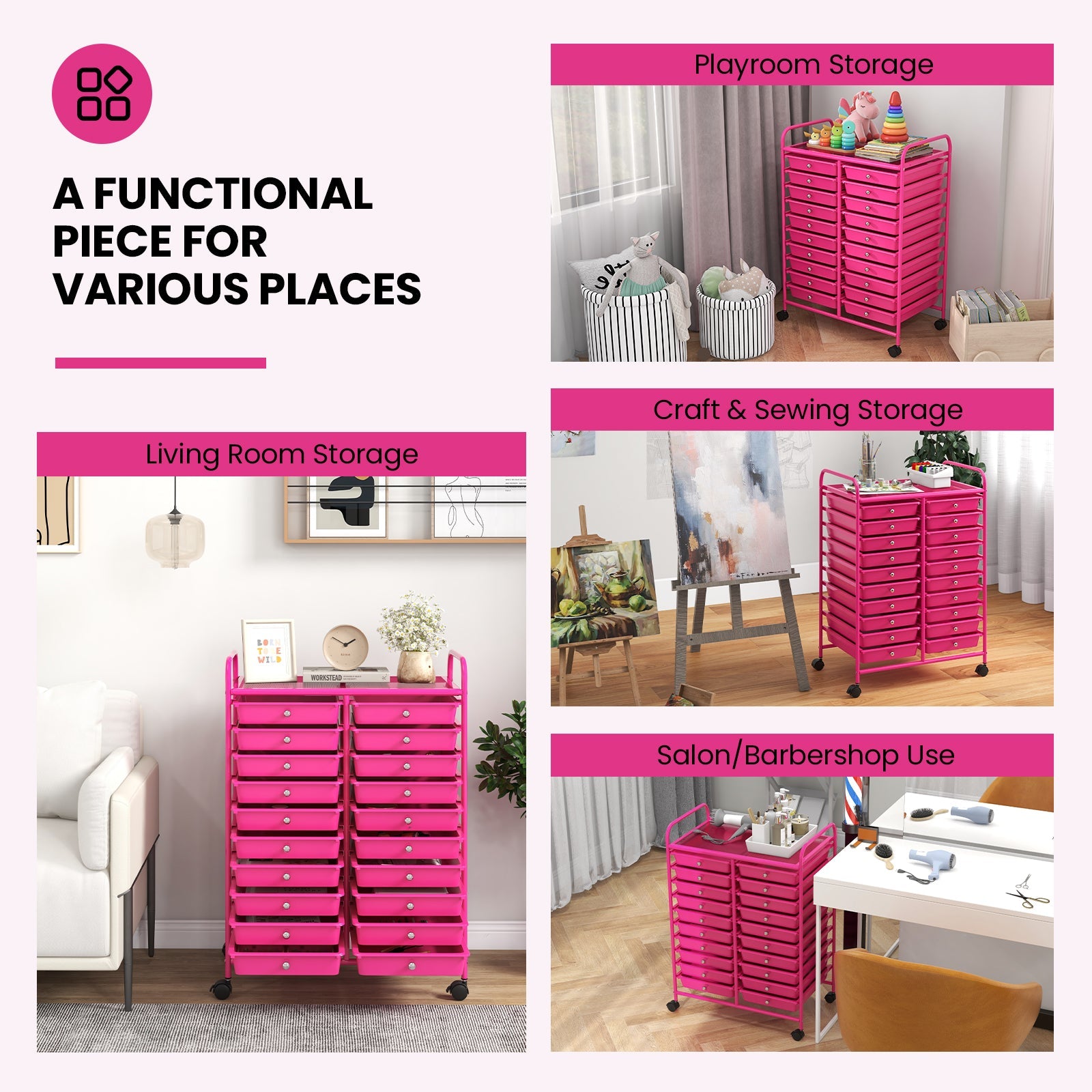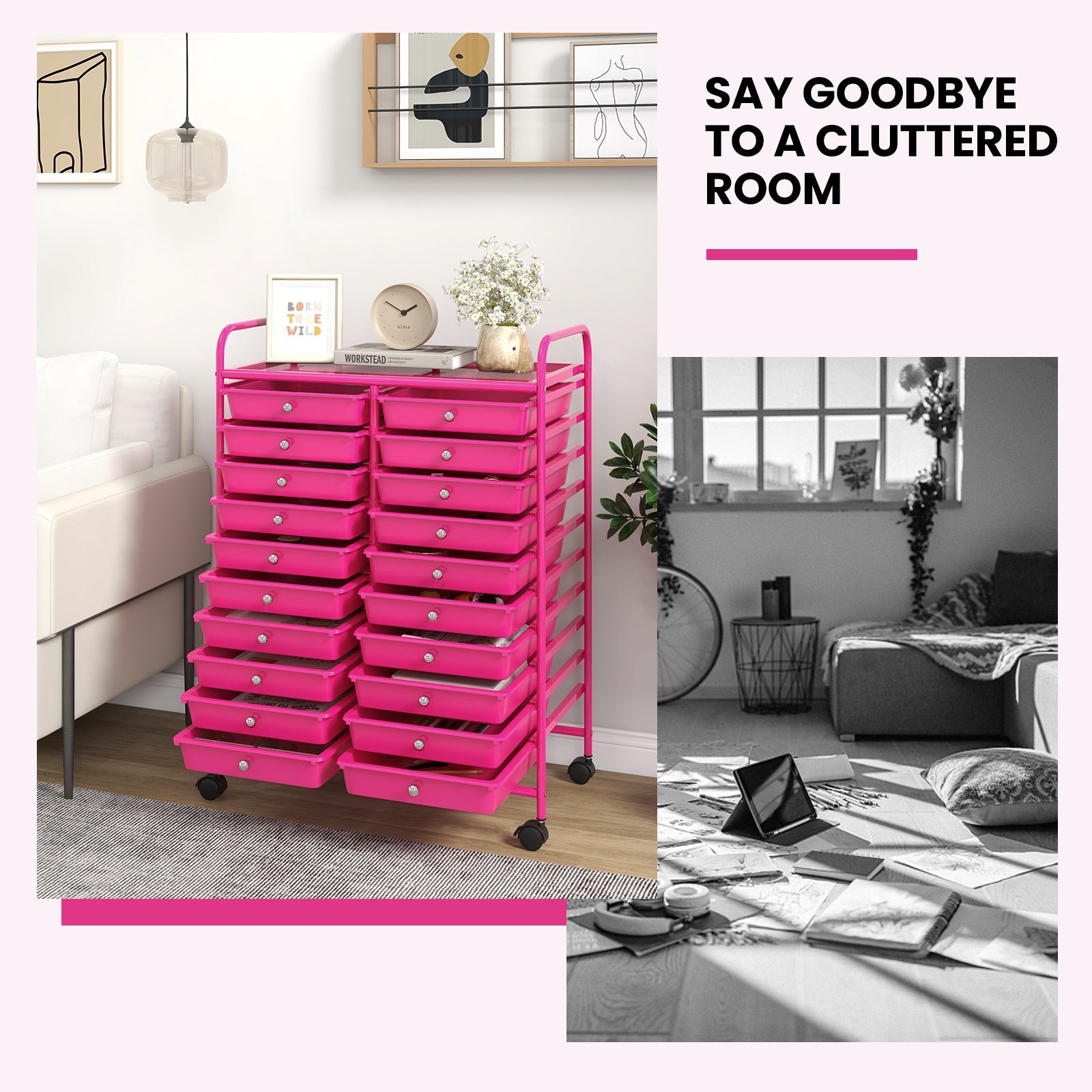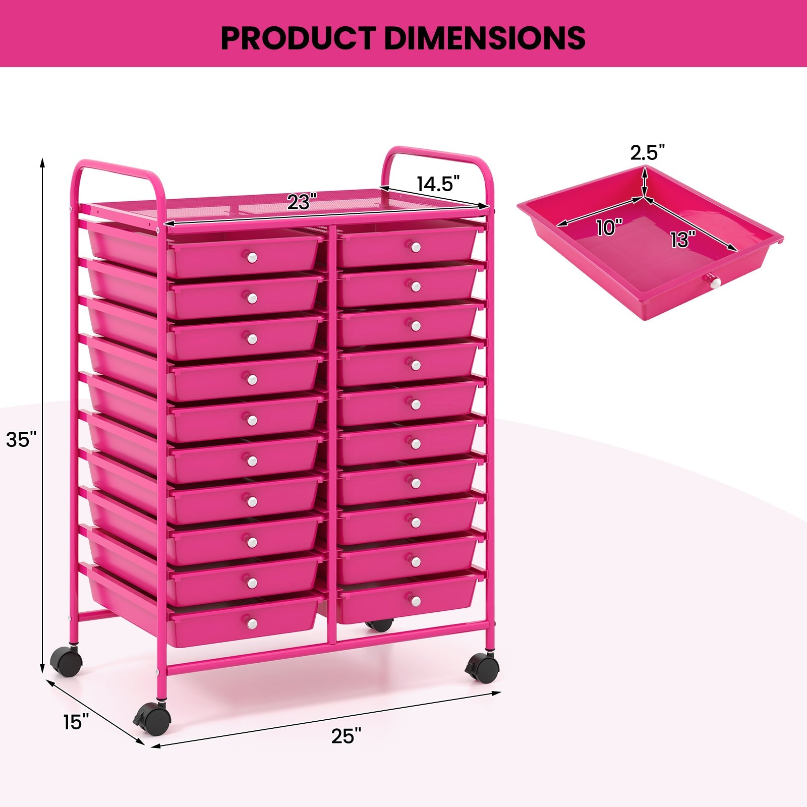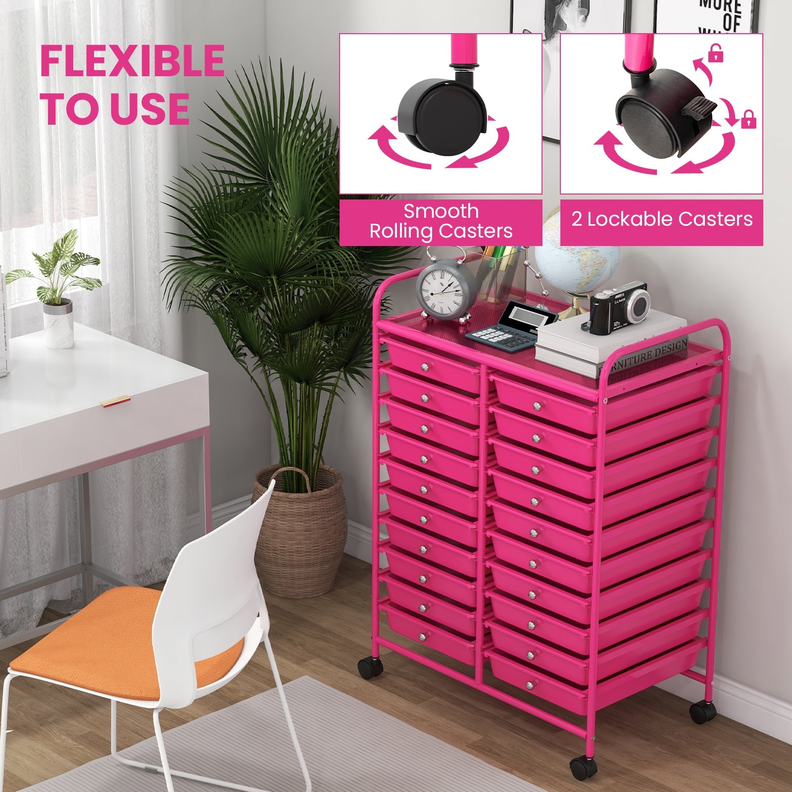 - 20 Drawers for Storing & Organizing: Equipped with 20 drawers, our cart will provide plenty of space for keeping your home office supplies tidy and close, organizing makeup and cosmetics, storing arts and crafts supplies, and arranging tools for use in the garage. It is easy to find something after you keep them in order.