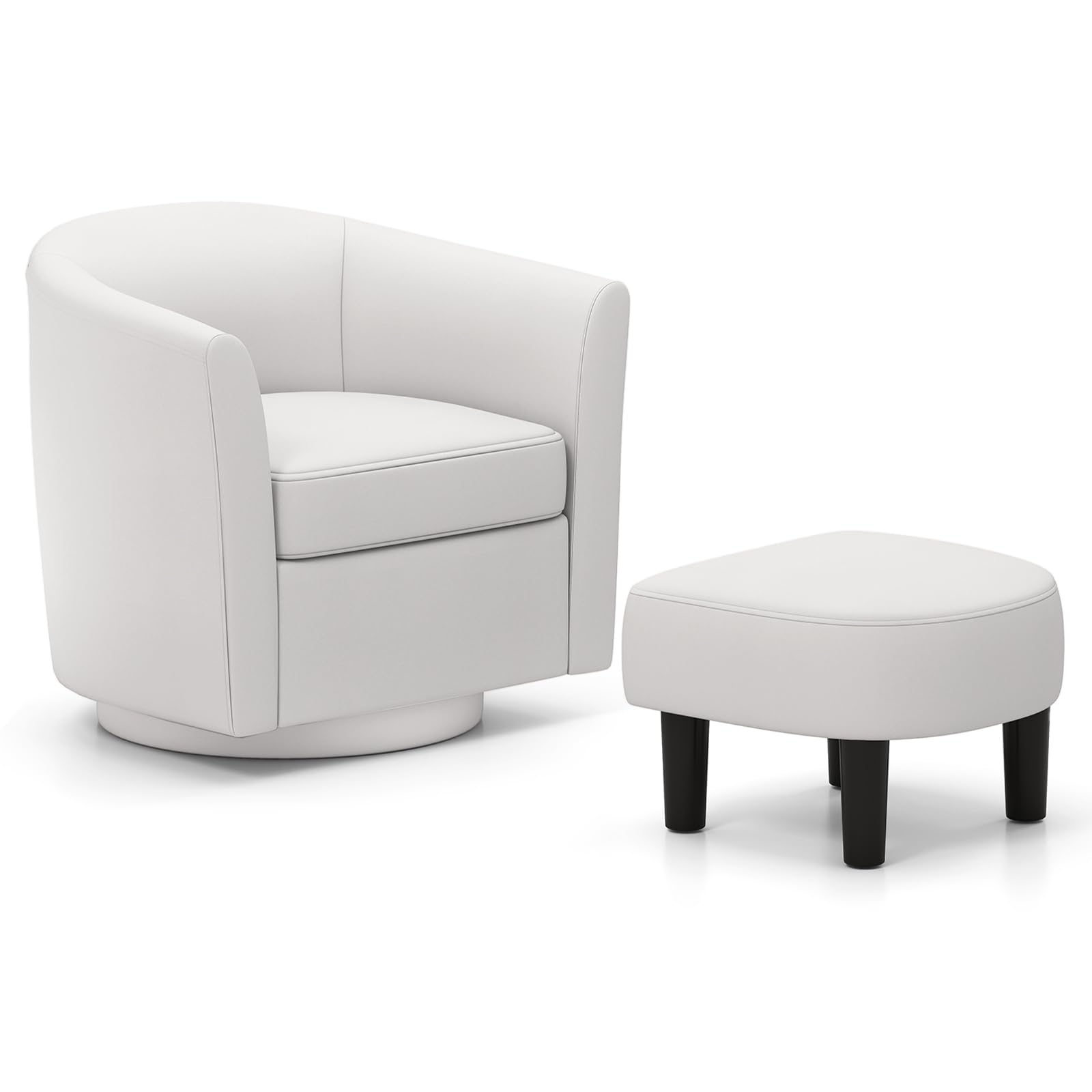 With wide base and solid legs, the chair and ottoman are strong enough to support up to 350 lbs. Breathable linen fabric upholstery and soft sponge filling allow for ultimate comfort. The swivel chair features a curved backrest and armrests for?more comfort. Additionally, the included ottoman is suitable for changing shoes, resting, or storage. Whether placed in the living room or bedroom, our barrel chair with ottoman?set provides you with a stylish and versatile seating solution.