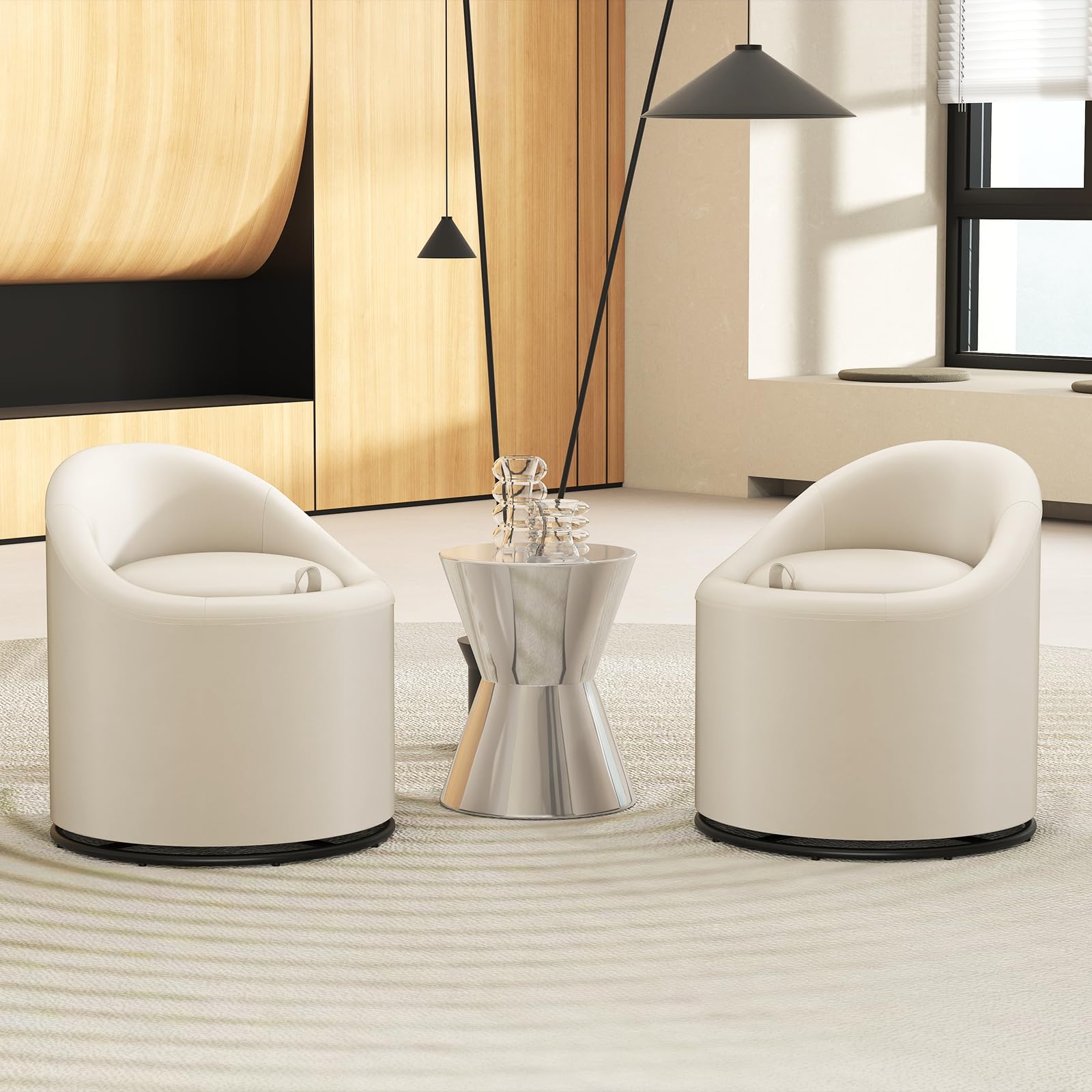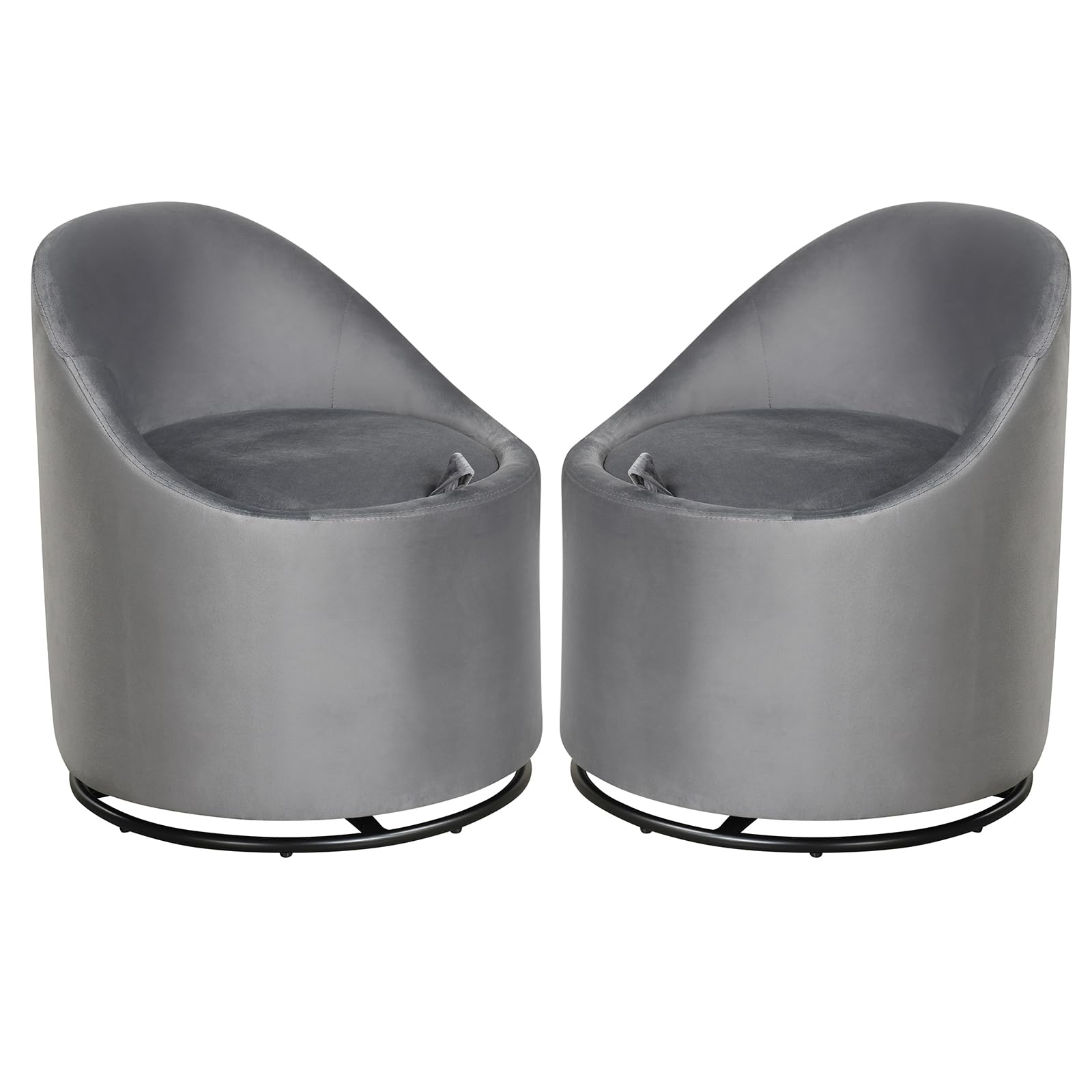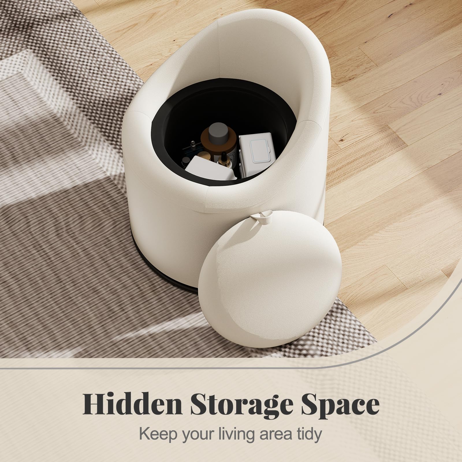 This small barrel chair is completed with a hidden storage compartment under the seat for easy organization. Covered in plush velvet fabric, this swivel vanity chair offers a luxurious feel with a curved backrest and cushioned seat ensuring optimal comfort. The 360° swivel base provides ultimate flexibility. Versatile and compact, this padded ottoman fits seamlessly in the entryway, living room, bedroom, or reading nook.