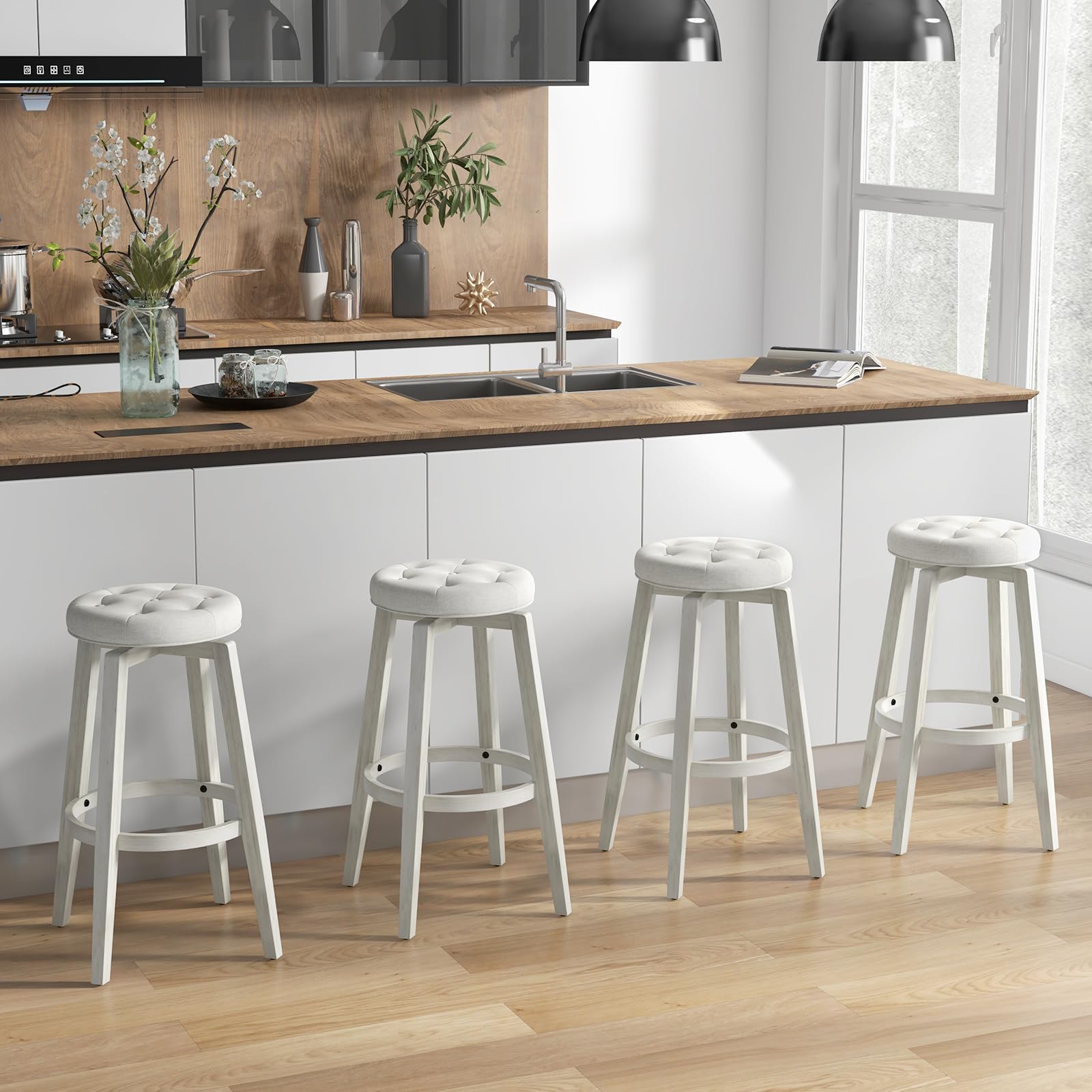 • [Rubber Wood Construction]: Accentuate your home with not just style but also unparalleled durability. The backless stools are built with a robust rubber wood frame, renowned for its strength and longevity, ensuring your investment stand the test of time.
