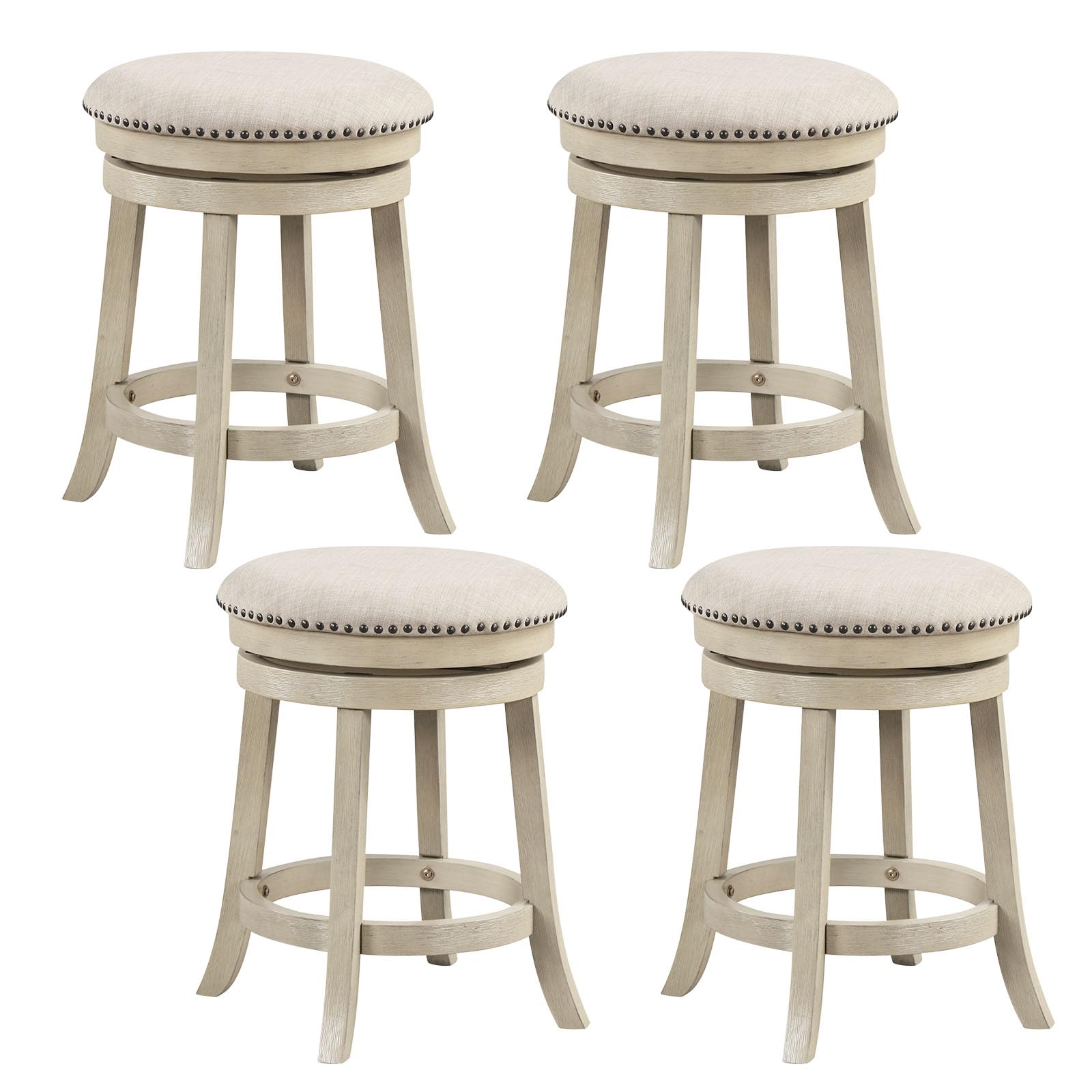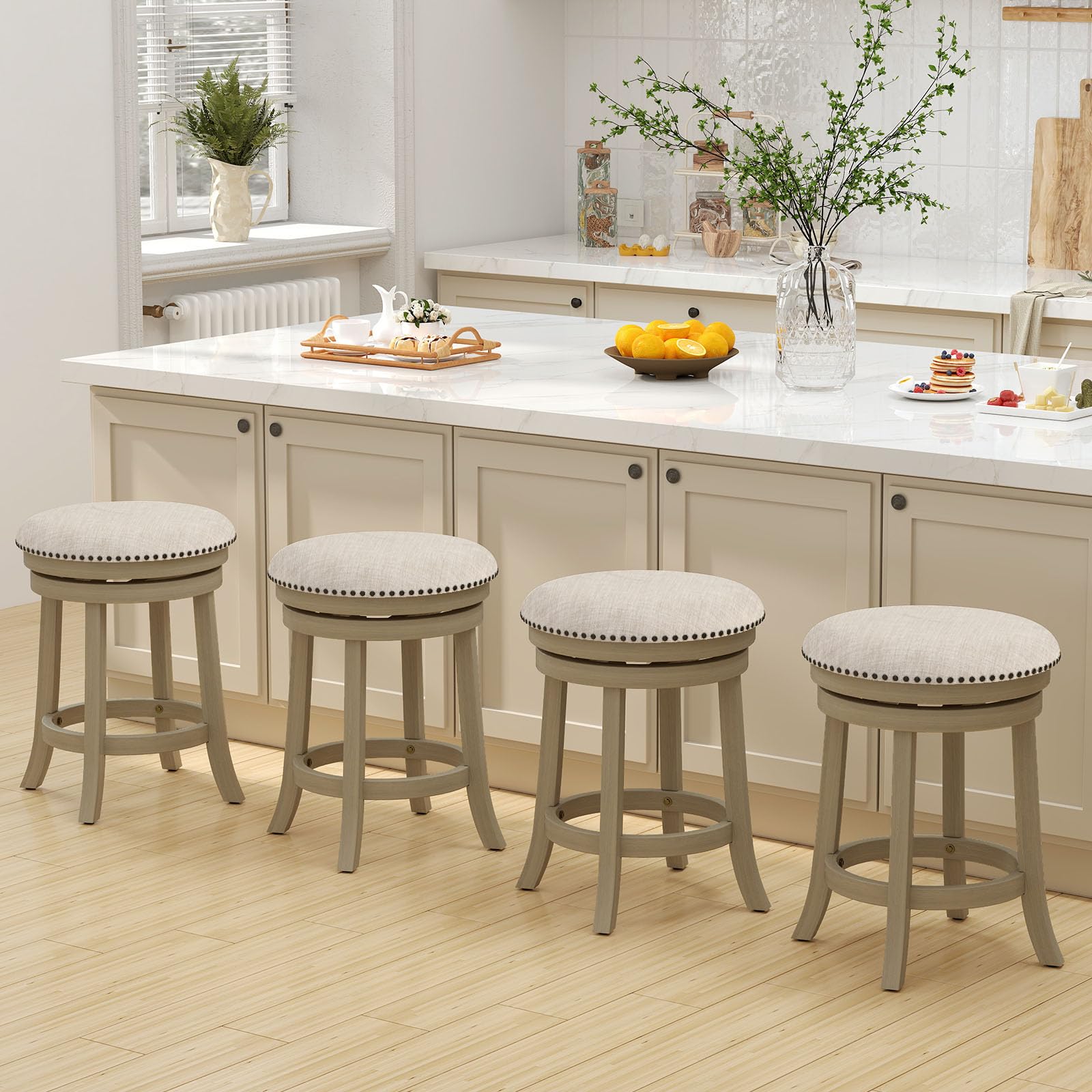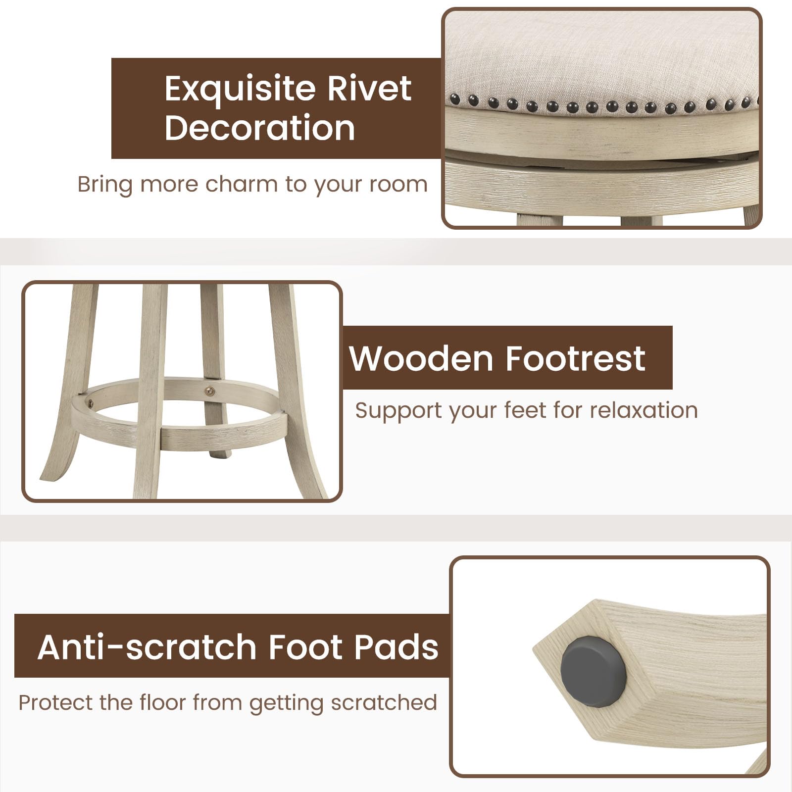 The swivel seat enables you to turn around without getting up. The seat cushion is covered with enduring linen fabric and filled with elastic sponge, providing a comfortable seating experience during meals, conversations, or work. Also, you can place your legs on the round footrest to better relax. The solid wood legs with foot pads keep the bar stools steady and stable on the ground. Whether placed in your kitchen, dining room, or bar area, these bar stools blend perfectly into various decorations.