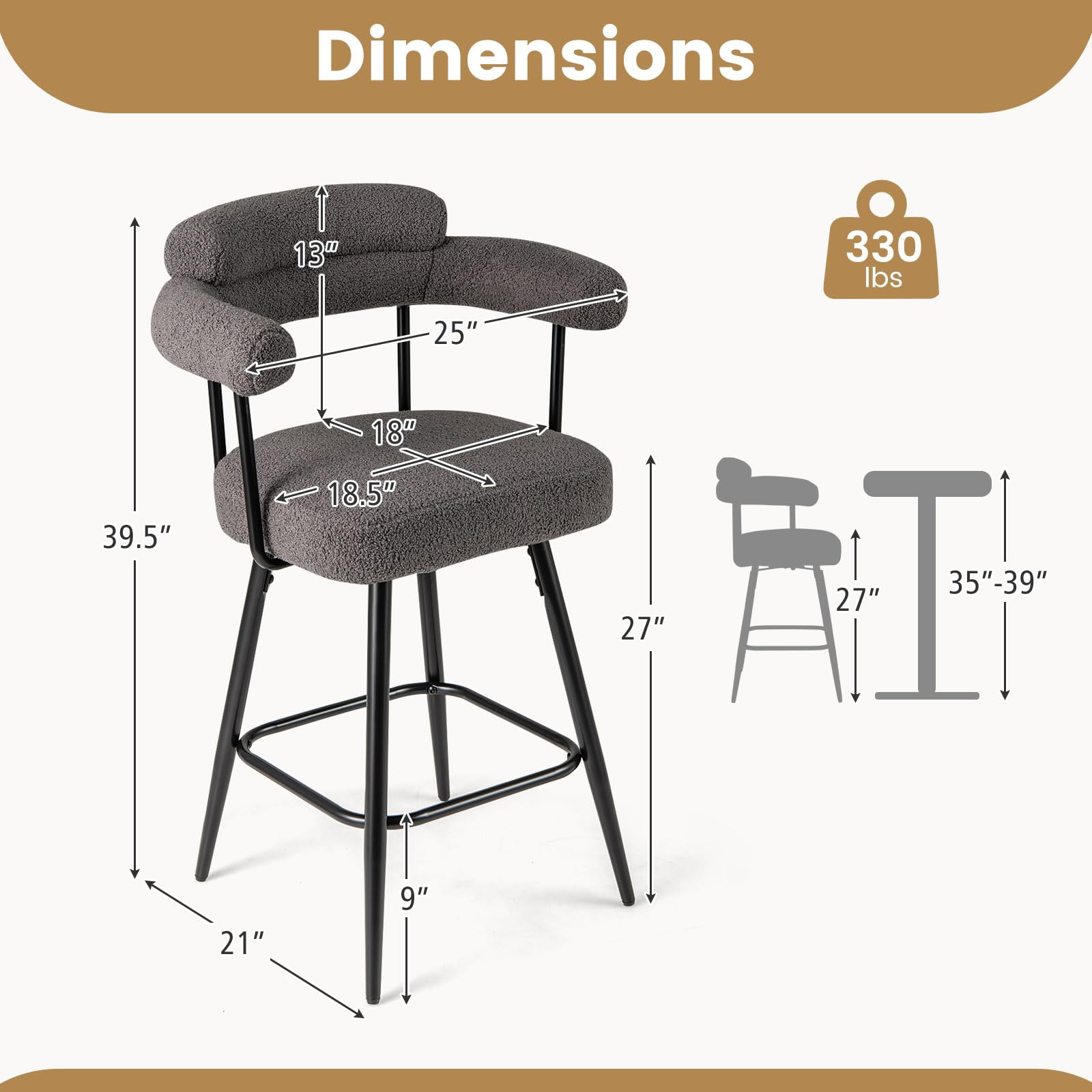 Compatible Counter Height: 35"-39"